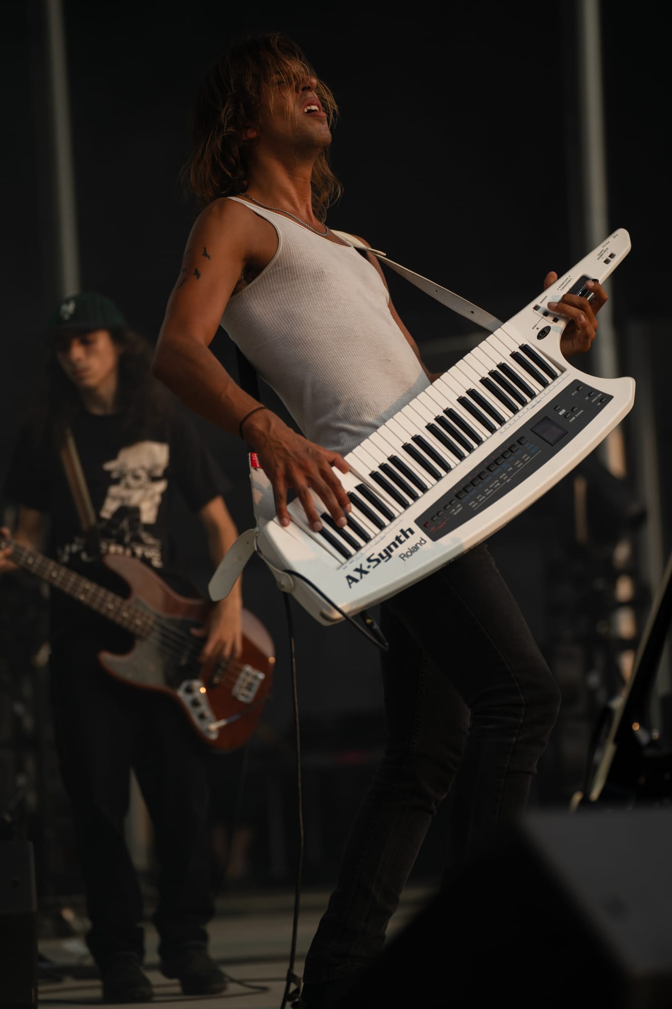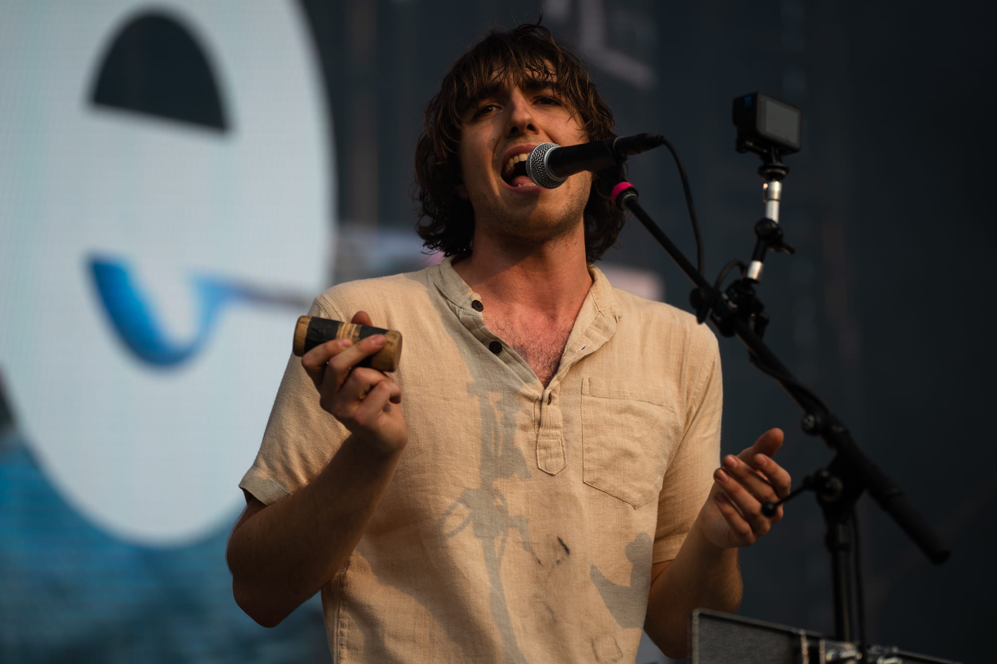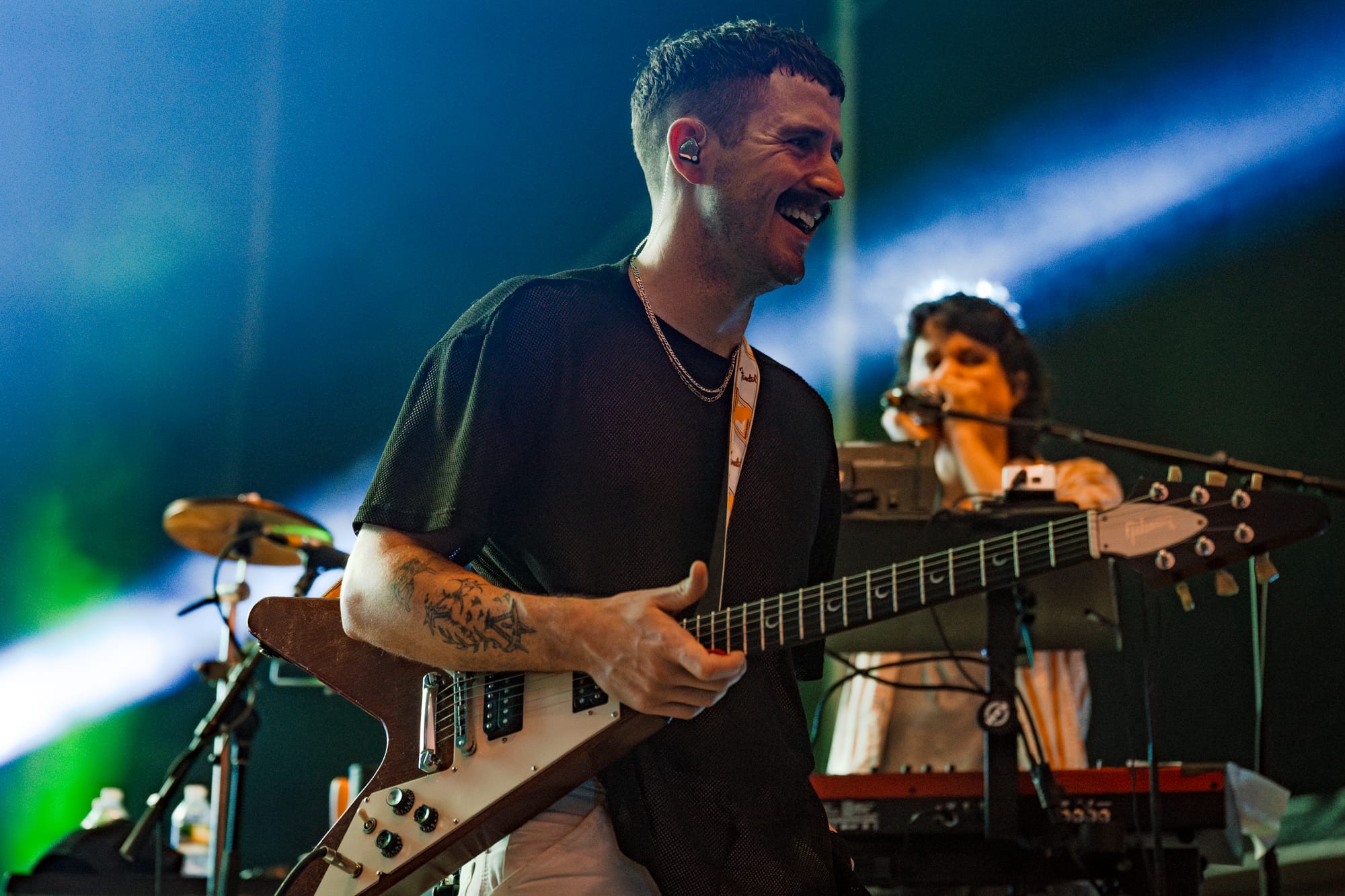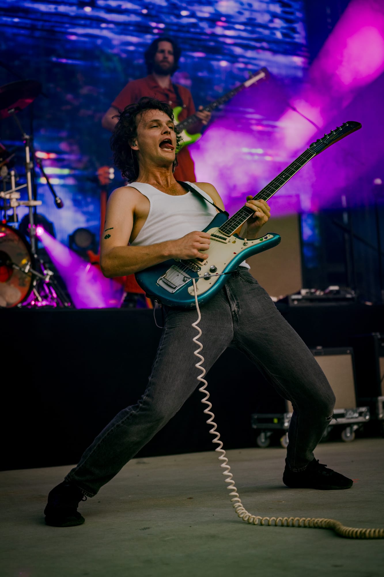 As guitar riffs turned to cheers, Ambrose came over the mic to dedicate their next song to his good mate, Alex Harvey, whom the world recently lost. What followed were calls across the bowl as Amby began Straws in the Wind. Standing atop the speakers, he shared the mic with the crowd before turning it back on himself. Returning to the stage with lulling repetitions of guitar lines, drum loops, and chanting, Ambrose circled lyrics from beneath his table of keys and harmonicas. Anticipation swelled through the crowd, building and building before pouring itself back into the song’s latter half. Afterward, Ambrose would thank the crowd and residents of the city, which Stu echoed, followed by, “Residents of Forest Hills, I’m very sorry,” the same residents who just last year launched a lawsuit against the stadium for its “unbearably loud” noise.