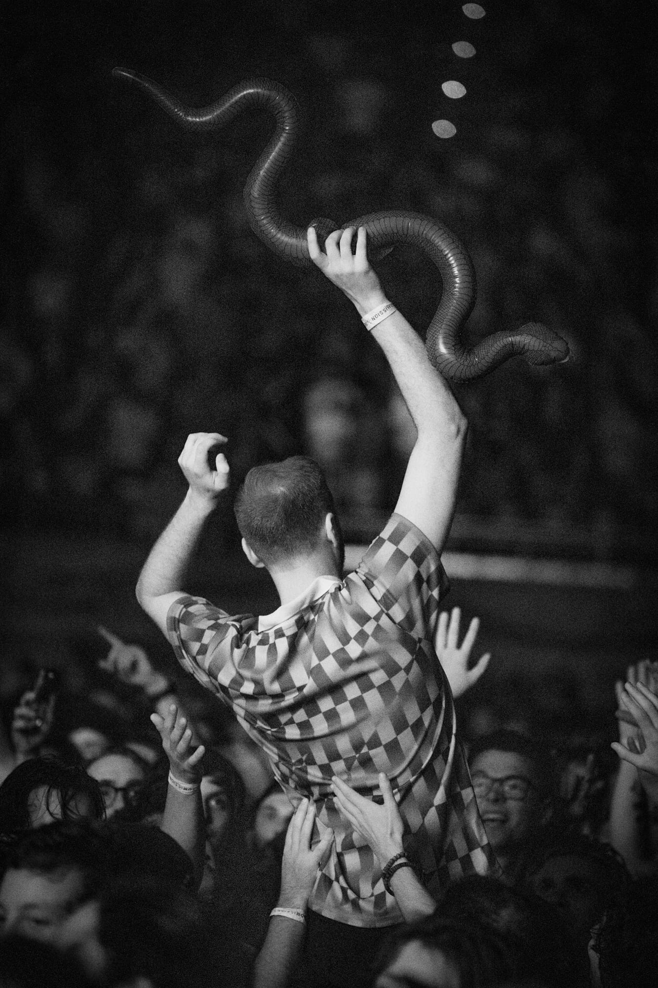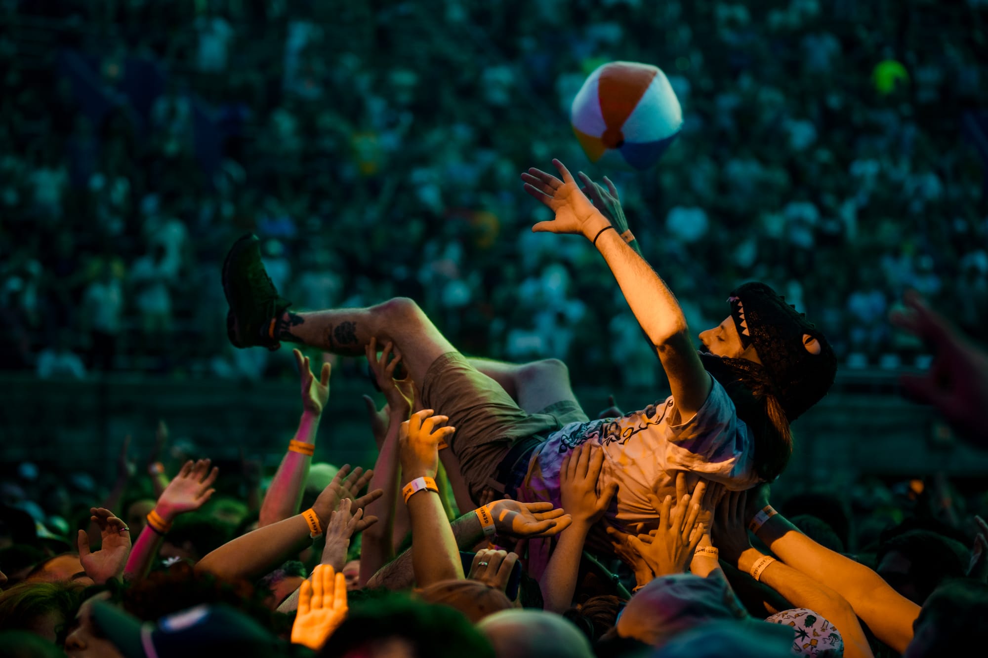The last two songs of the night felt like a victory lap. "Rattlesnake" is a fan favorite track that repeats the song’s title endlessly as their sound swirls around you, constricting their hold on you. Bravest of the swarm will risk life and limb on the floor of the venue to do the “rattlesnake,” a similar dance to the worm. Above them slither crowd surfers creeping toward the band, all passing around an inflatable snake from surfer to surfer. K.G.L.W. would close the night with a chanting of the band’s acronym, branding the crowd with their signature lodged between their ears to rattle around their heads the whole way home.