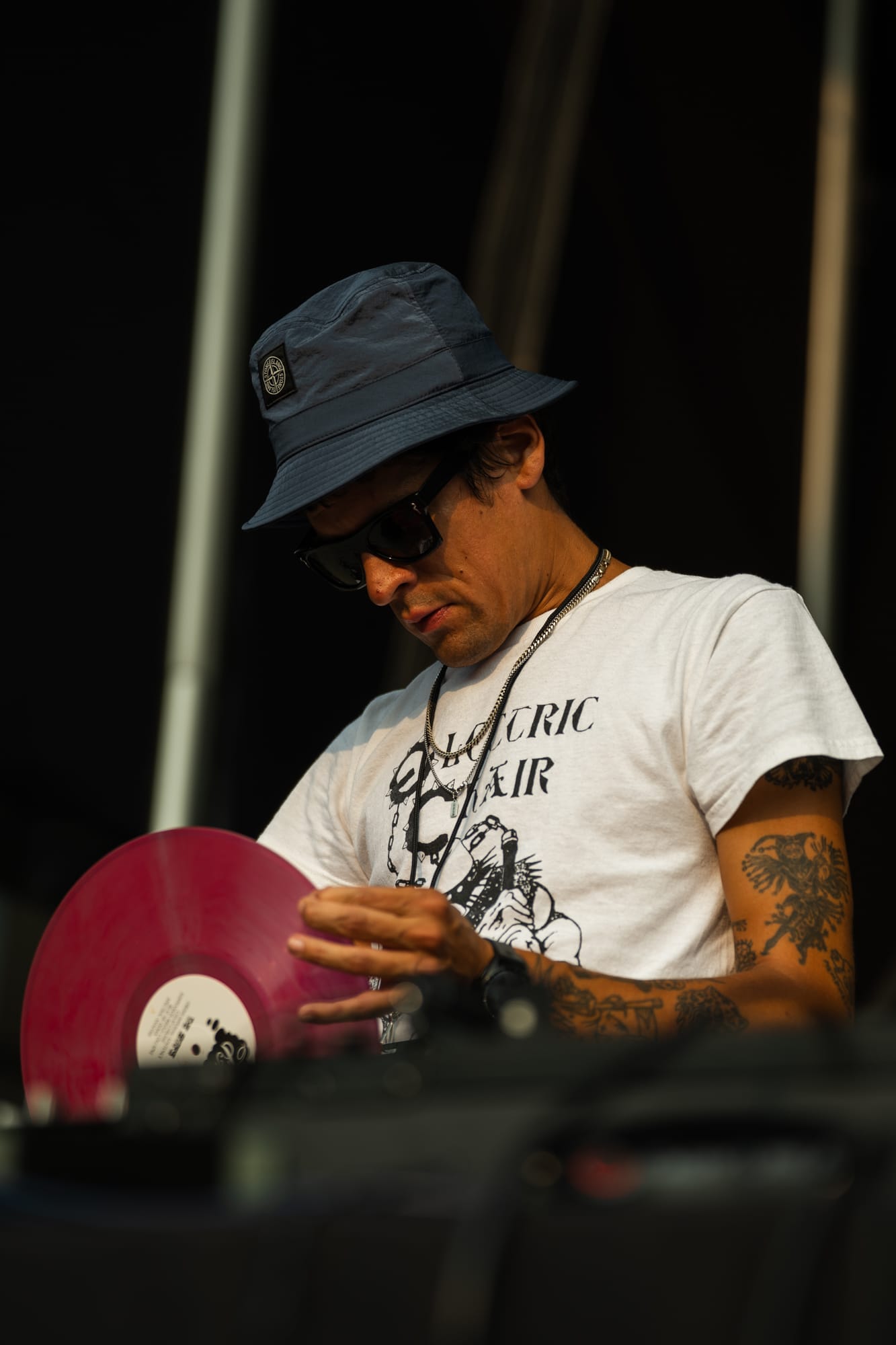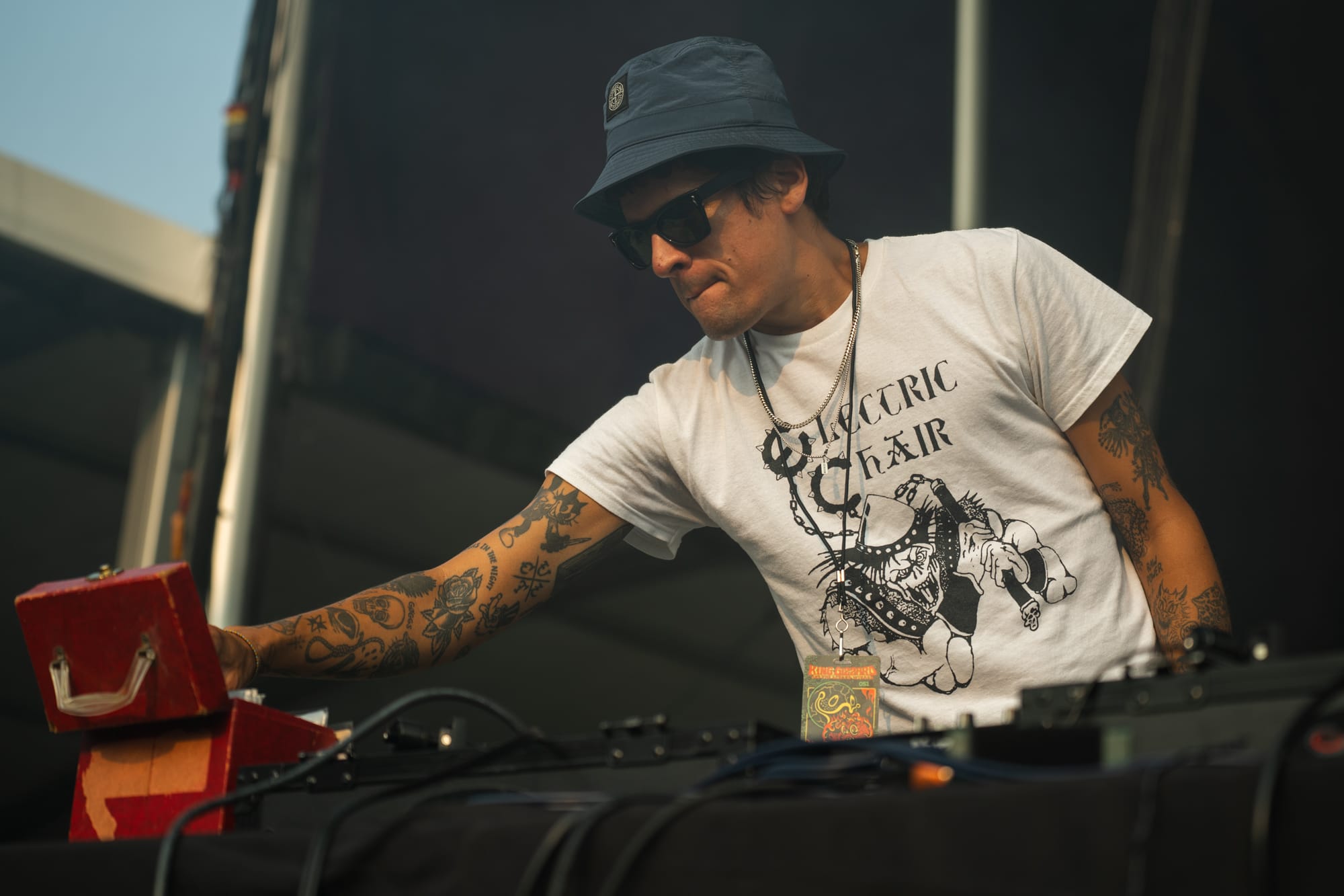 When I did make my way over to the stadium, the crowd was already grooving to DJ Crenshaw, a cool cat who quietly sifted through his box of vinyl, providing music for fans exploring the venue and waiting in those far-stretching poster lines. Posters are a huge thing for Gizz, limited edition prints of posters designed for each stop of the tour, usually by the band’s artist Jason Galea. His work is phenomenal and graces most of the band’s album covers. Crenshaw would play before both the opener and the headliner of the night, providing a great atmosphere as excitement and crowds grew larger.