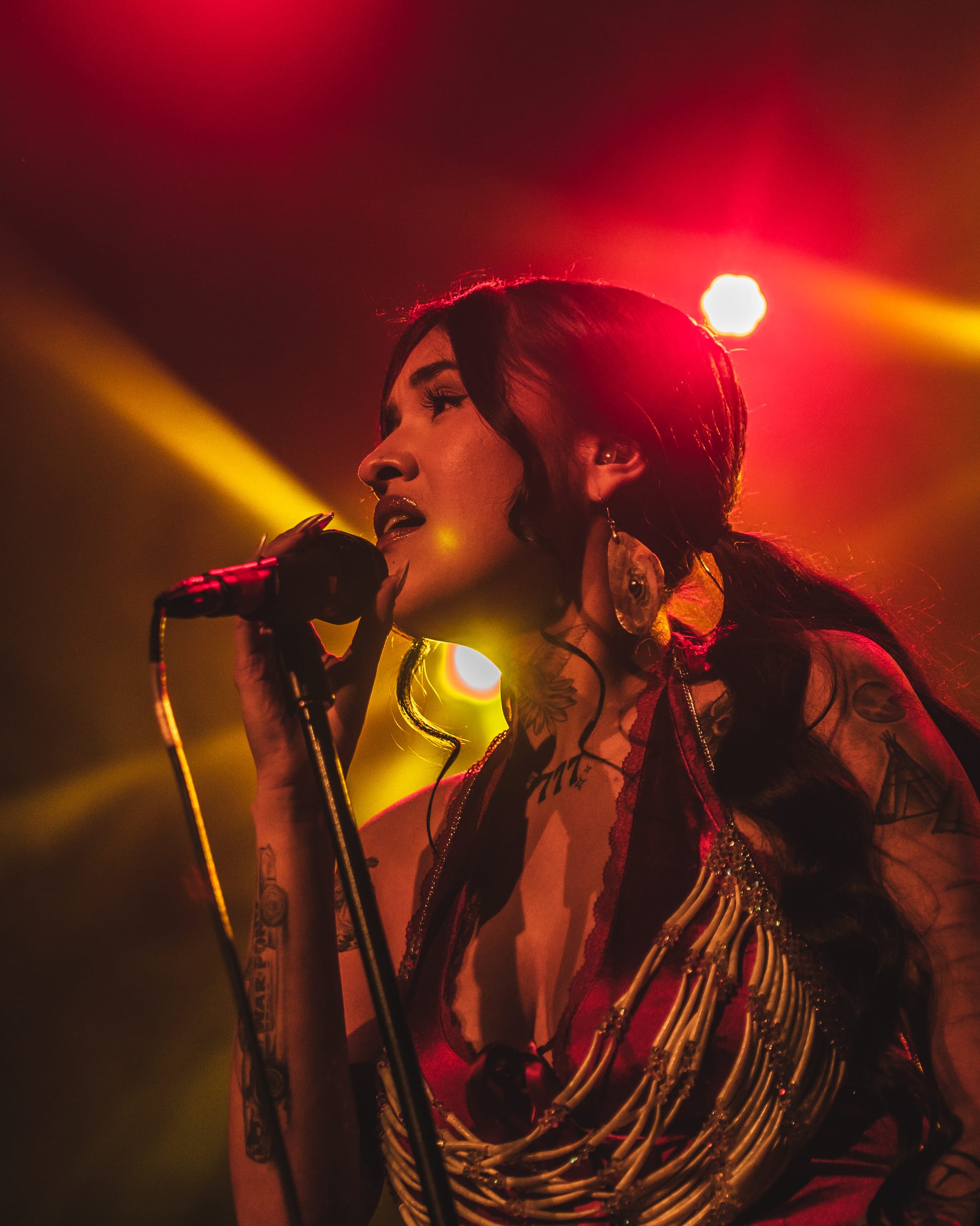 The sub-headliner for the night was Tia Wood, an Indigenous singer from Saddle Lake Cree Nation, Alberta. She brought her culture and heritage to the stage through her songs. She dedicated "Dirt Roads" to the people from her reservation, and it clearly meant a lot to her.