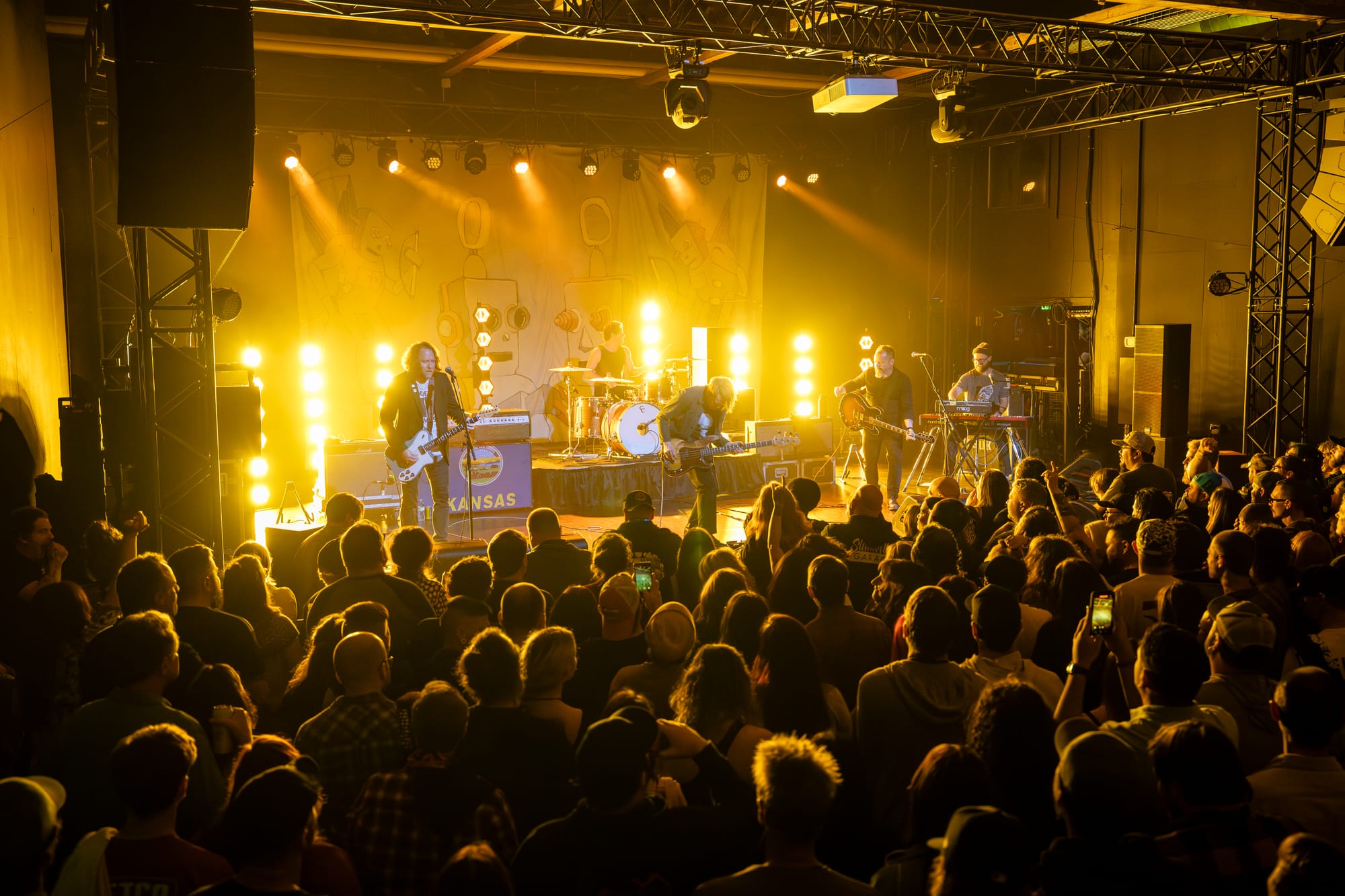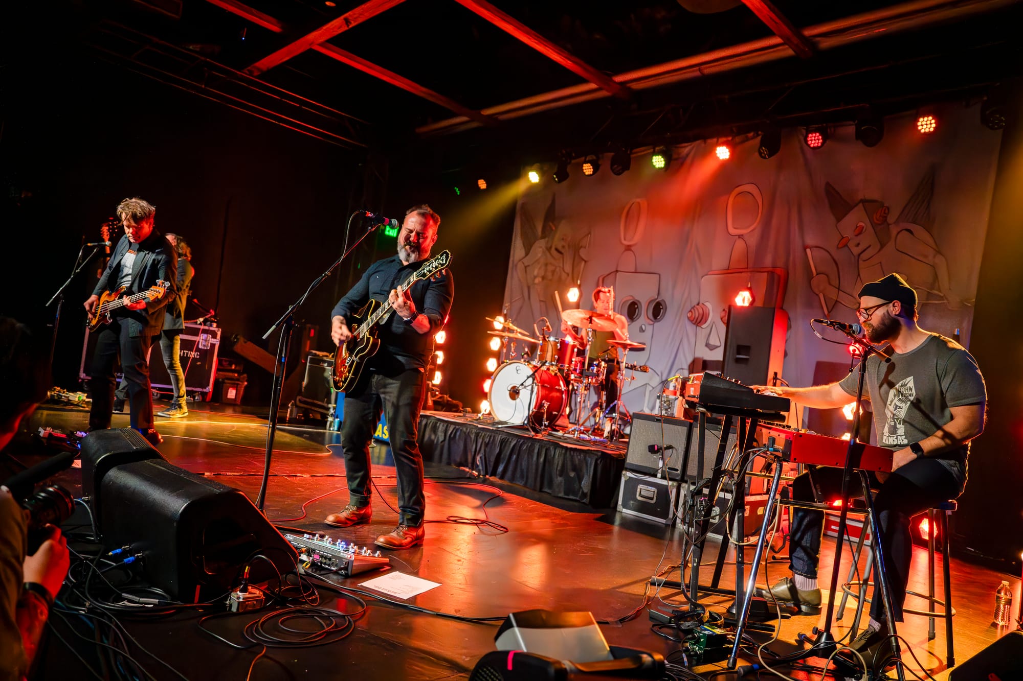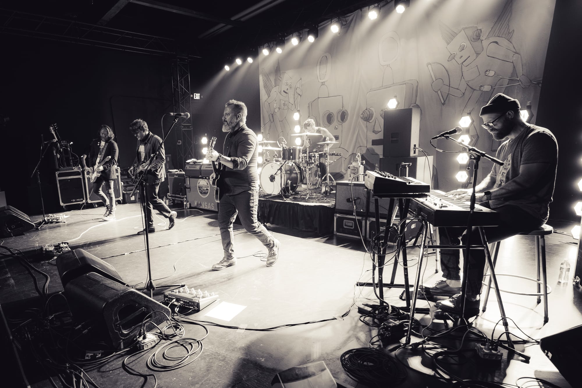 Growing up, if you were into pop punk, emo, mid-western, or otherwise, there were a few quintessential things one had to have: a variety of Dickies pants or shorts, your flavor of skate shoes, and a copy of Something to Write Home About by The Get Up Kids in your Case Logic. The album was a must-have, and once you hear it, you understand. It’s wall-to-wall bangers that pushed a genre forward and has influenced some of music's biggest bands, including but not limited to Fallout Boy, Blink 182, and even Coheed and Cambria. Hailing from Kansas City, The Get Up Kids, led midwestern emo’s “second wave” and solidified a sound and lyrical styling still found today. I think the lyrics still hit hard, even after I’ve swapped my teen angst out with adult anxiety. I jumped at the chance to cover the 25 Years of Something To Write Home About tour, if only to gain the nostalgia of belting out the lyrics to “Ten Minutes” in my friend’s ‘98 Ford Taurus. The Get Up Kids drew a sold-out crowd that packed the Music Farm and came down like a swarm of locusts at the bar and merch tables, while two giant recognizable robots peered out over the stage. I was ready, and the audience was ready, eagerly anticipating the coming show.