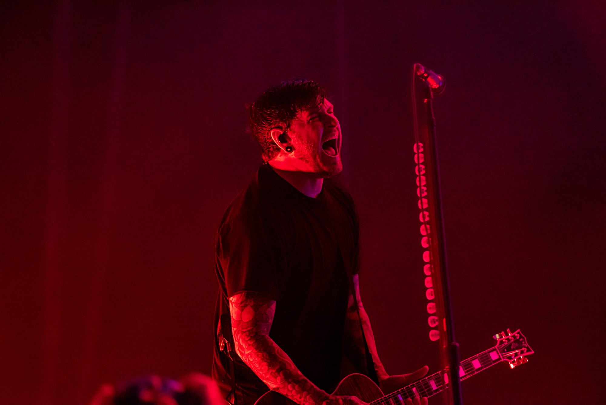 Next "on the fire" was August Burns Red (see what I did there?), who completely owned the stage with their trademark blend of technicality and brutal breakdowns. Even I almost got lost in the music myself while photographing them, the Pennsylvania metalcore veterans showcased their ability to combine heavy, intricate guitar work with melodic sections, making songs like "Ghosts" and "Whitewashed" sound as tight live as they do on record (no really, they sound that good live), including an early appearance from A Day to Remember’s lead vocalist Jeremy Mckinnon for his featured part in "Ghosts." The crowd (myself included) responded with heavy moshing and deafening cheers. The raw intensity of their performance was a perfect lead-in for A Day to Remember, as it enraged up the flames of excitement for what was to come. If you haven't seen them live before, I highly suggest it.