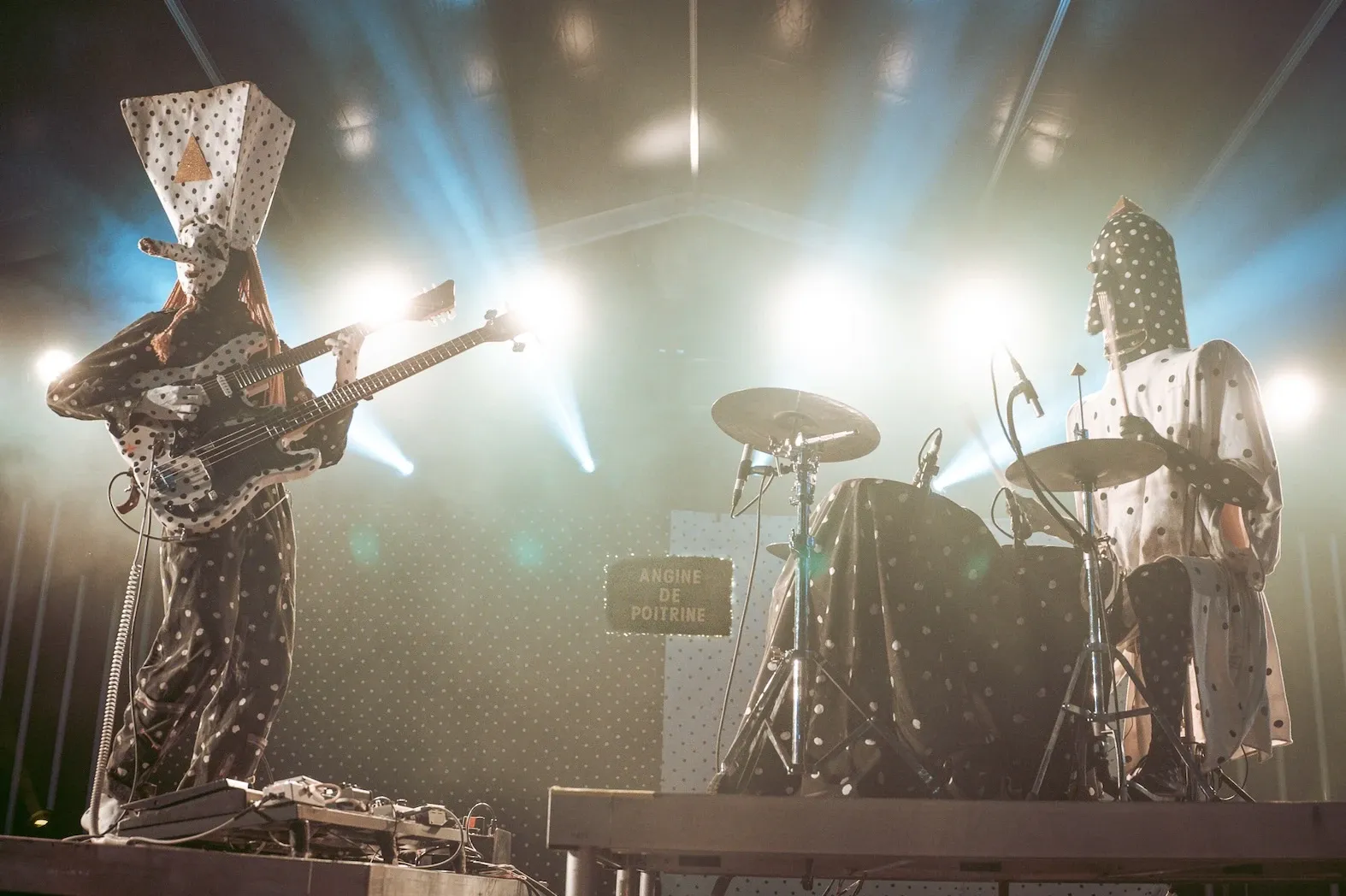Behind the facade of the asymmetrical polka-dotted costumes, painted skin, and papier-mâché masks lie two extremely talented musicians hailing from Saguenay, Quebec, who remain unnamed beyond their alien personas. Originally a joke to conceal their identity from other music projects they were working on, the duo never expected to garner such a following for the forms they now inhabit. They’ve found support from international fans of all ages, their music spilling over the border and through the seas for three years now, but very recently, they have been gaining immense traction here in the States as their live performance with renowned music station KEXP has accumulated over a million views in just over ten days.