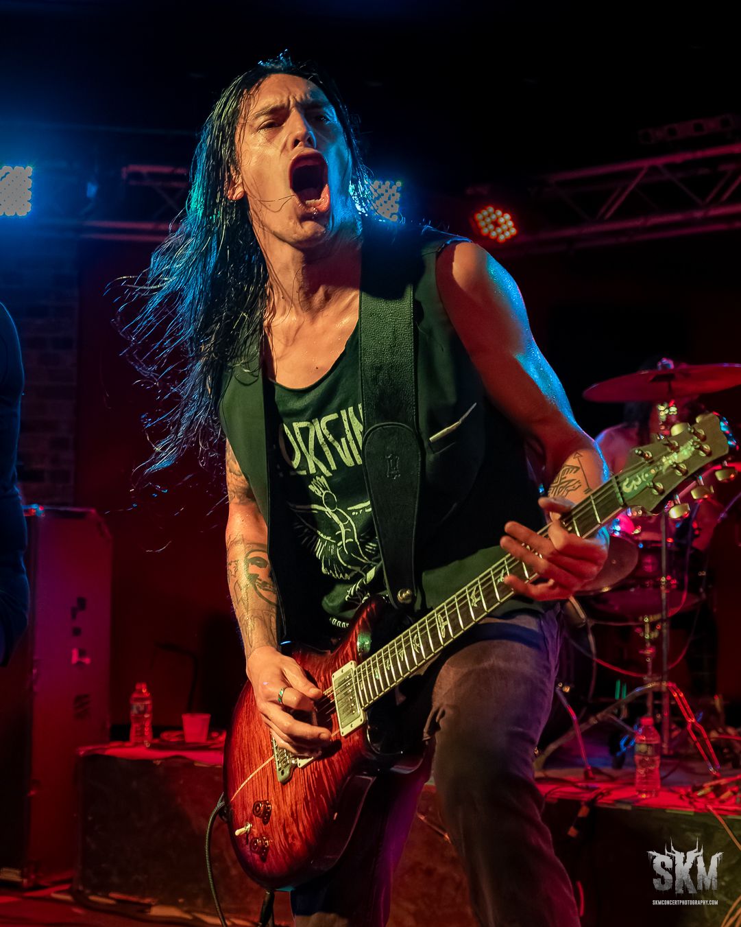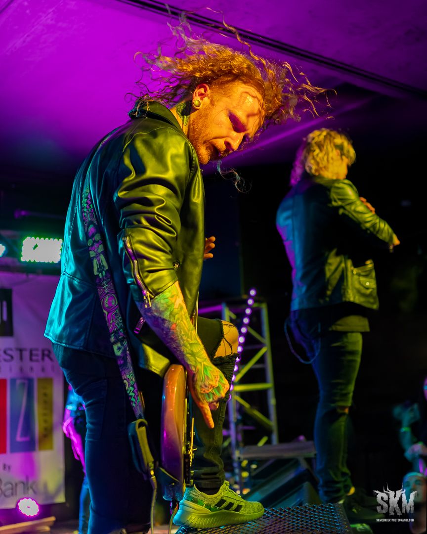 Hitting the stage next was Shallow Side from Cullman, Alabama. Their new song “You’re the Reason” recently charted at #40 on Billboard's Mainstream Rock charts. Starting their set with the popular song “Sound the Alarm” the band played with high energy throughout the night. They played a really cool cover of the song “Renegade” originally played by Styx. Singer Eric Boatright toyed with the crowd throughout the show and was on point with his sound. Cody Red (guitar), Sam Bower (bass), and Heath Fields (drums) were clearly having fun on stage. With boundless energy, hair flips and gritty vocals they were fun to watch.