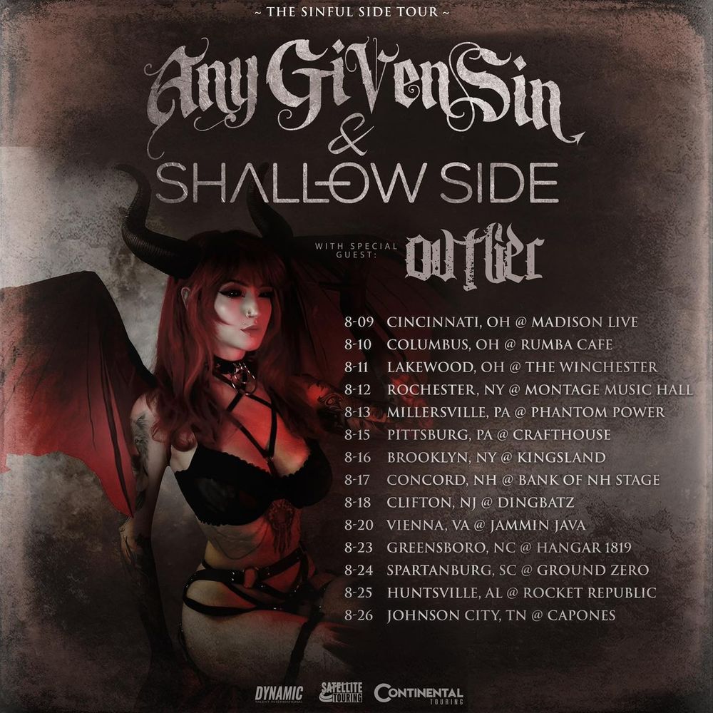 On a Saturday night , Any Given Sin, Shallow Side and Ovtlier brought the “Sinful Side” tour to the Montage Music Hall. The “Montage” is a smaller sized venue in the heart of the city. It is really a treat to see these bands at a venue of this size! This would be stop number four of a fourteen date tour of the Eastern U.S. Kicking the show off at 6:45 pm were two local bands, Drama Scream and A Greater Danger, getting the audience pumped up for the headlining acts that were soon to follow.