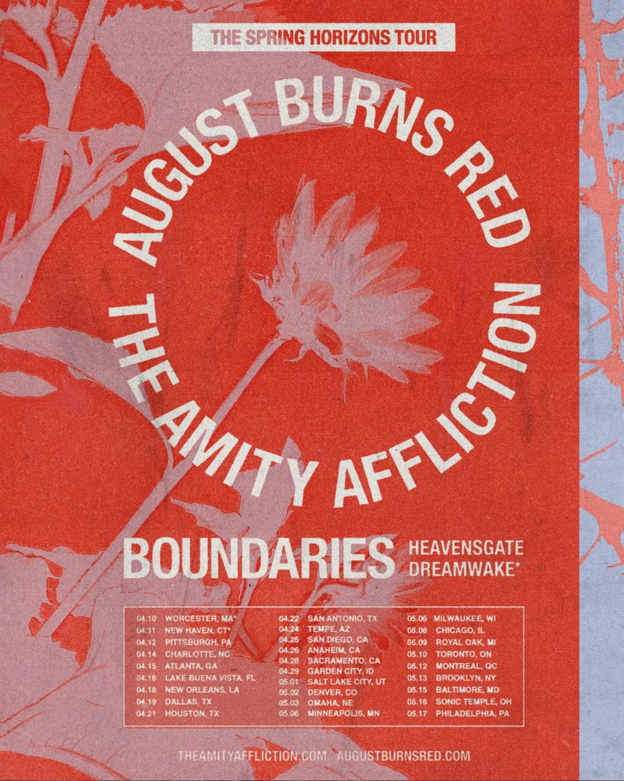Last Sunday was a wild night for metalcore and hardcore fans as August Burns Red brought their Spring Horizons tour to Dallas, TX. With an absolutely stacked lineup made up of co-headliner The Amity Affliction and openers Boundaries and Heaven’s Gate, the fans were in for one of the most high-energy shows that I have attended this year.