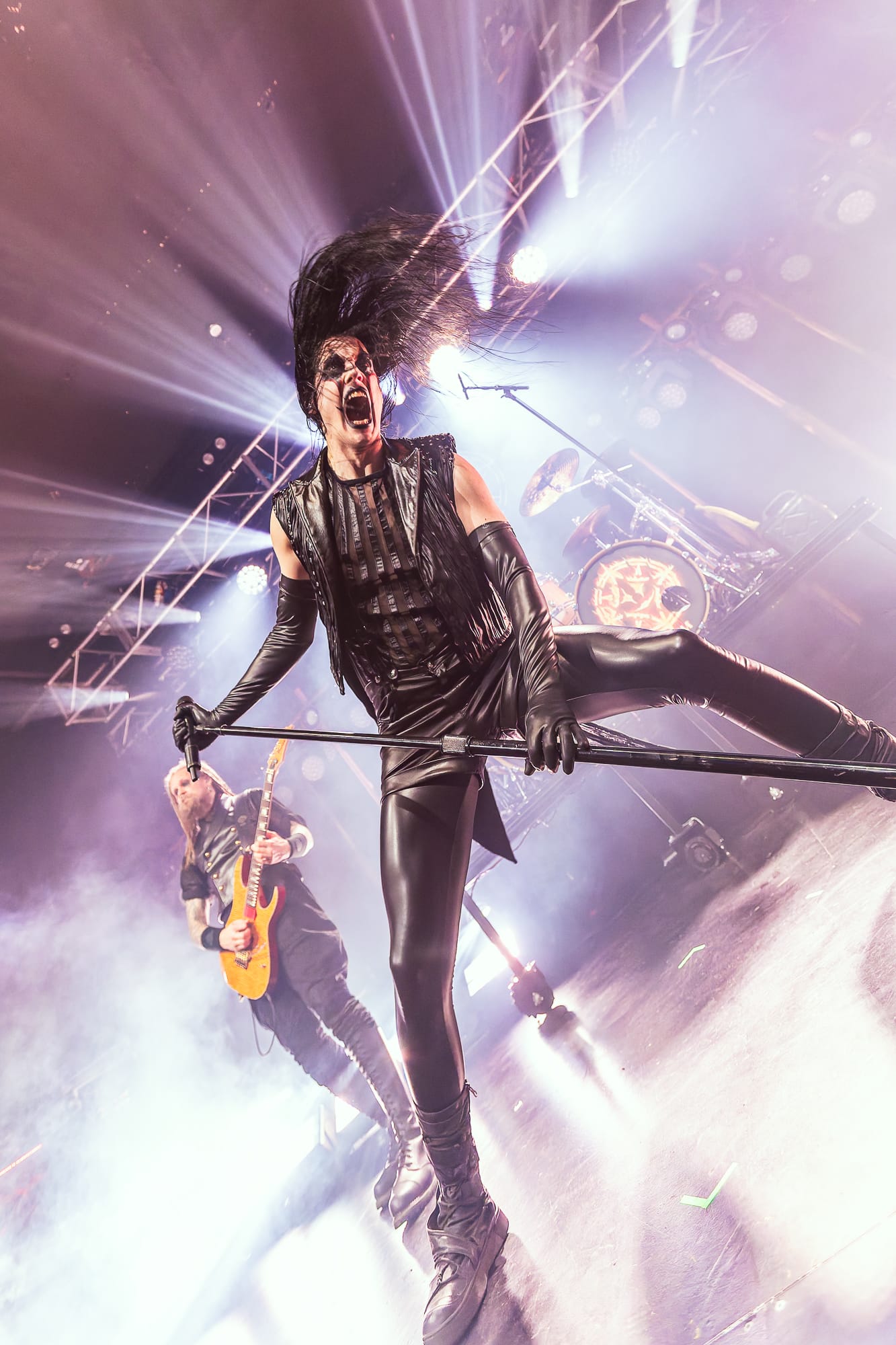 The middle order is a jaunt from new banger to classic hit and back again, "Death and Glitz" (Don't Go in the Forest, 2025) to "Blod" (Black Waltz, 2012) to "The Dirt I'm Buried In" (Dance Devil Dance, 2023). John Alfredsson joins the rest of the band, in full almost mighty ducks flying 'V' formation out front, on a smaller drum kit that he is able to play stood up for "Colossus" (Hunter Gatherer, 2010); before "Torn Apart" (Black Waltz, 2012).