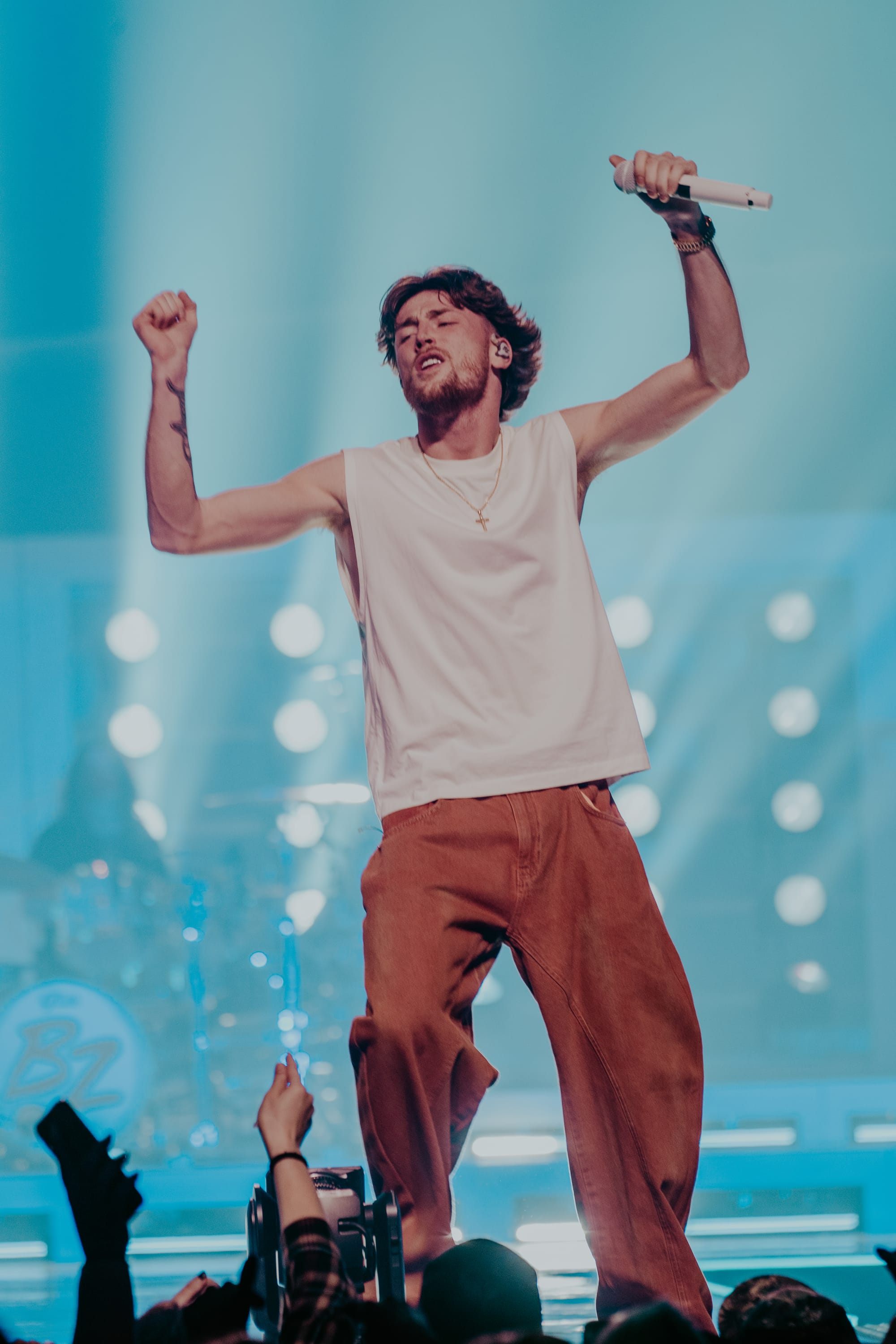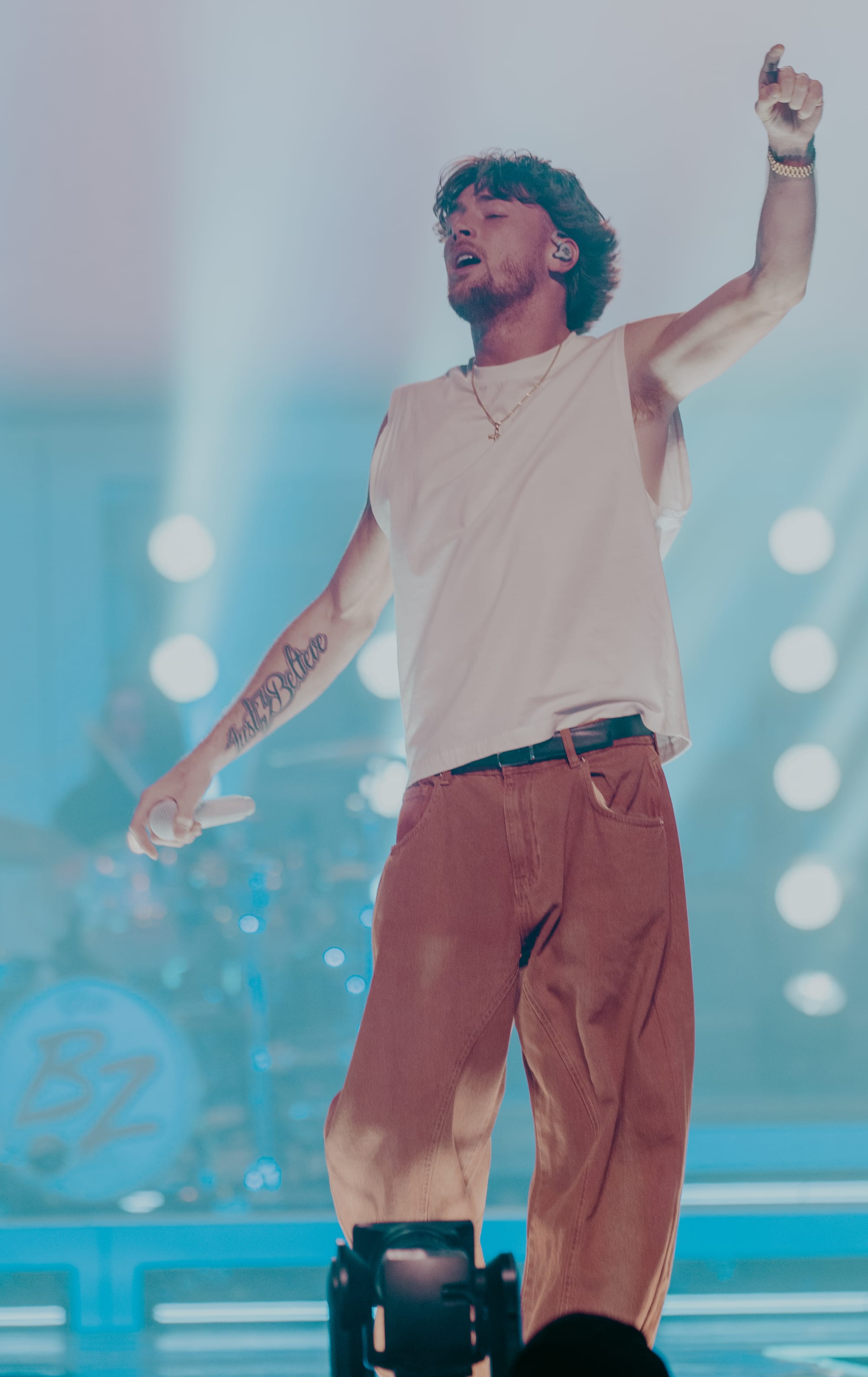 Bailey Zimmerman. Where do I start with this guy? He is probably the most explosive, energy-packed human in the industry. He refuses to sit still. I have been lucky enough to know a few people who are close to him, and all I hear are wonderful things. I mean literally everything is positive. I have been trying to get to see Bailey for about three years. It never worked out. But last night, the stars aligned and here I was. Bailey went from TikTok underdog story to bringing on the stadiums. That is his next step. I am completely convinced. Bailey has been in the game for 5 years and is already playing sold-out arenas. That is impressive. Bailey is from Plymouth, Wisconsin, a small town that’s about as Midwest as it gets. Far from the neon lights of Nashville. He grew up playing music in his bedroom and posting covers online. It was simple. Acoustic guitar, rough vocals, very raw, but you could tell the emotion was real and he was authentic. Like Blake, Bailey has his own raspy voice that just has him coming off as pure, raw, and authentic. He didn’t come from a big music family or have fancy Nashville connections. He was all hustle, grind, and social media buzz.
