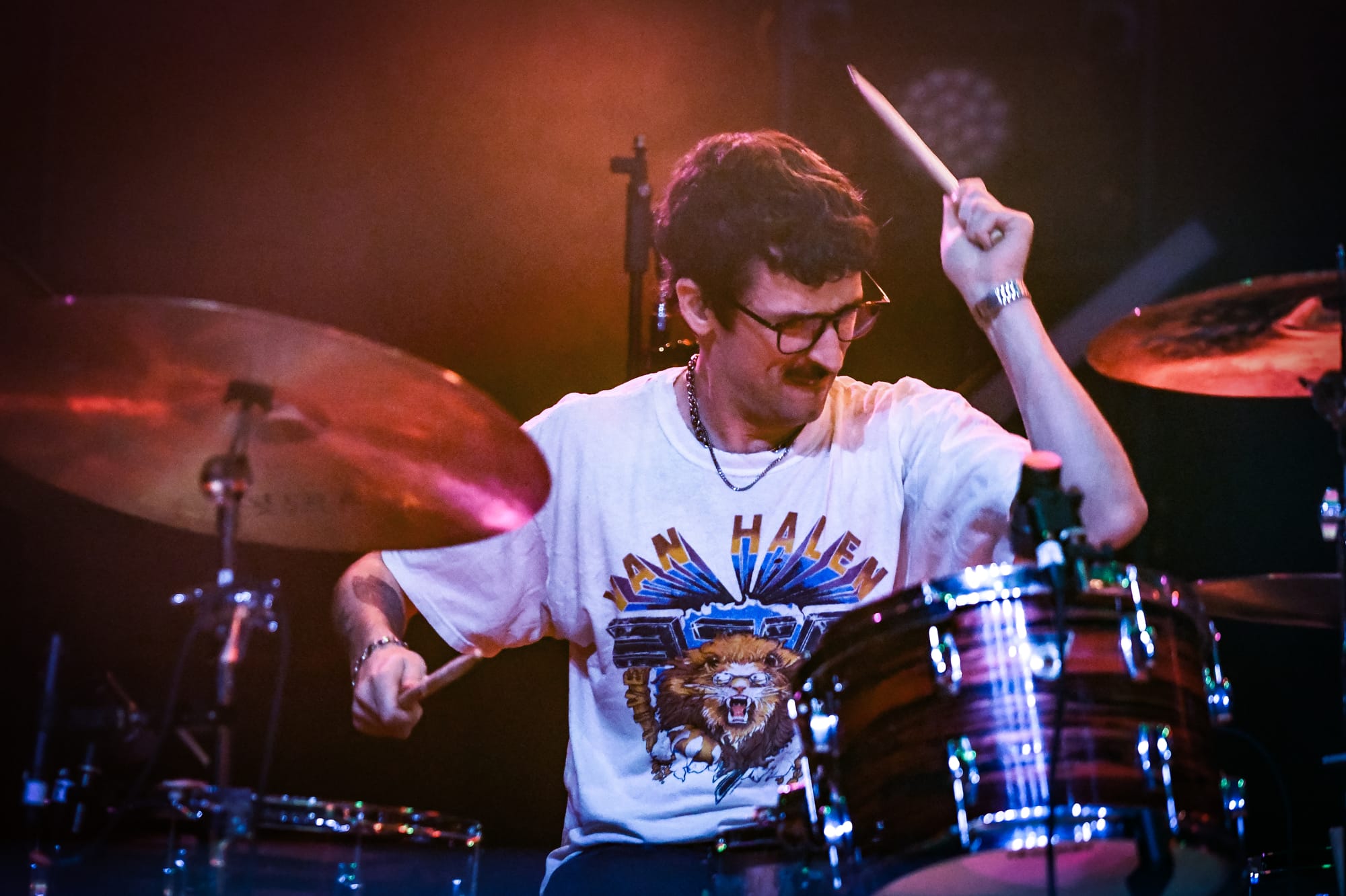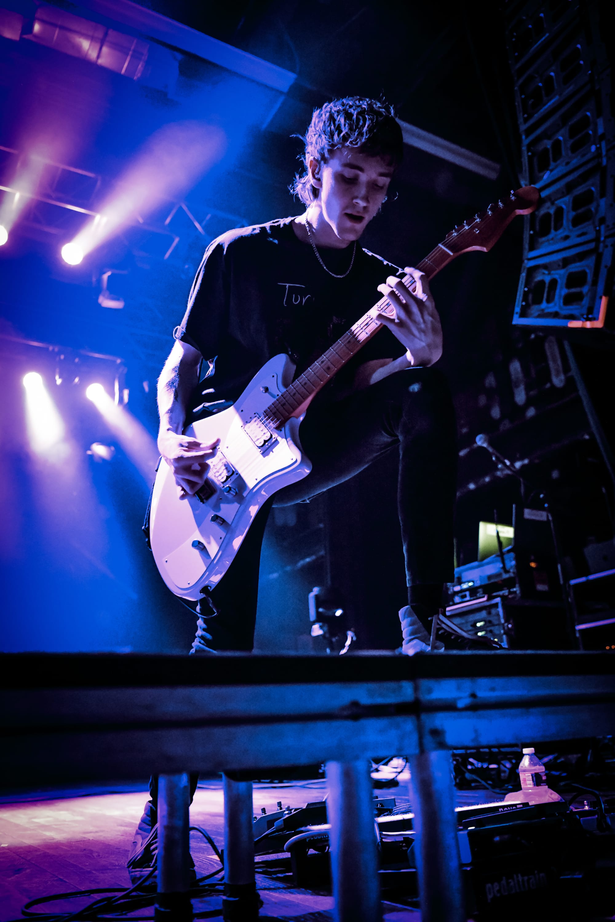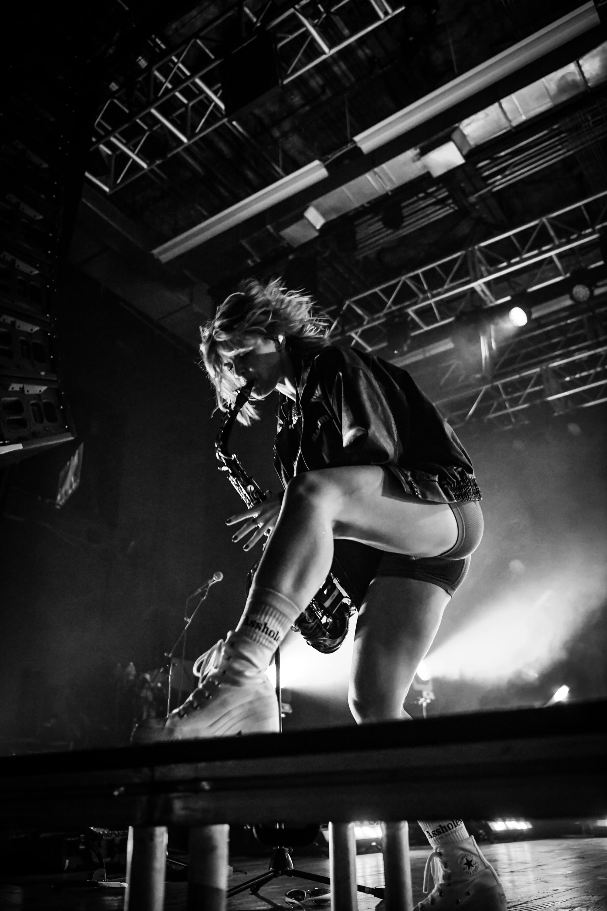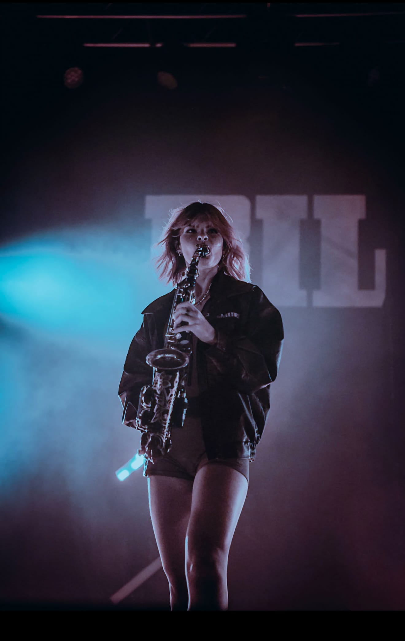 Bilmuri came out swinging with “EMPTYHANDED,” which had the crowd shouting in unison, “START! YOUR! ENGINES!,” and the energy never let up from there. Mosh pits opened, crowd surfers began pouring over the barricade, and the crowd collectively head-banged and screamed the lyrics at the top of their lungs as they continued on with “ALL GAS” and “ABSOLUTELYCRANKINMYMF’INHOG.” Frontman Johnny Franck’s vocals were on point as he bounced around the stage, connecting with fans on both sides by pointing them out, smiling, and making eye contact. Gabi Rose was particularly impressive, showcasing her powerhouse vocals as she took on solos and harmonized with Franck, jumping and dancing around the stage (in heels!), all while absolutely wailing on the saxophone. Reese Maslen thrashed his hair around while he shredded the guitar, and drummer Xavier Ware demonstrated his talents behind one of the most insane drum setups I’ve seen on a stage. Franck encouraged the audience to summon riffs from Maslen by chanting “Reese! Reese! Reese!,” resulting in multiple face melting guitar solos throughout the set.
