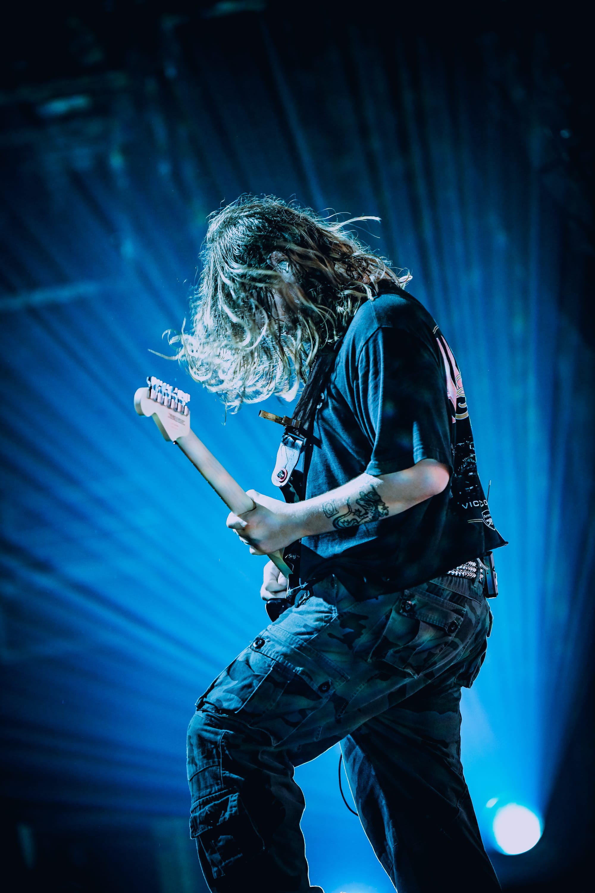 As he introduced “LIVIN’ LAUGHIN’ LOVIN’”, Franck reminisced about being a 26 year old man, sitting in his mother’s basement watching screaming tutorials on Youtube, and proclaimed, “We made it!,” a statement which was met with deafening cheers from fans. For an added element of fun, a giant bubble machine filled the venue with bubbles, crowd-surfers popping them as they passed overhead. The bubbles would make a reappearance during “More Than Hate,” with Franck noting he had to bring them back for the hardest song because it was too much power for one band to have. In a more serious moment during the set, as he was introducing “STRAIGHT THROUGH YOU,” Franck reflected on his mindset in 2016, the year Bilmuri was born. He shared that he did not see a point to life and had a plan to end his, but before following through, he started to write down what he was feeling, which turned into songs. He gave a heartfelt thank you to the fans for saving his life, stating how happy he was to be there with everyone, that if he had known that this is what his life would be like now, he never would have had those thoughts back then. Franck announced that he had bad news for the crowd, going on to state that they had only one song left, a statement met with boos from the audience who clearly were not ready for the set to end. The set ended with “BETTER HELL (Thicc boi),” the band exited the stage, the lights came up, and venue music began to play. The crowd chanted “one more song!” to summon the band back to the stage, but it didn’t appear as though they would return. However, they had us all fooled, and did return for one last song, a performance of “CORN-FED YETIS,” which showcased Maslen’s screaming talents. The crowd was buzzing as they left the venue after what was truly an incredible performance. The only thing that could have improved the night would have been a longer setlist. The band performed a total of 15 songs, and I’m sure many would have been thrilled to see at least a handful more.