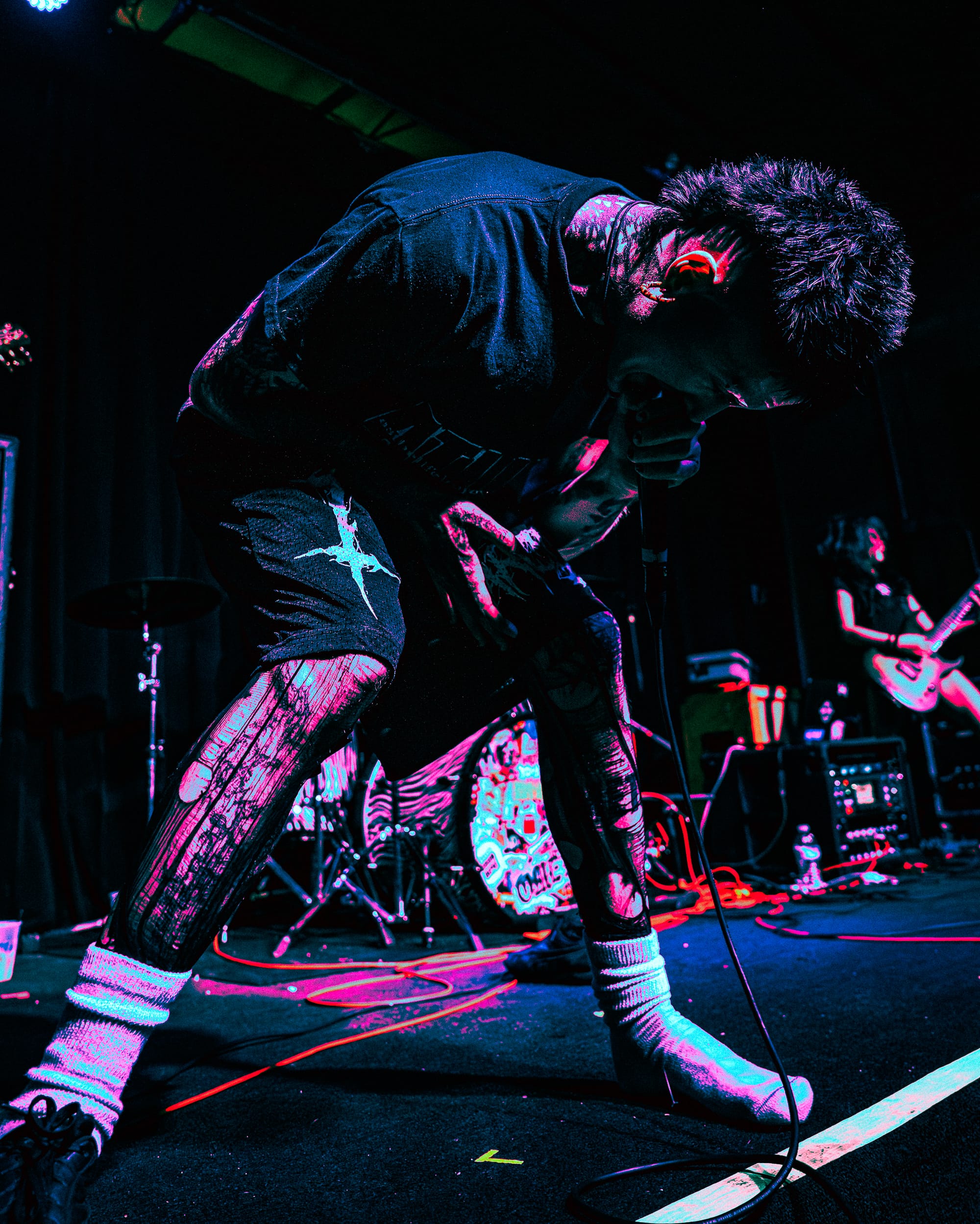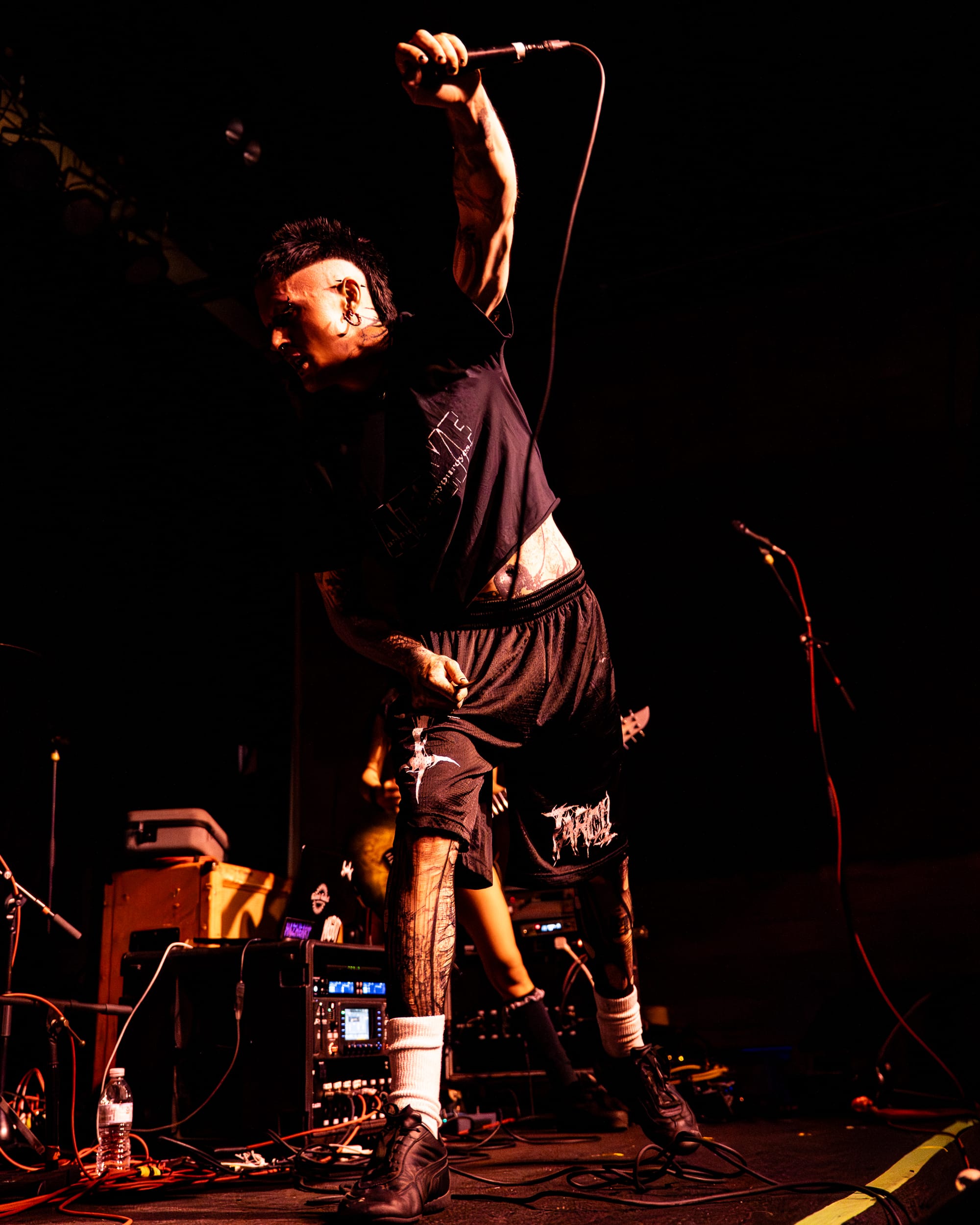 FR3AK kept the momentum going with a set that pushed the energy even further! Honestly, words can't fully capture how blown away I was with their performance. I believe I can speak for the rest of the crowd as we all rushed to their merch table right after their set to support the nu-deathcore band. From the moment they stepped on stage, the room shifted into constant motion as the pit quickly reformed and reminded us to not skip leg day, or arm day if you swing that way. Their explosive stage presence made the performance feel larger than the room itself, with the band feeding off the crowd's intensity from start to finish. Songs like "stuckinthewomb," "swallow," and "ifuckingloveyou" stood out in particular, drawing some of the strongest reactions of the night.