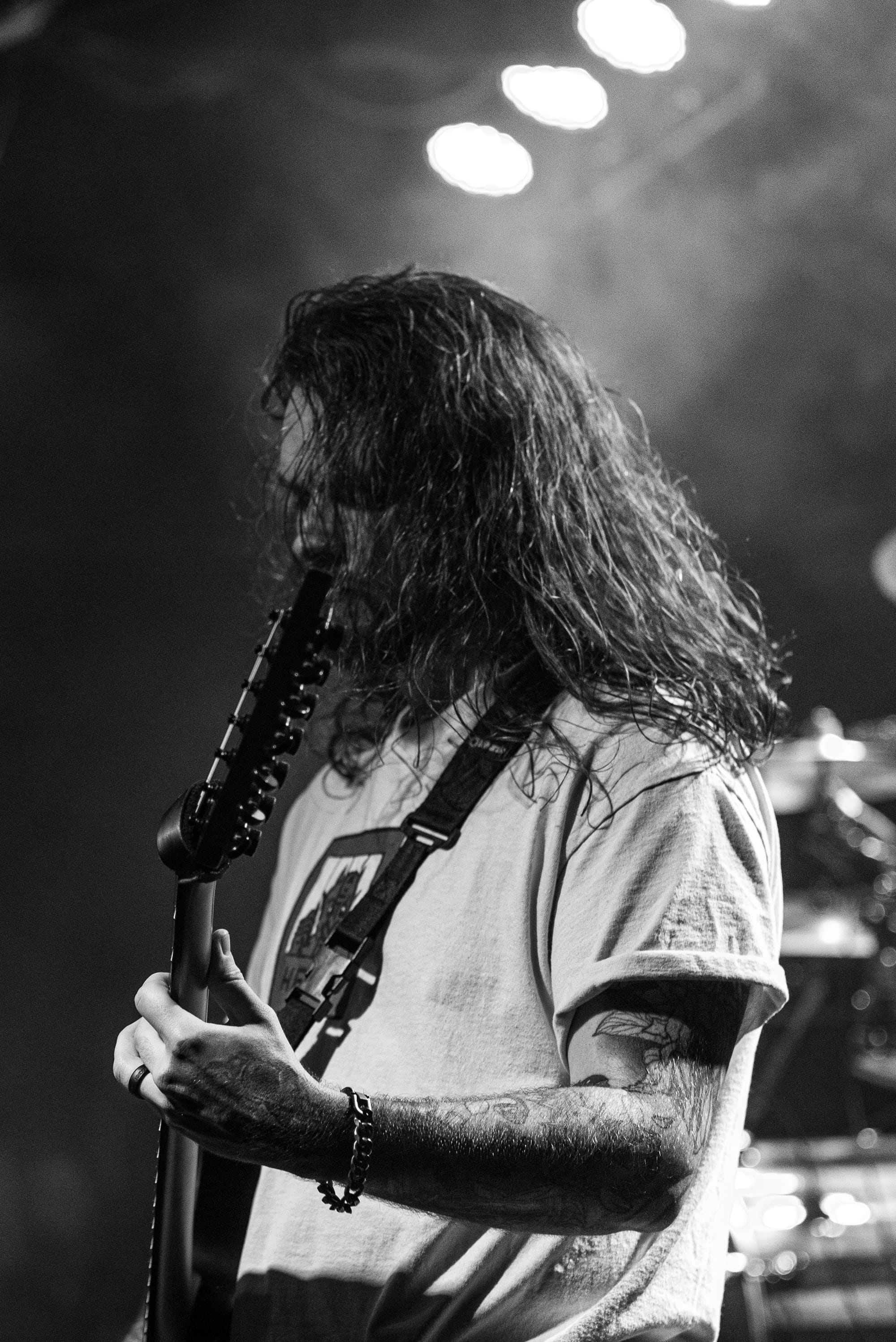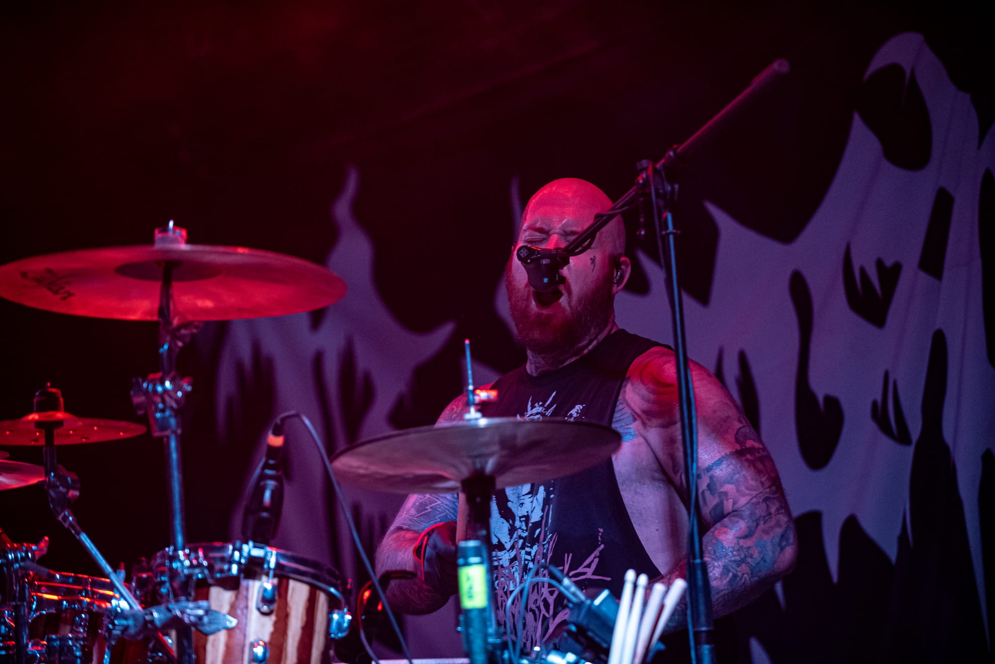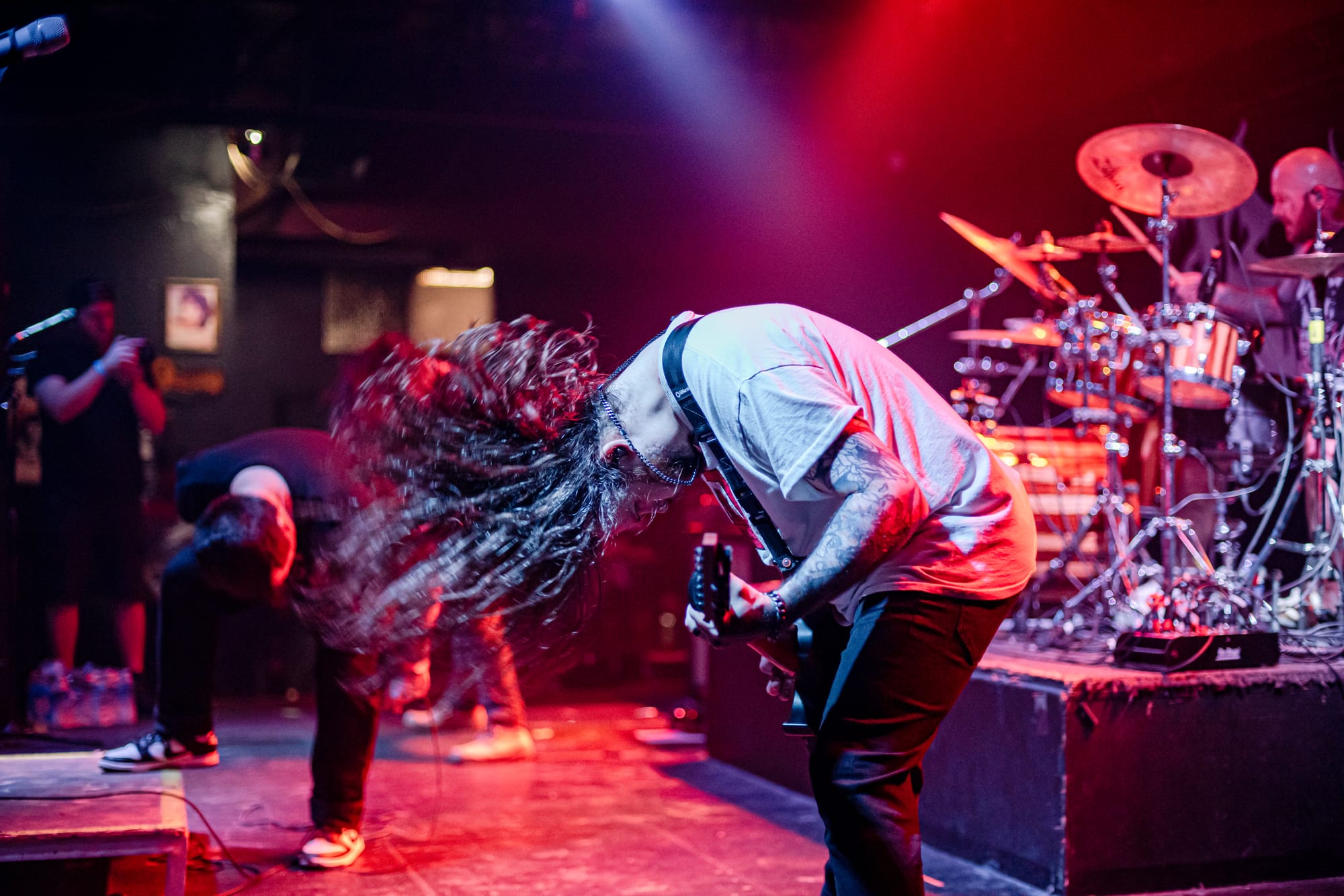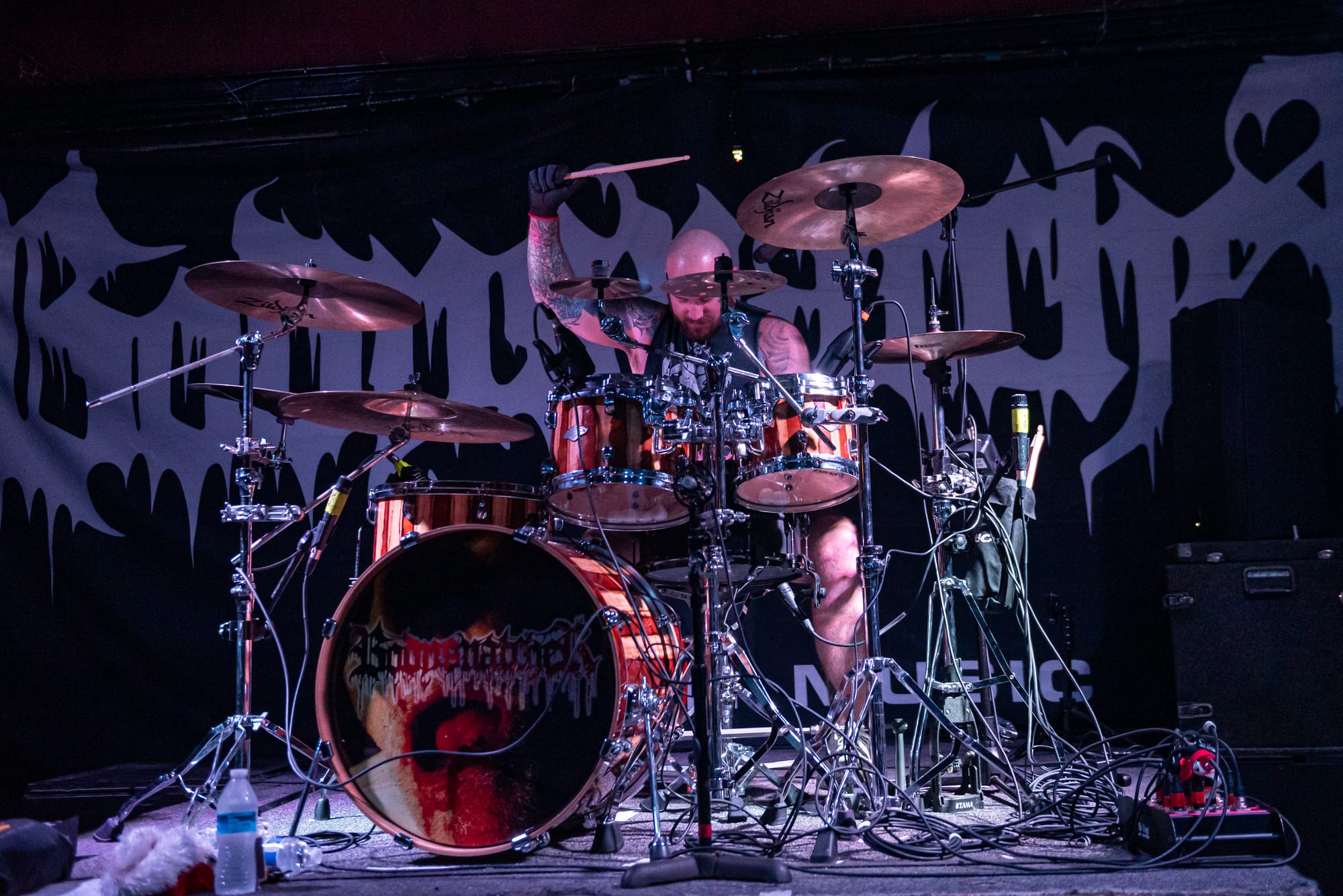 As Bodysnatcher took the stage, the crowd was more than ready to set these plans into motion, with mosh pits and daring acts of stage diving well underway. The band kicked off their intense performance with tracks off their latest EP, Vile Conduct, including "Infested," "Severed," and, later, "Confession." Their set continued with seamless transitions into songs from their older albums, keeping the crowd's energy high and the moshing alive and well. With stray elbows and kicks constantly flying at me, the electrifying performance certainly kept me entertained and my head on a swivel.