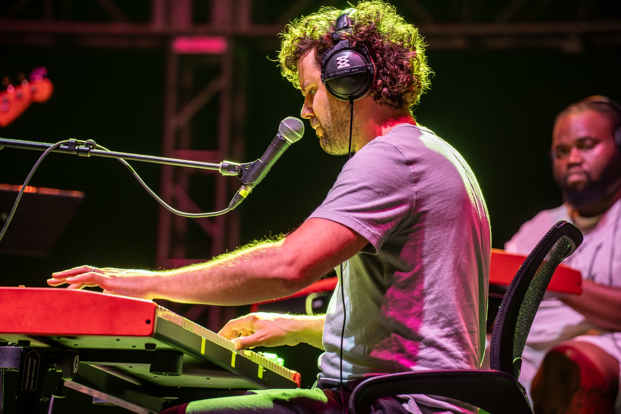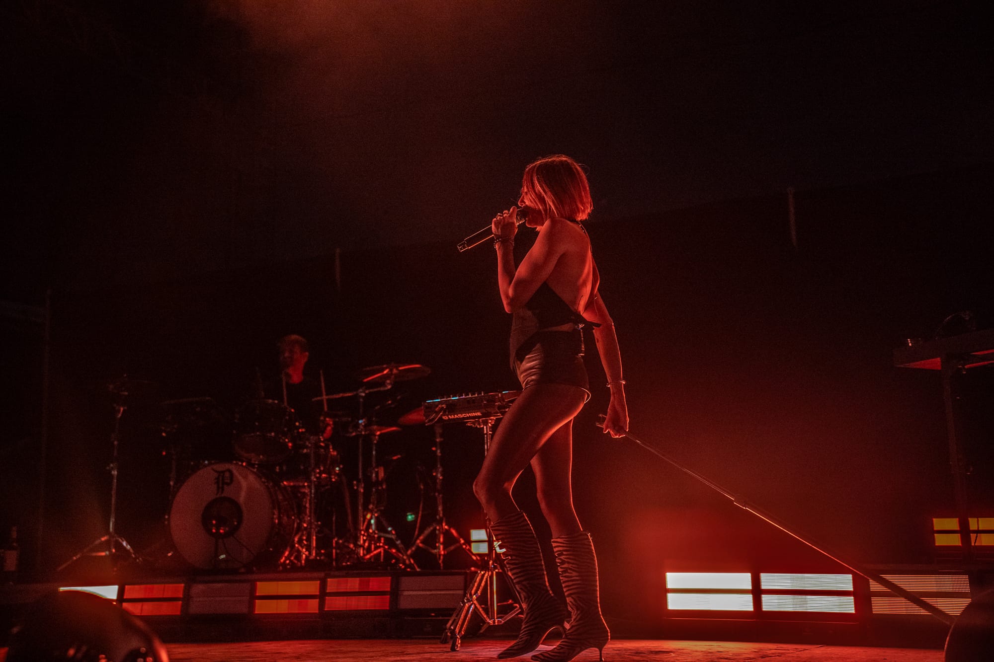Holding our various cold beverages, condensation beading on the containers, small chatter died down as the stage lights went up. The duo that is Phantogram, Sarah Barthel and Josh Carter, appeared in the glow of the lights. Starting their set off with "Jealousy," the audience's exuberance collided with the action on stage. Songs like "You Are the Ocean" and "Black Out Days" quickly followed. The encore included "You Don't Get Me High Anymore."