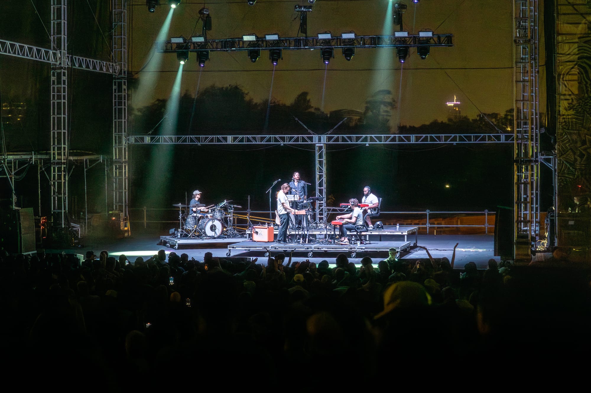 The first Friday of October didn't feel at all like fall in Houston, TX. Houstonians packed it in to White Oak Music Hall's hilled outdoor venue to see indie music at its best with Phantogram and Passion Pit. Bring on the humidity; nothing can keep us from the music we love! On arrival, half the audience was headed to the front, while the other half wandered up the hill to get a larger view of the whole scene as it unfolded.