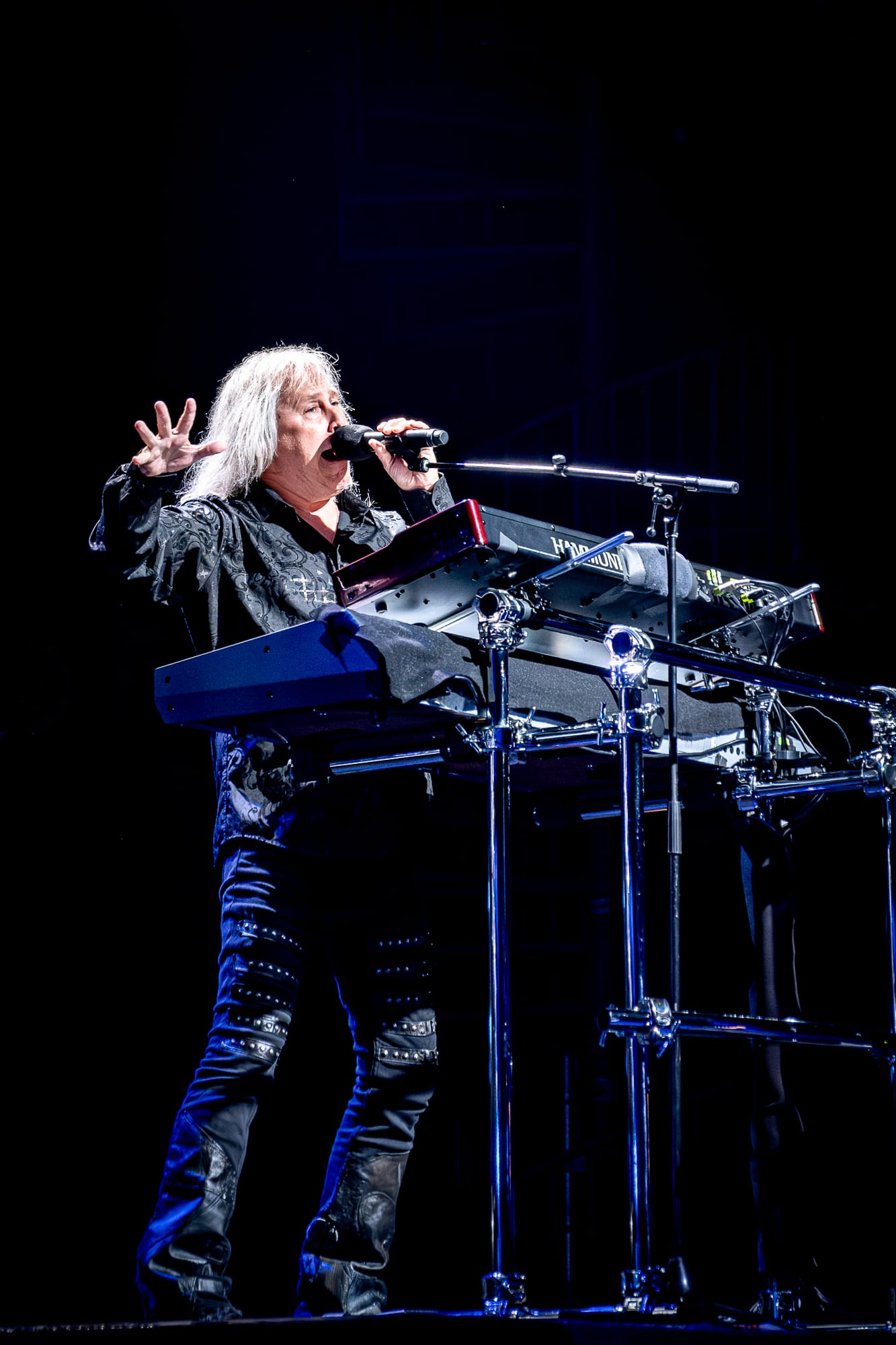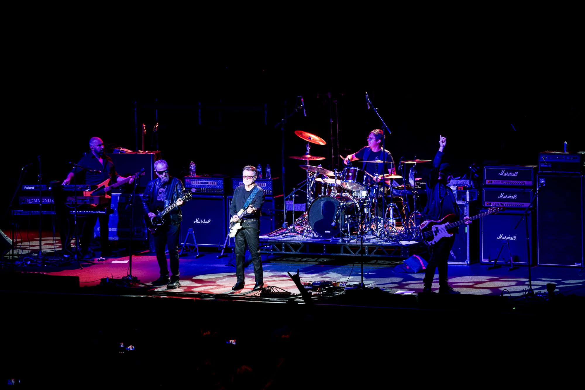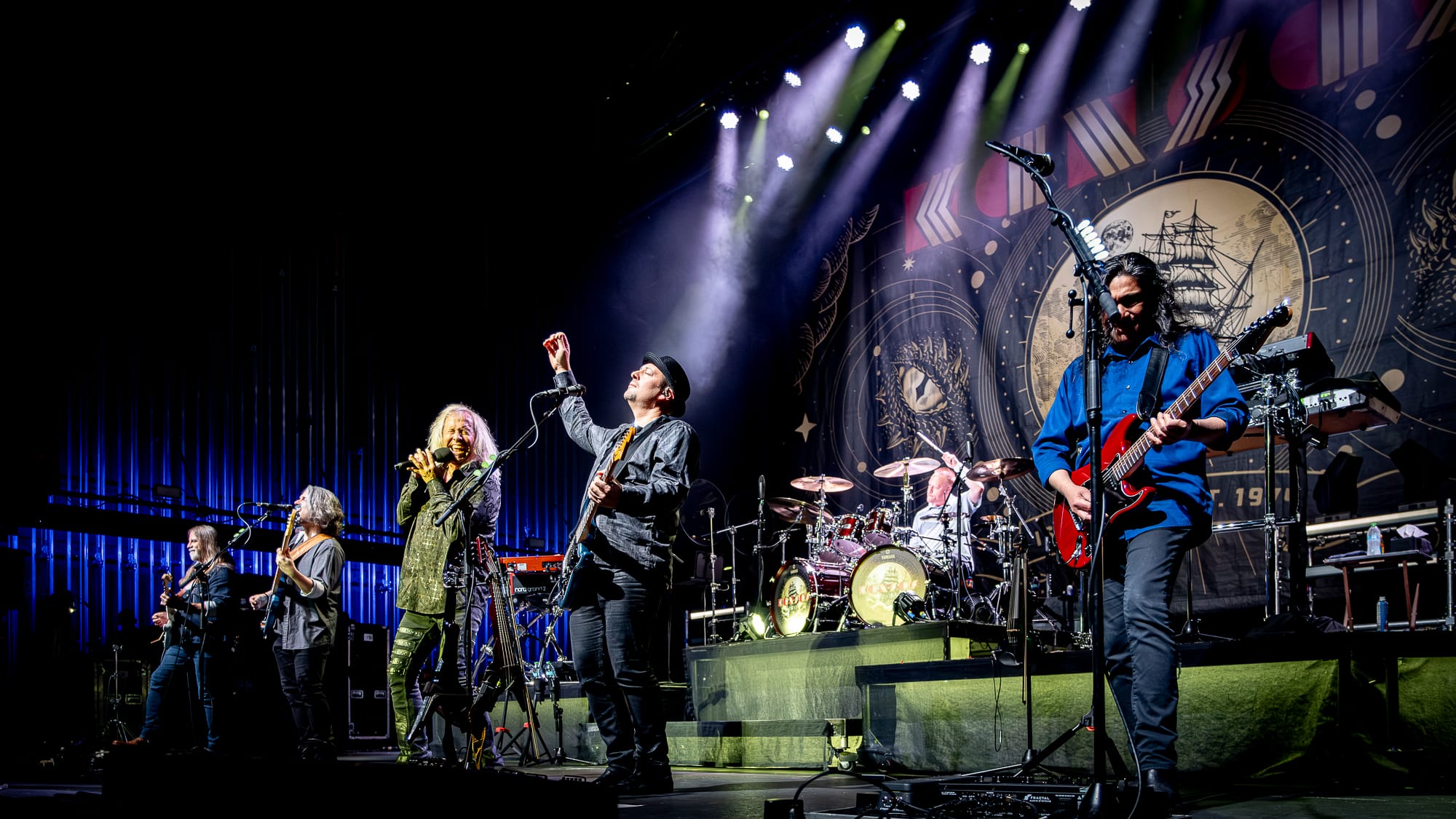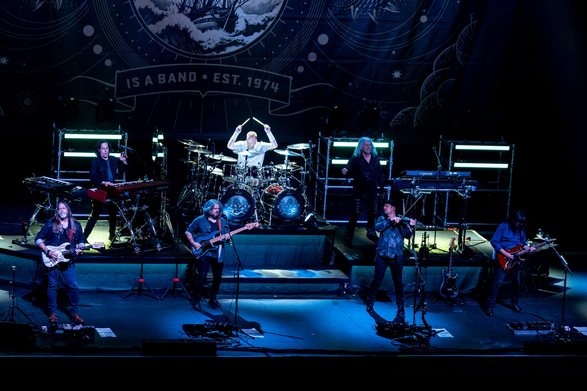 Tonight’s opening act, Blue Öyster Cult, brought out a strong contingent of fans, some wearing tour shirts that were older than me! At 41, that is no small feat. I spoke to quite a few people who came to see B.O.C and just considered Kansas a bonus. Despite some technical difficulties with lead singer and guitarist Buck Dharma’s guitar cutting out, the band still put on a well-rounded show with 10 songs from 8 different albums. The classic rock staple “Burnin’ for You” really got the crowd going, and “Godzilla” had them going nuts. Of course, a few notes into “(Don’t Fear) The Reaper,” someone in the crowd shouted for more cowbell, a callout to the famous SNL skit with Christopher Walken. “Cities on Flame with Rock and Roll” would close out the set. Quite a fitting finish given how hard the final guitar solo shredded.