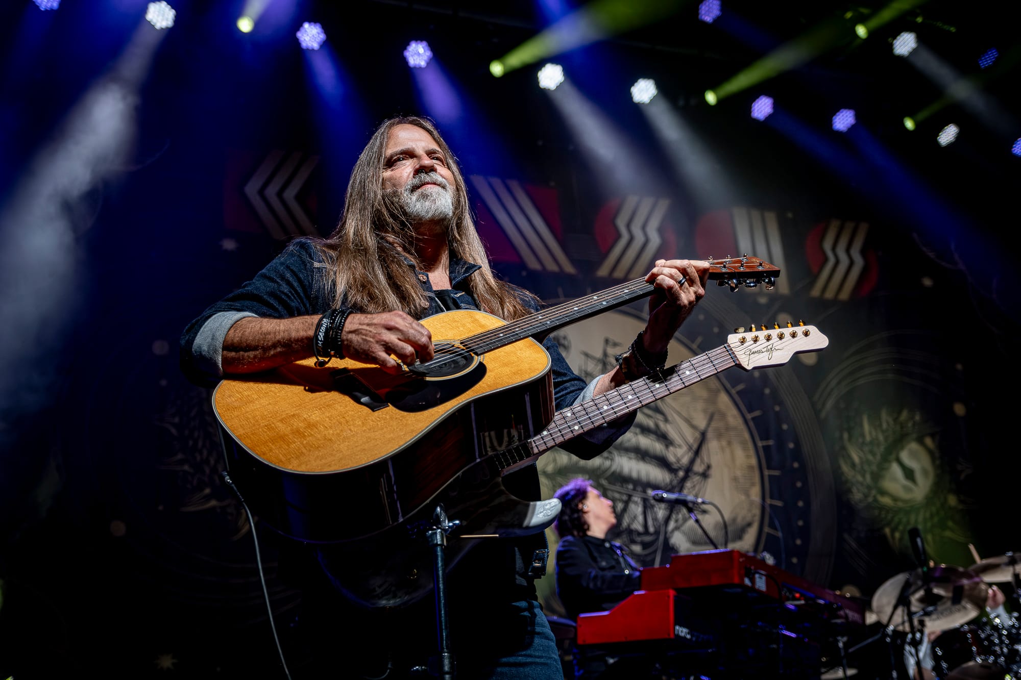 After a quick changeover, the lights dimmed again, and Kansas took the stage. With seven members on this tour, Kansas brings a big sound and energy to the stage. Wasting no time getting to the music the fans came to hear, Kansas opened their set with one of their bigger hits, “Point of Know Return.” Upbeat organs and violin would help set the tone for the evening. Despite the two remaining original members no longer touring, the band sounds tight and polished. Given that Kansas did their 50th Anniversary tour in 2023, I can forgive them for resembling the ship of Theseus. These guys are still rocking. Ronnie Platt’s vocals are a fitting replacement for Steve Walsh. The band would show off their technical prowess by playing one of the longest and most difficult songs of the Kansas catalogue, “Song for America,” only to be followed by what is arguably the band’s biggest hit, “Dust in the Wind.” Ronnie would jokingly ask how many people have heard that one before, drawing laughs from the crowd. As the show goes on, there’s no doubt that Kansas is one of those bands that helped lay the foundation of rock and roll and southern rock.