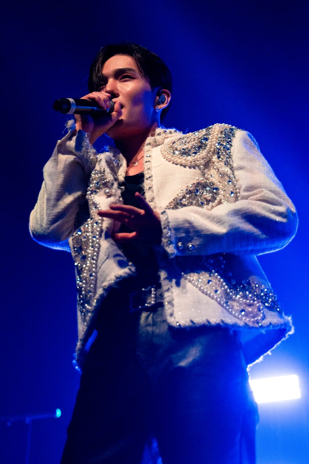 Finally, the full group took to the stage, clad in brilliant white, starting things off with the fun dance track “Move My Body.” Everyone was standing and moving at this point, with no signs of stopping. Between songs, the classic whooping and chanting echoes in the building, as the members move to their starting positions for each choreography.
