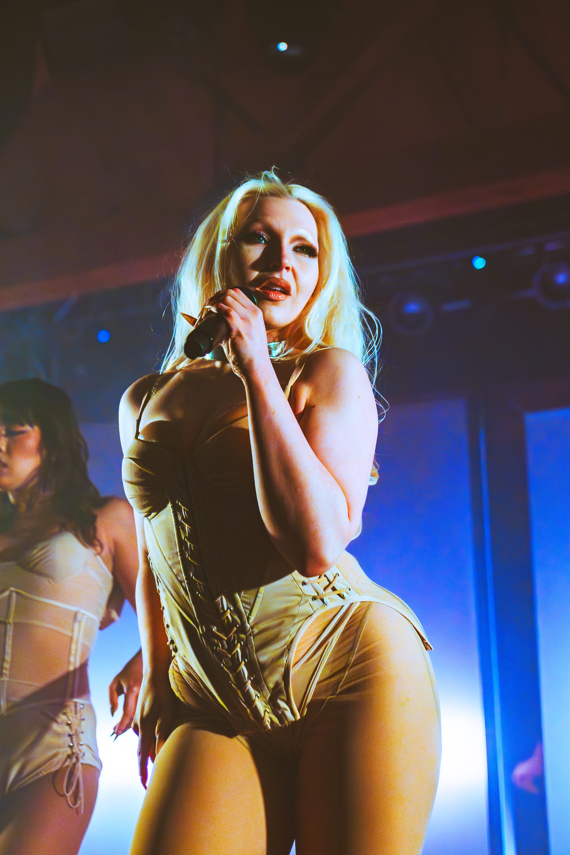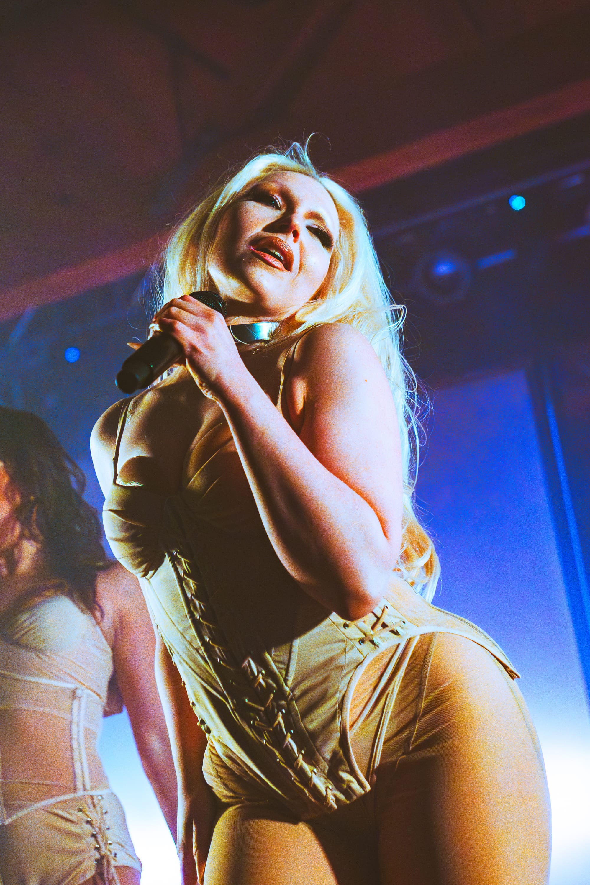 COBRAH brought the Torn Tour to Showbox SoDo in Seattle on March 30, which is the first non-festival date of the tour. COBRAH is a Swedish singer-songwriter who makes dance/electronic music. She often implements queer and BDSM elements in her music, visuals, and outfits. Her new album “Torn,” released on March 6, is the supporting album for the Torn Tour.