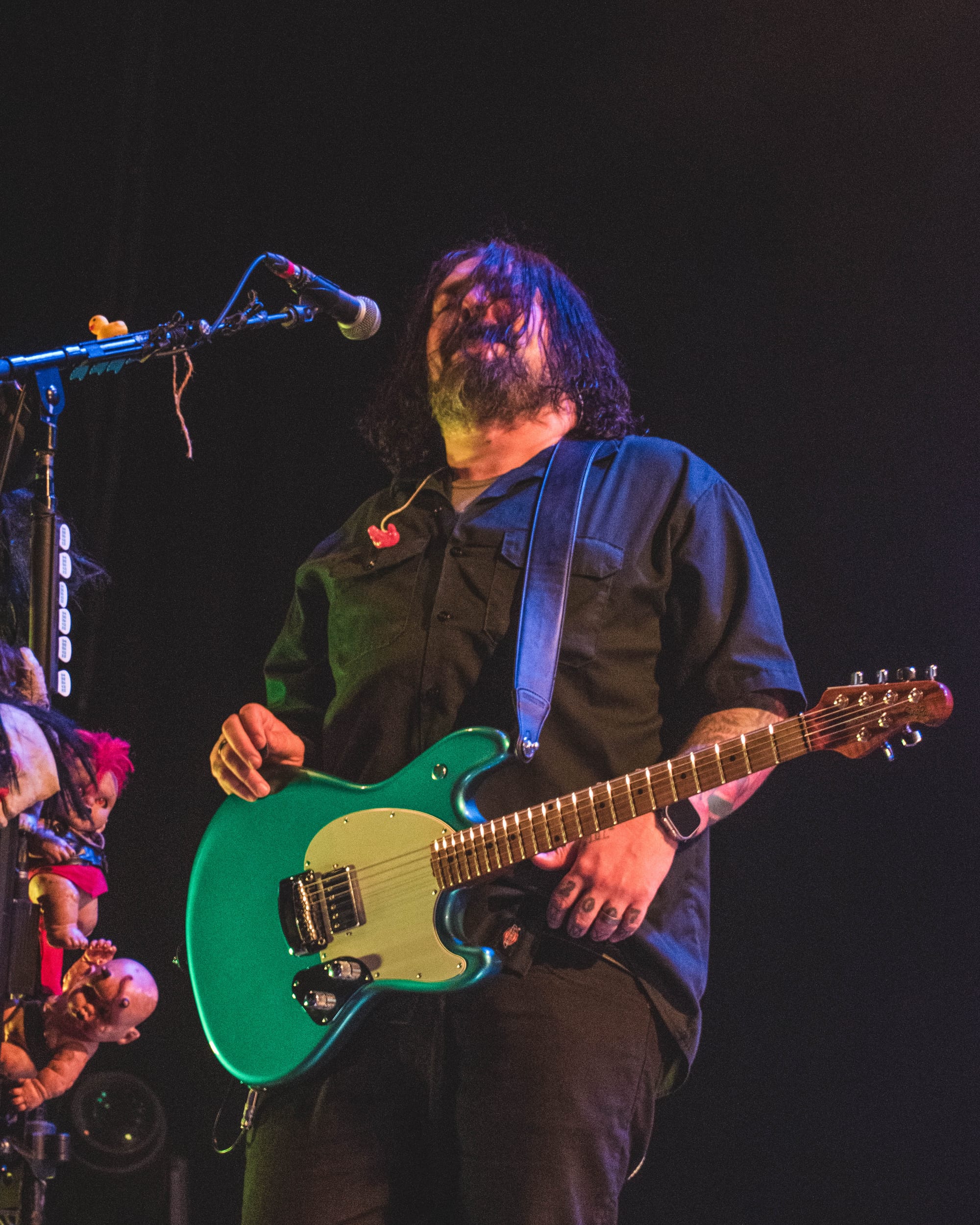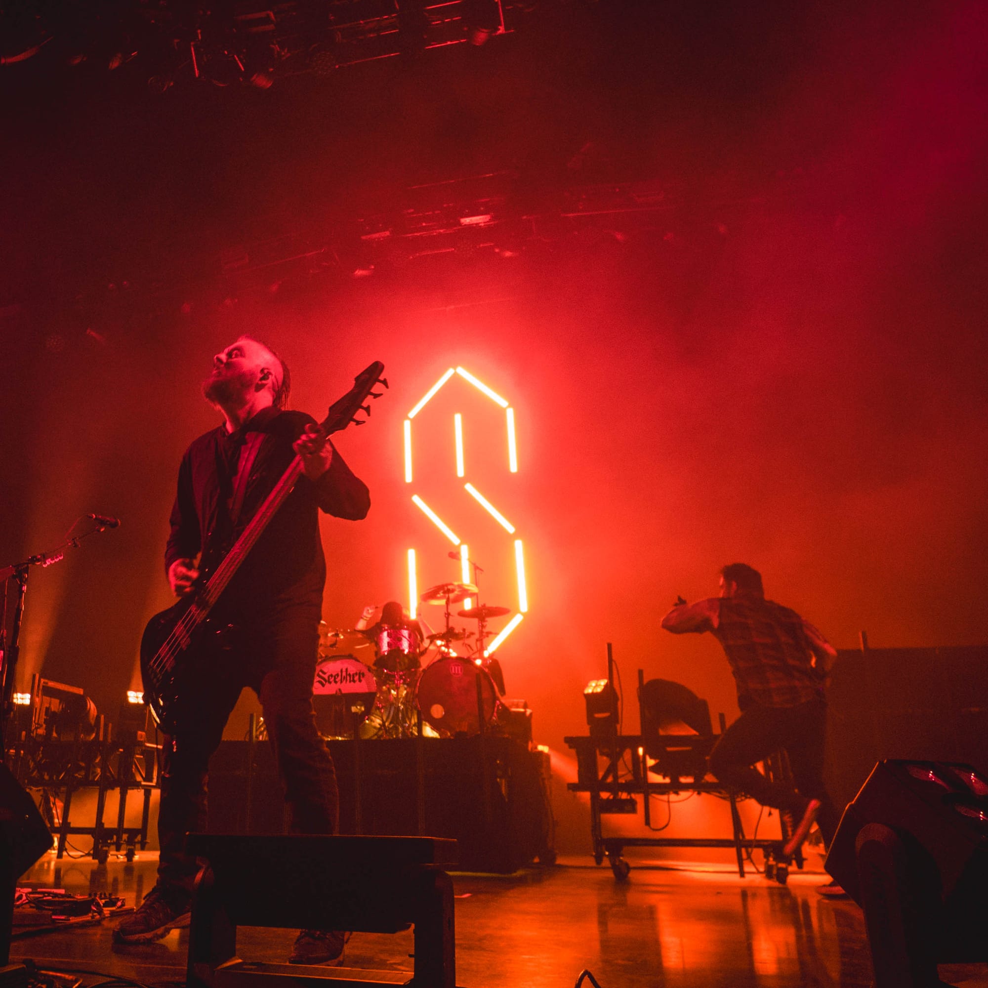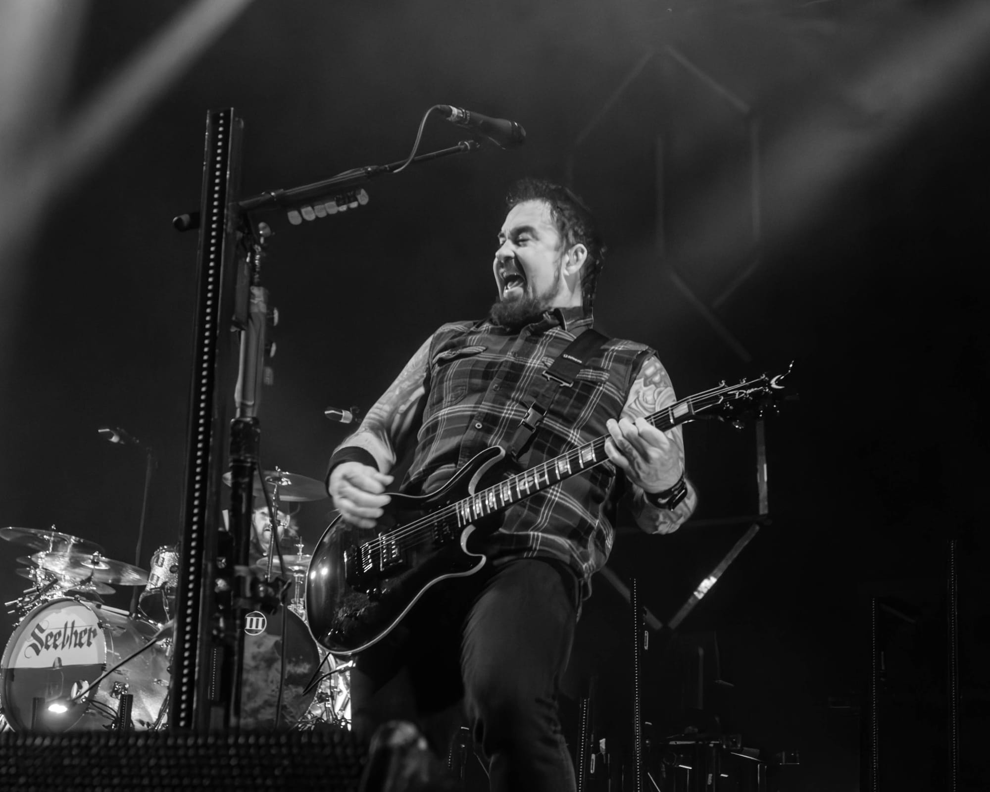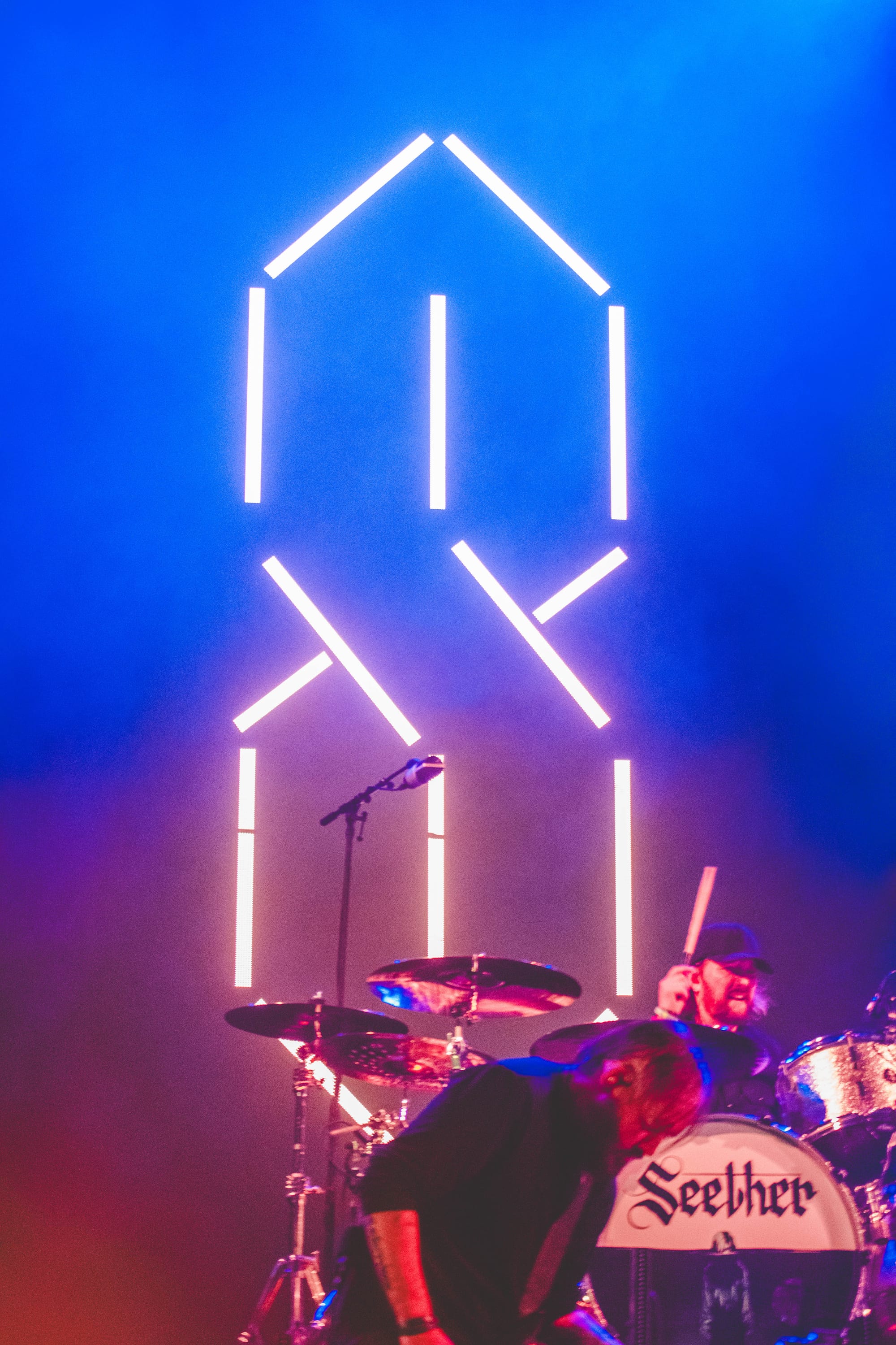 After much singing, jumping, and waiting, it was finally time for Seether to take the stage. With over two decades of exceeding musical expectations and milestones, it was an honor and pleasure to finally see this performance. With that classic "S" as a backdrop (you know the one, and if you were there, you get it) and a mic stand full of what appeared to be severed doll heads, Seether was ready to bring down the house. Hearing some of my favorite songs like "Fake It" and "Country Song", among others, was nothing short of spectacular. Every fan in the front row was on their feet during the band's set and gave no indication of ever stopping or calming down.
