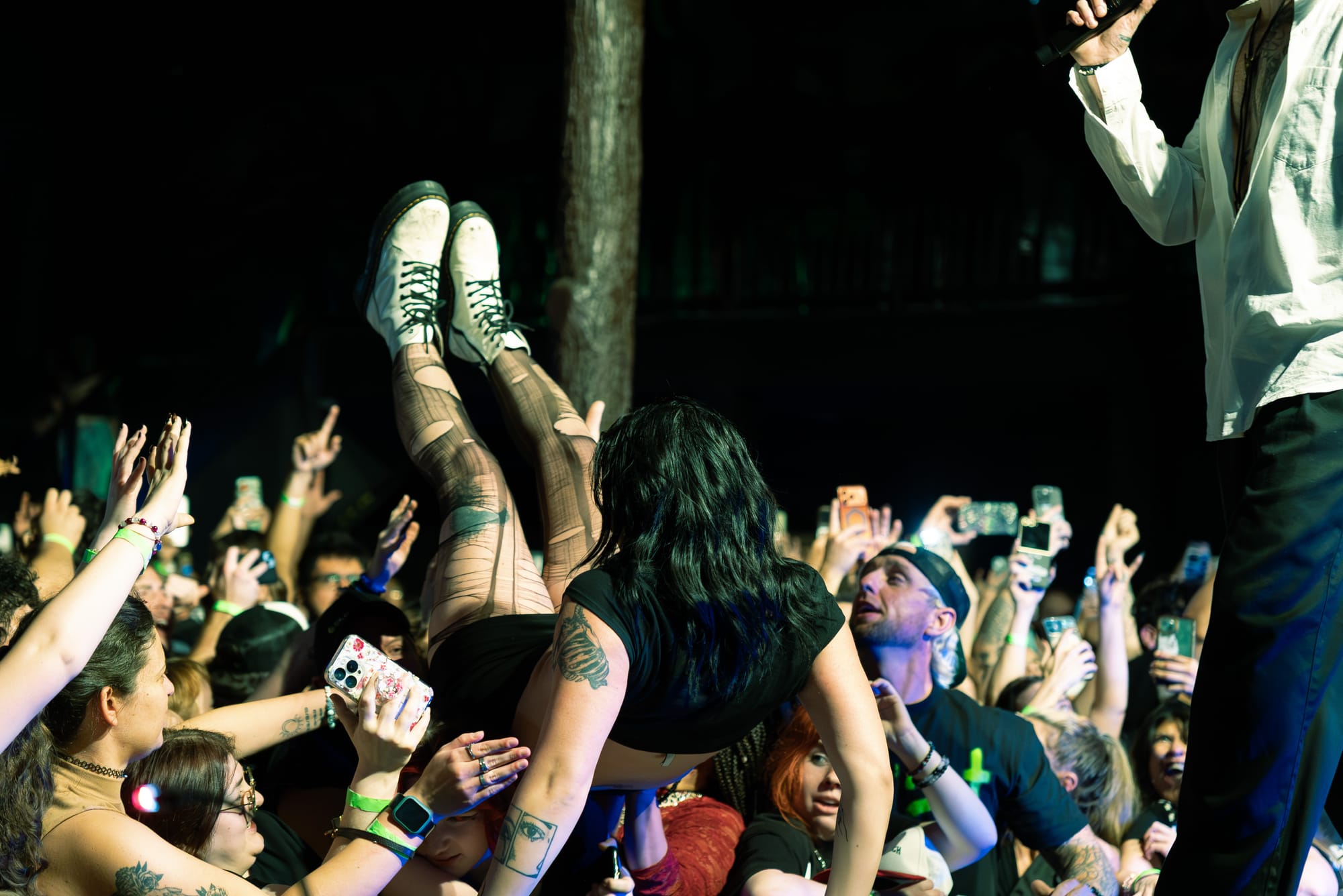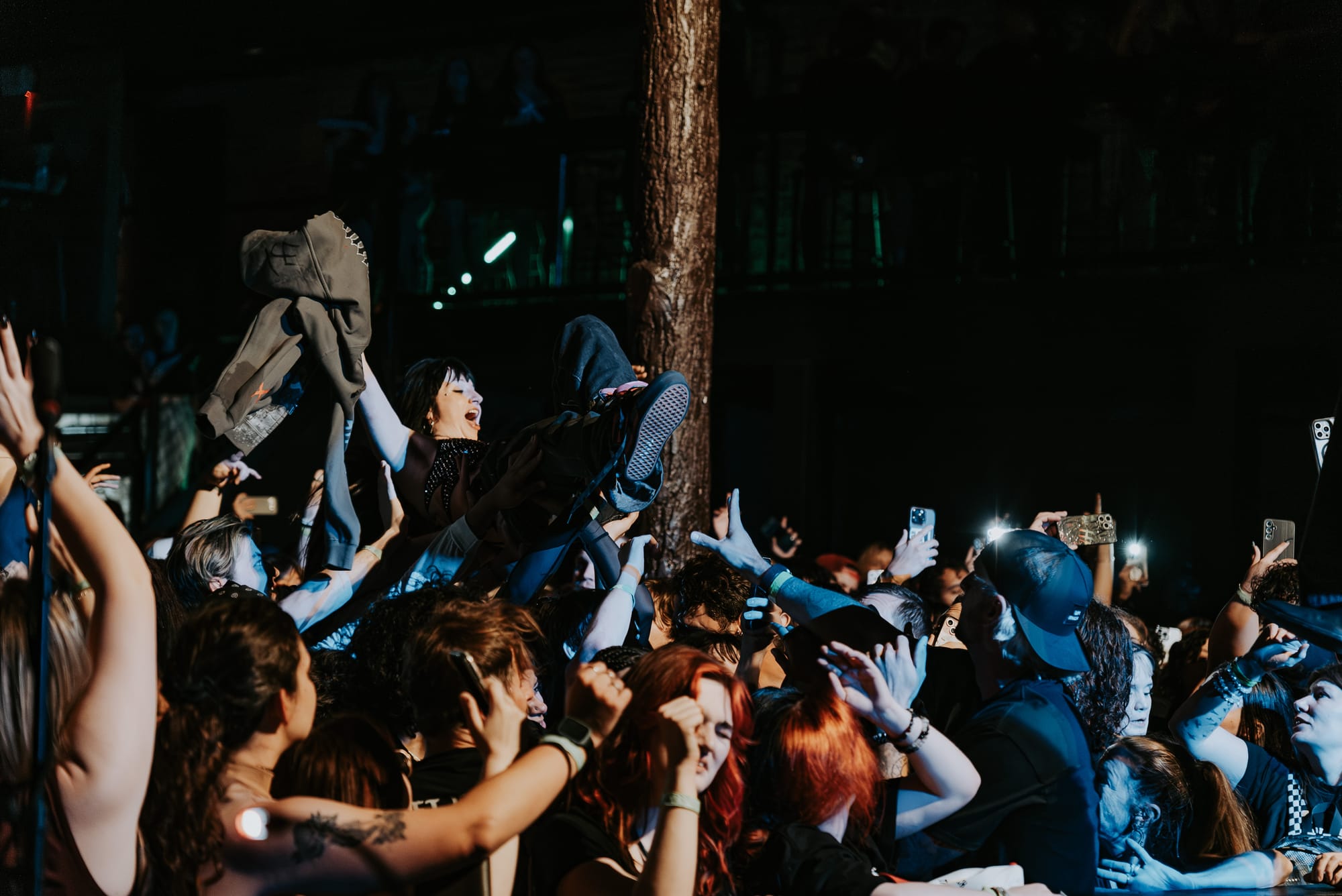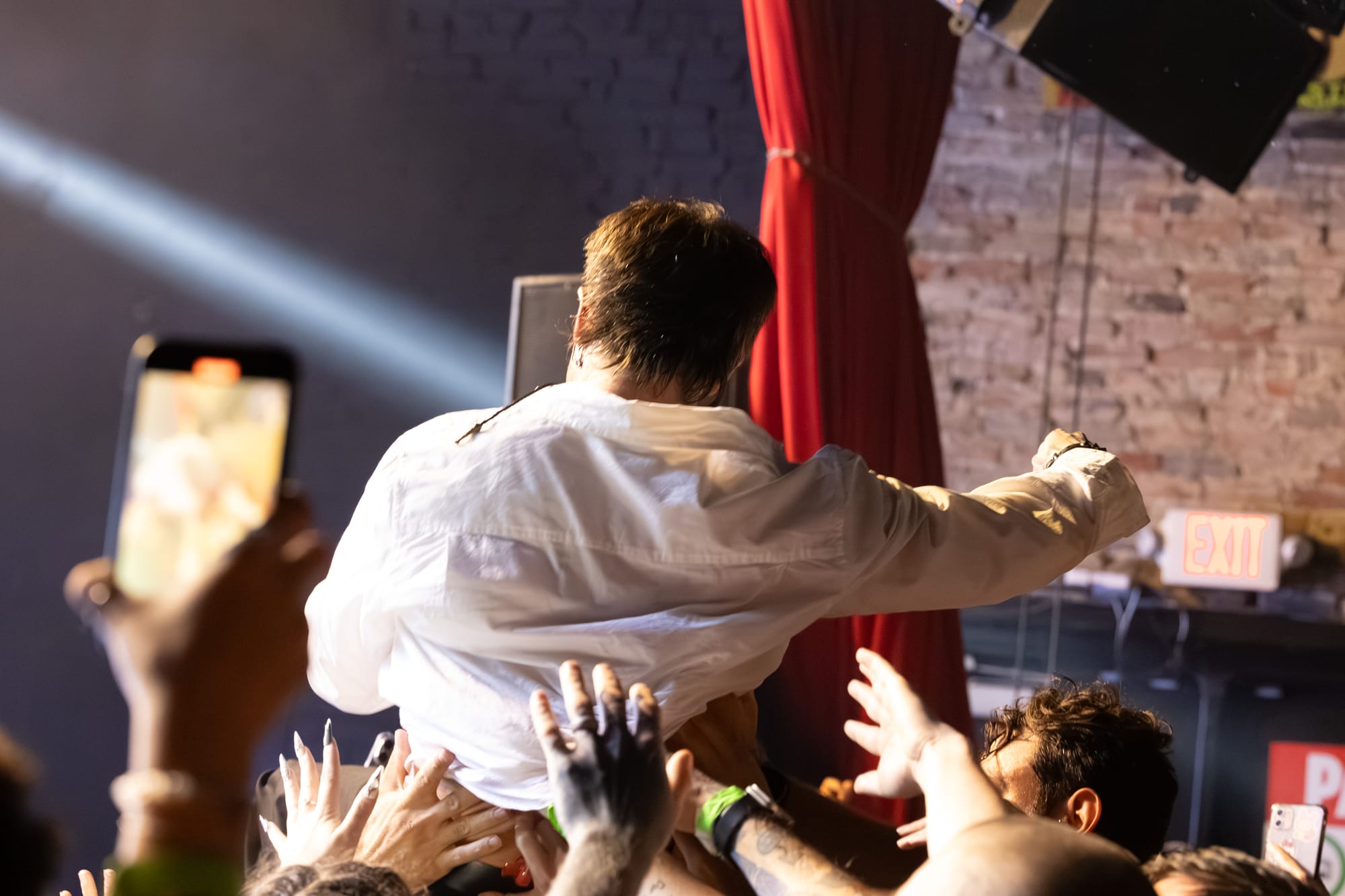 HolyWatr crowd surfing, including singer, Patrick.