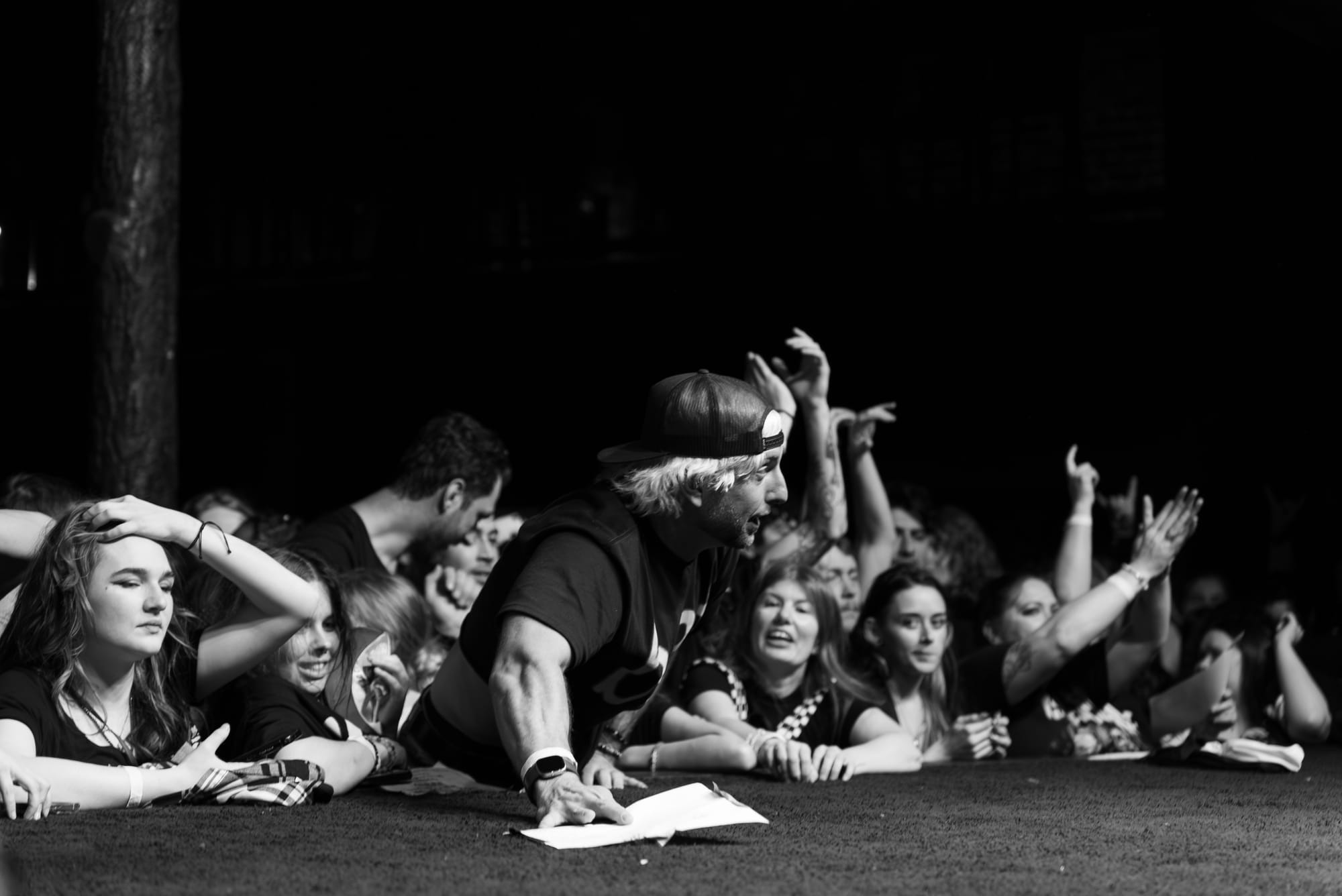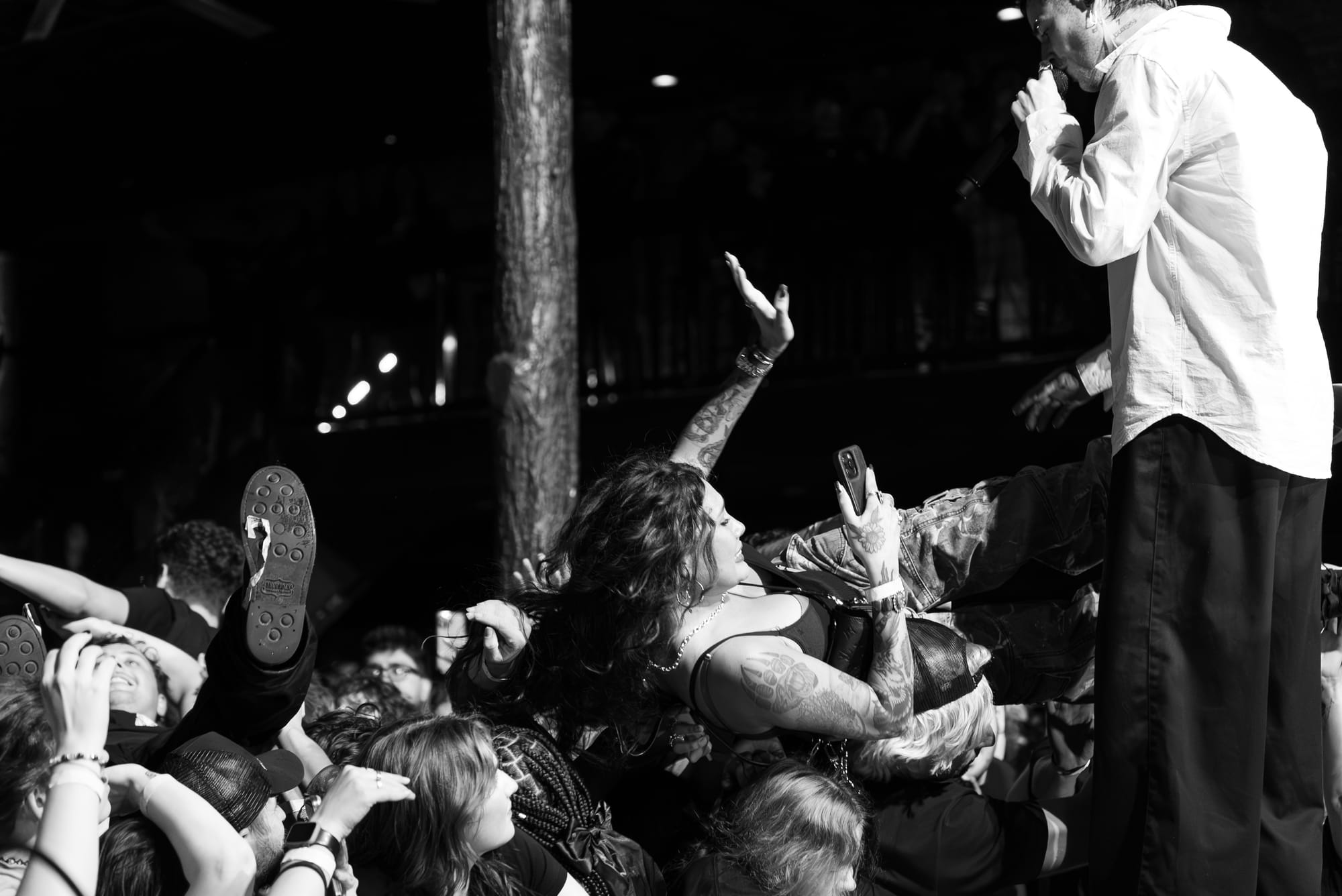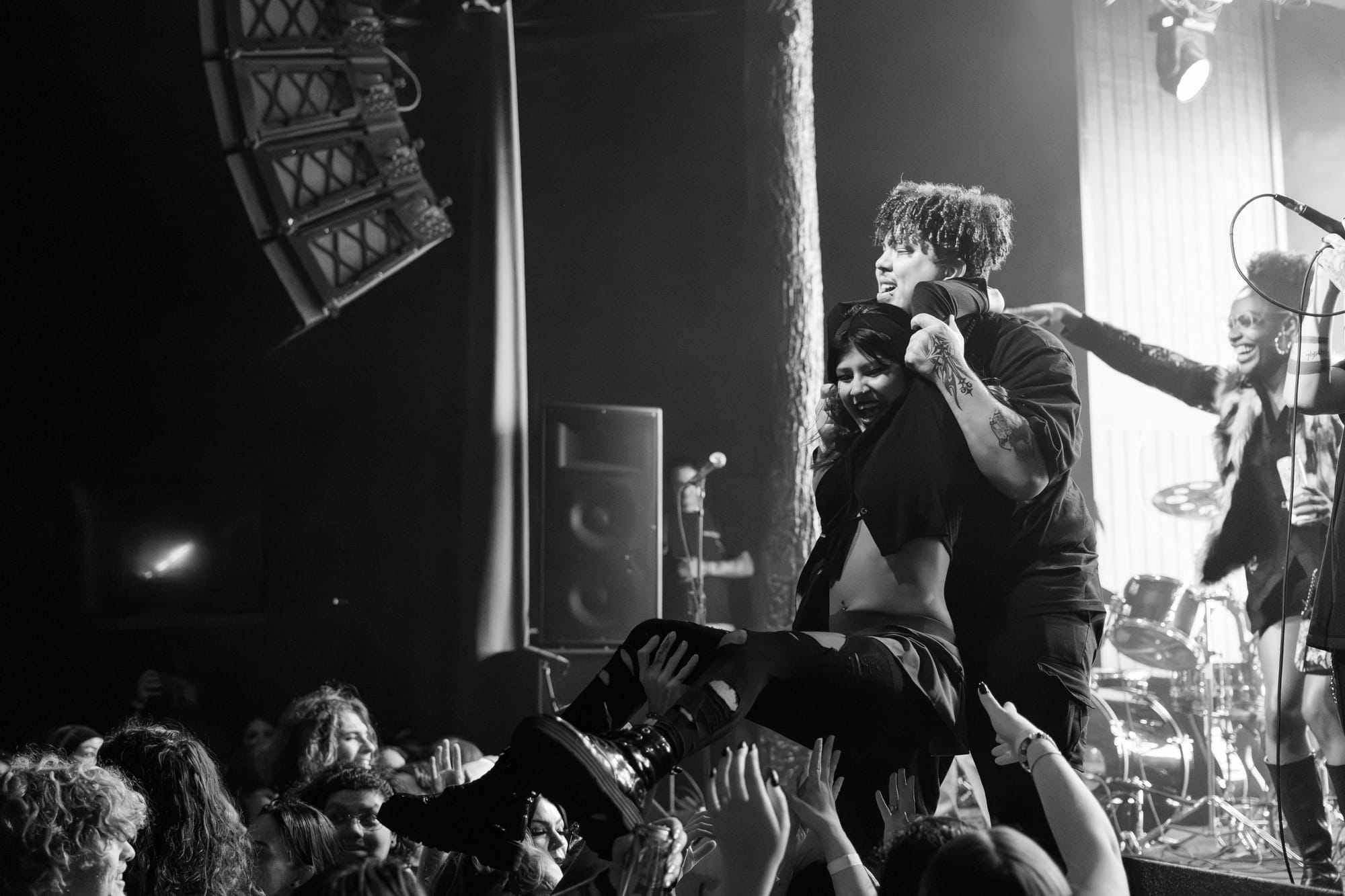 HolyWatr crowd surfing, including singer, Patrick.