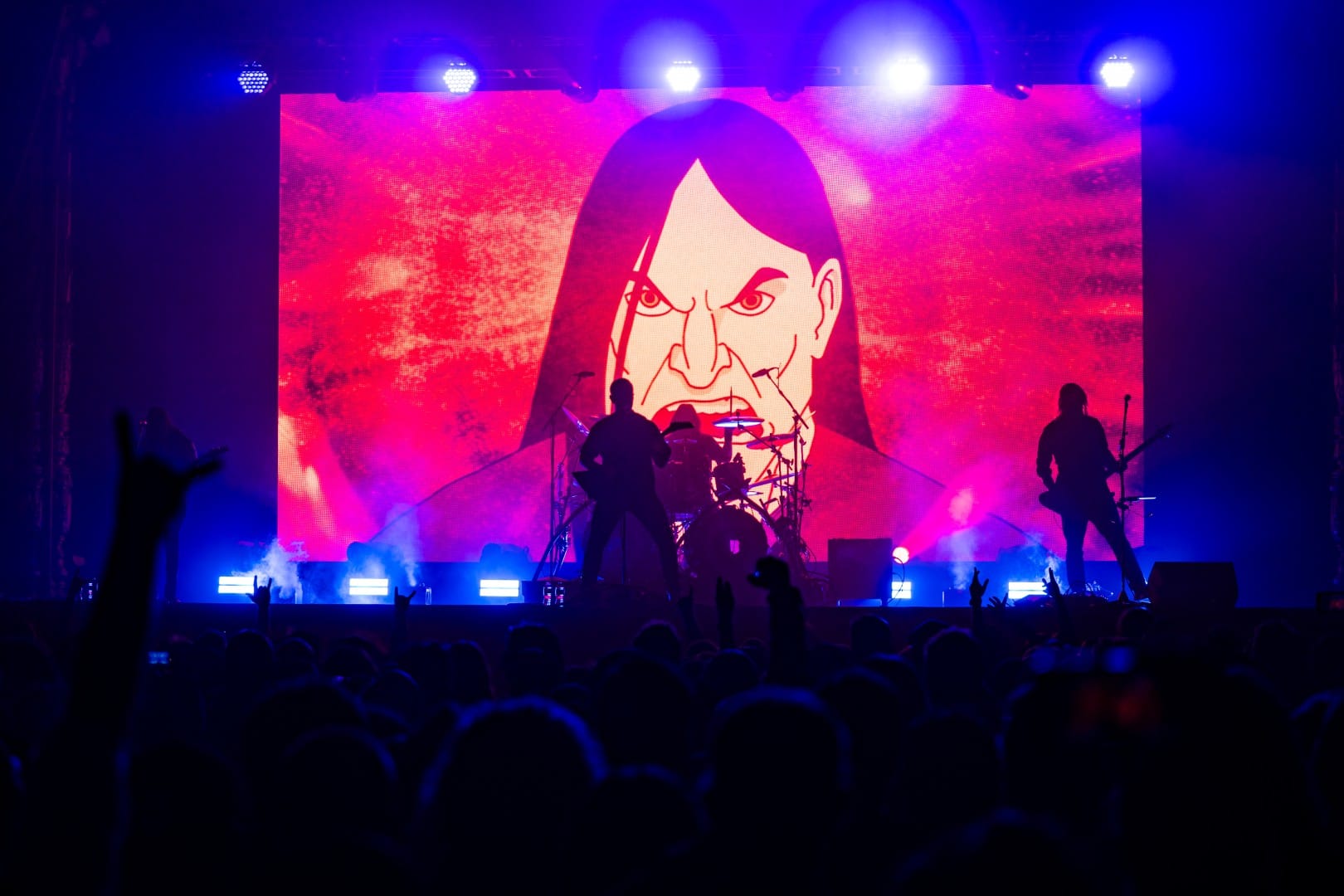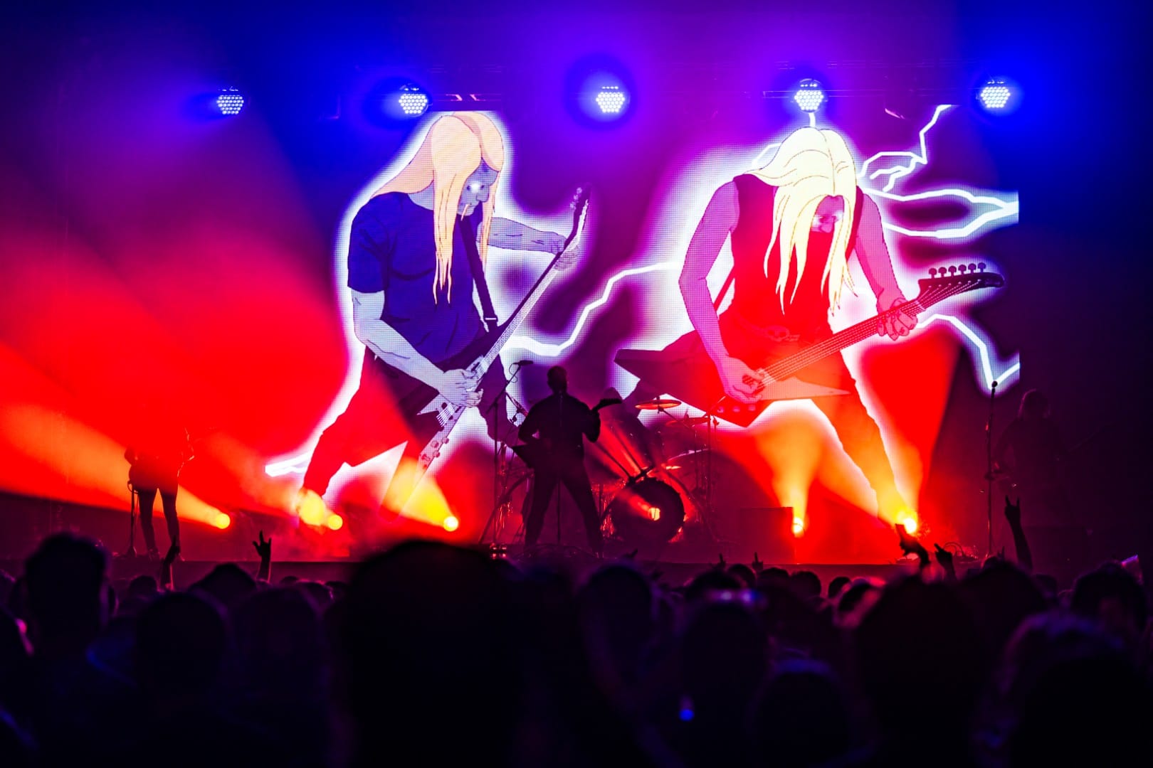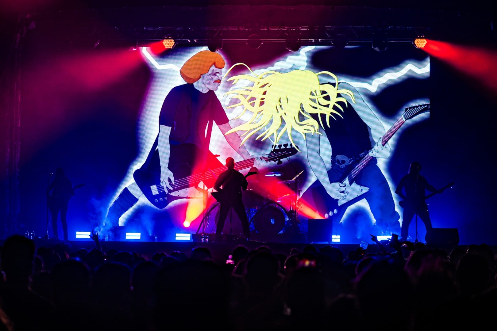 The show barely felt like a live performance, with even the fastest, wildest of Dethklok songs being performed flawlessly by Small and his bandmates in total darkness, while epic animated music videos were shown on the giant screen behind them. Opening with the show’s theme song, aptly titled “Deththeme,” the circle pit grew to a massive size immediately as they transitioned into “Awaken” and “Bloodrocuted.” Keeping up the mystique of the show, Small never spoke as himself, only doing the voices of the multiple characters that he voiced on the show. At one point, he even had conversations with himself, switching between characters, which was honestly one of the most impressive parts of the night outside of the blistering guitar and vocal parts he handled.