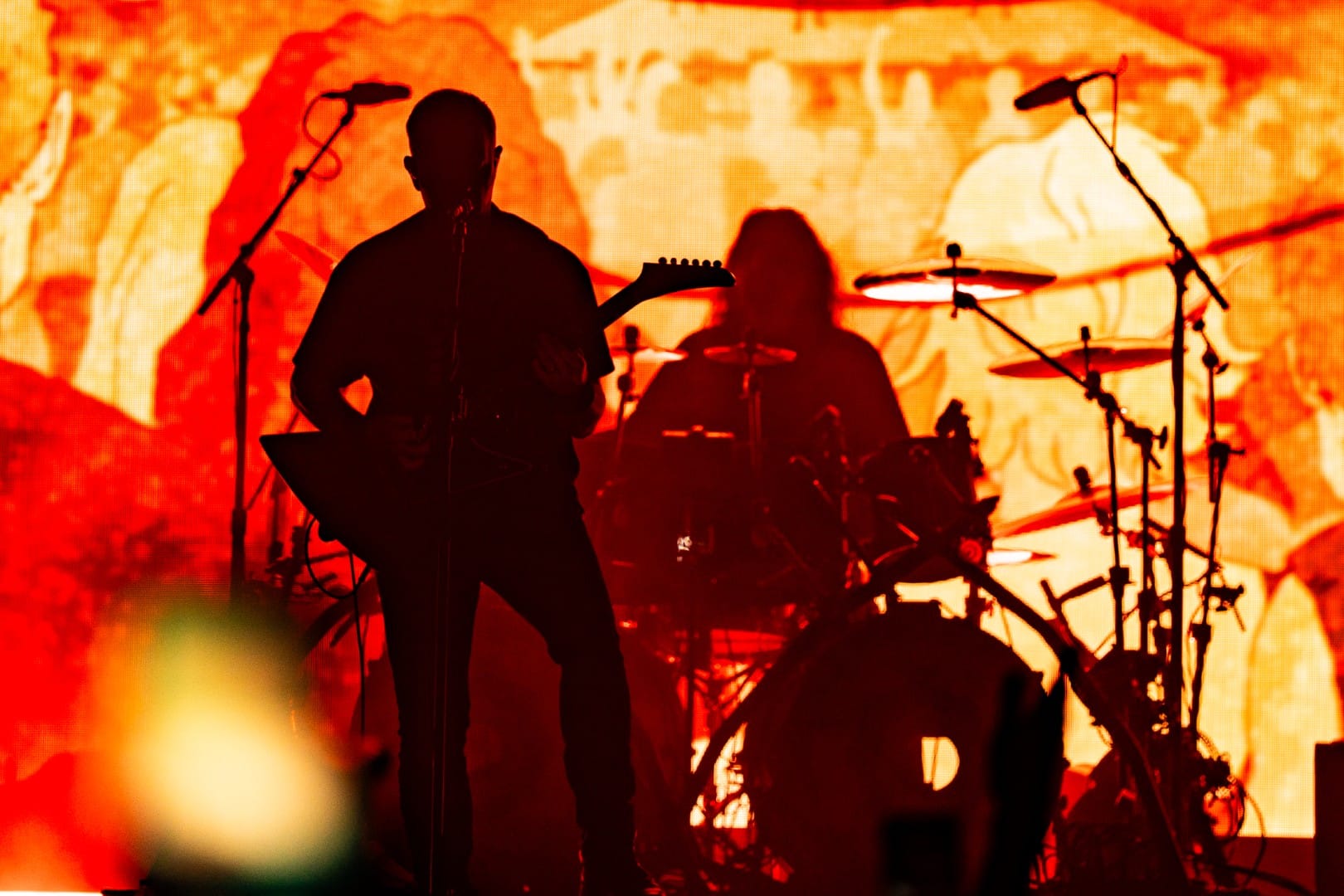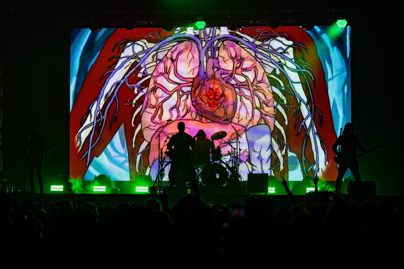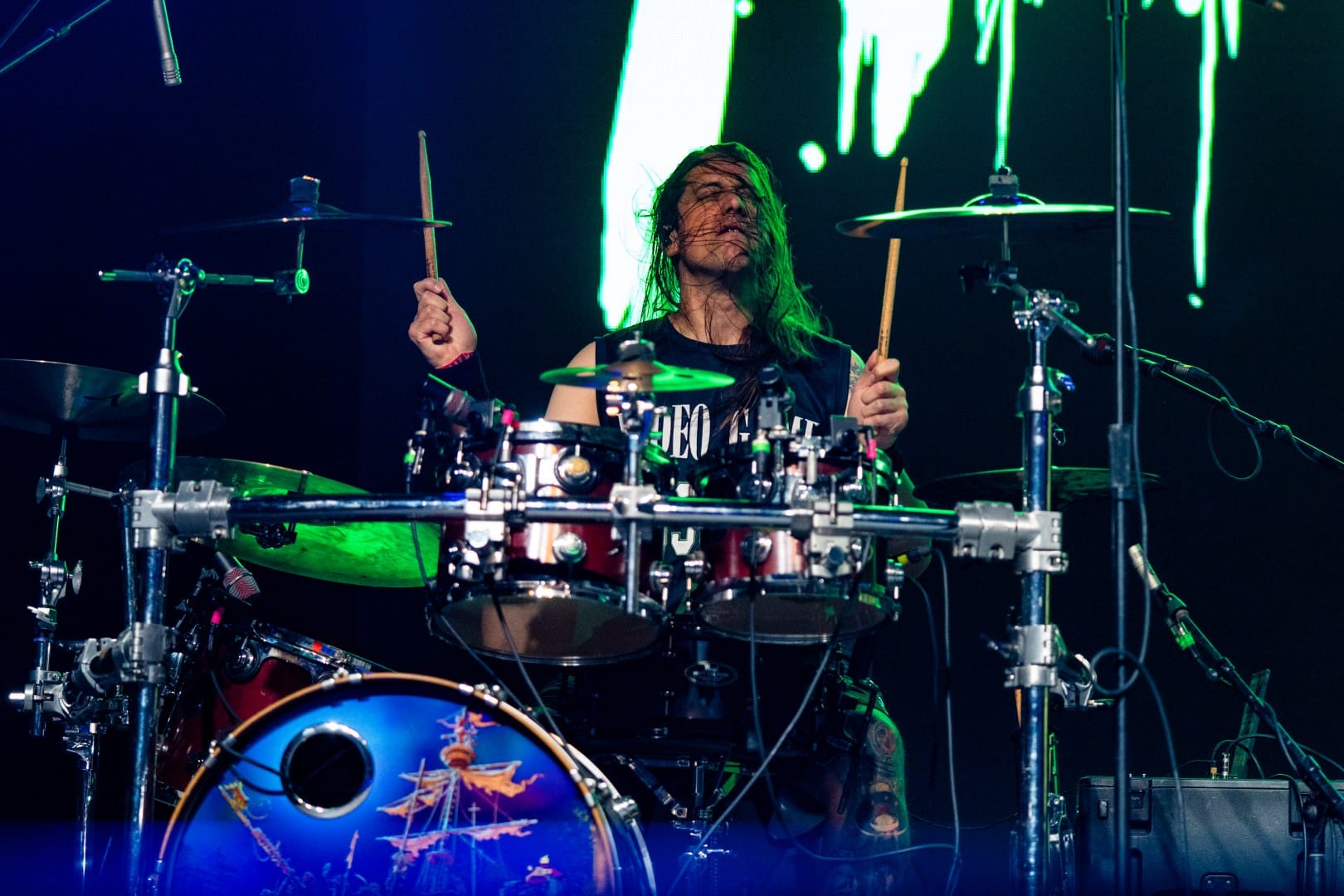 The show barely felt like a live performance, with even the fastest, wildest of Dethklok songs being performed flawlessly by Small and his bandmates in total darkness, while epic animated music videos were shown on the giant screen behind them. Opening with the show’s theme song, aptly titled “Deththeme,” the circle pit grew to a massive size immediately as they transitioned into “Awaken” and “Bloodrocuted.” Keeping up the mystique of the show, Small never spoke as himself, only doing the voices of the multiple characters that he voiced on the show. At one point, he even had conversations with himself, switching between characters, which was honestly one of the most impressive parts of the night outside of the blistering guitar and vocal parts he handled.