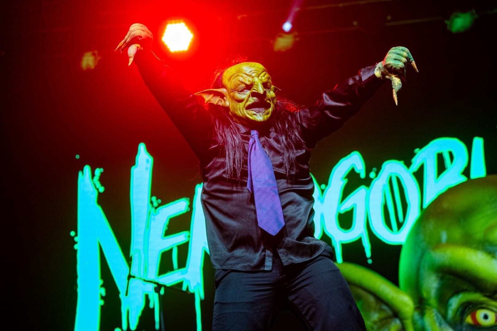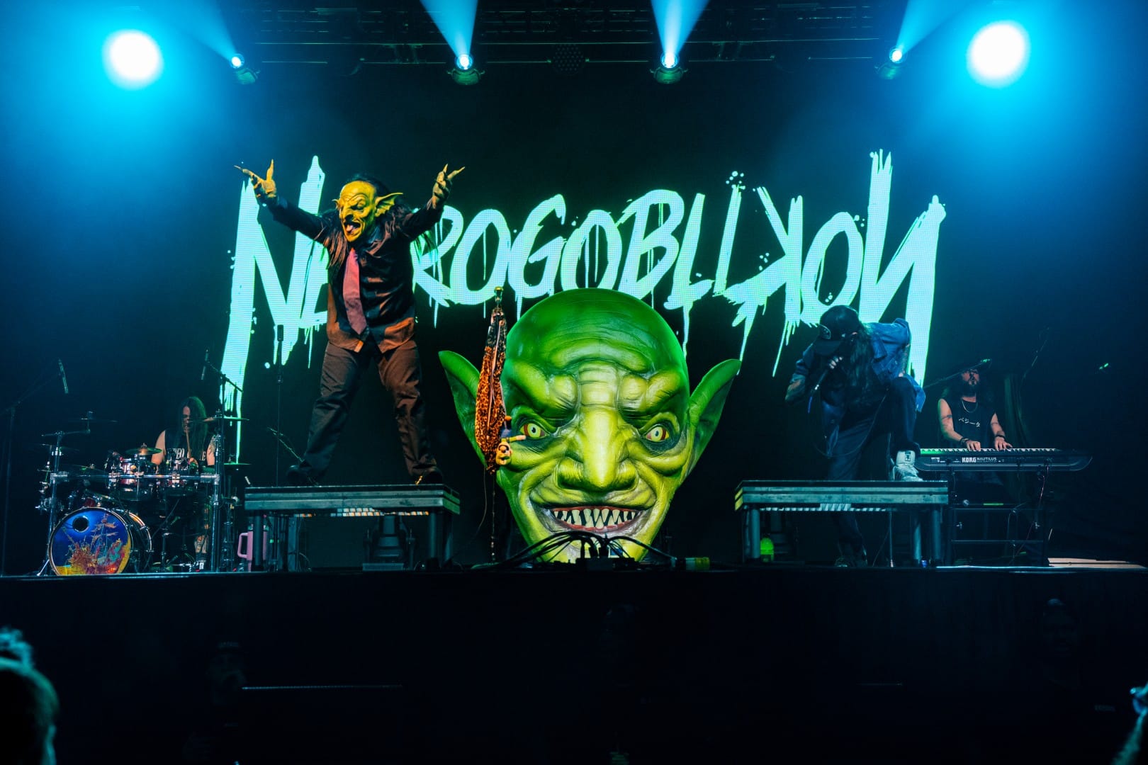 Goblin metal took over the stage for the second opening act of the night, with the heavy and hilarious Nekrogoblikon. Opening with “Show Me Your Goblin” from their newest EP “The Boiling Sea,” the group immediately shot into high gear, following it up with “The Many Faces of Herbert Malbec” and “Darkness.” “The Boiling Sea” is the first album featuring John Goblikon on clean vocals and Infant Annihilator’s Dickie Allen on screams, and it saw plenty of love on this set. Keyboardist “Raptor” also provided clean backing vocals on many of the choruses, which was a great addition.