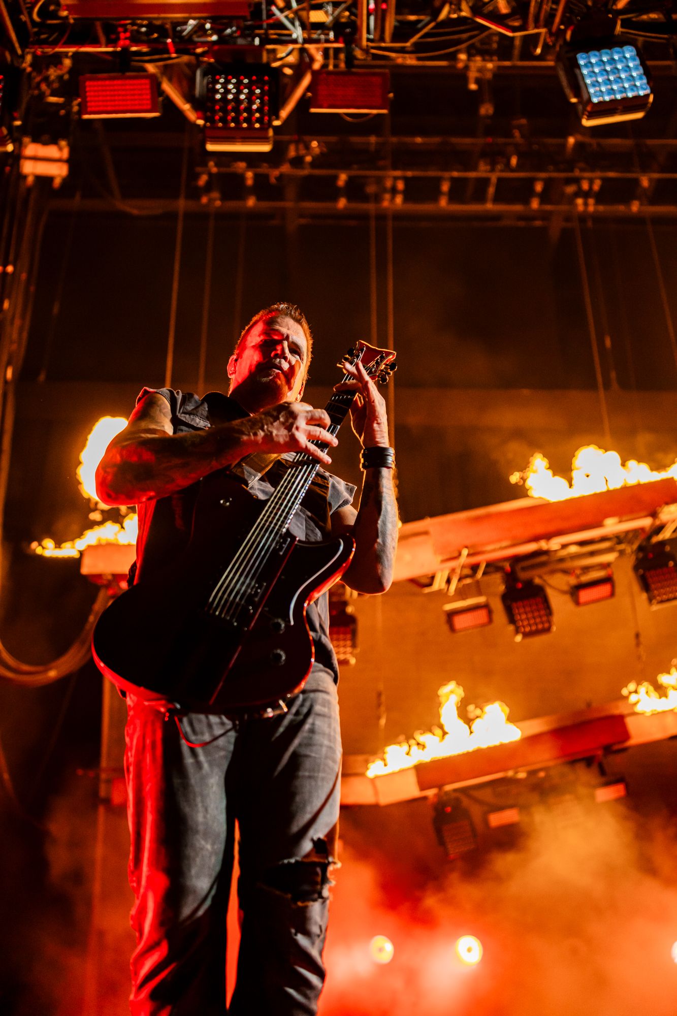 But just because Disturbed isn't afraid to show a softer side doesn't mean they can't still rattle a venue down to the studs. Steamrolling their way through a 17 song set spanning their entire career (with obligatory bass, guitar, and drum solos mixed in as is metal concert tradition), the band threatened to demolish Credit Union 1 right on the spot. And that's not a clever way to talk about how hard they rocked. I mean they did, but by the time they played 'Inside The Fire' to close out their encore, it seemed they were taking the song title literally as almost every part of the stage was literally on fire.