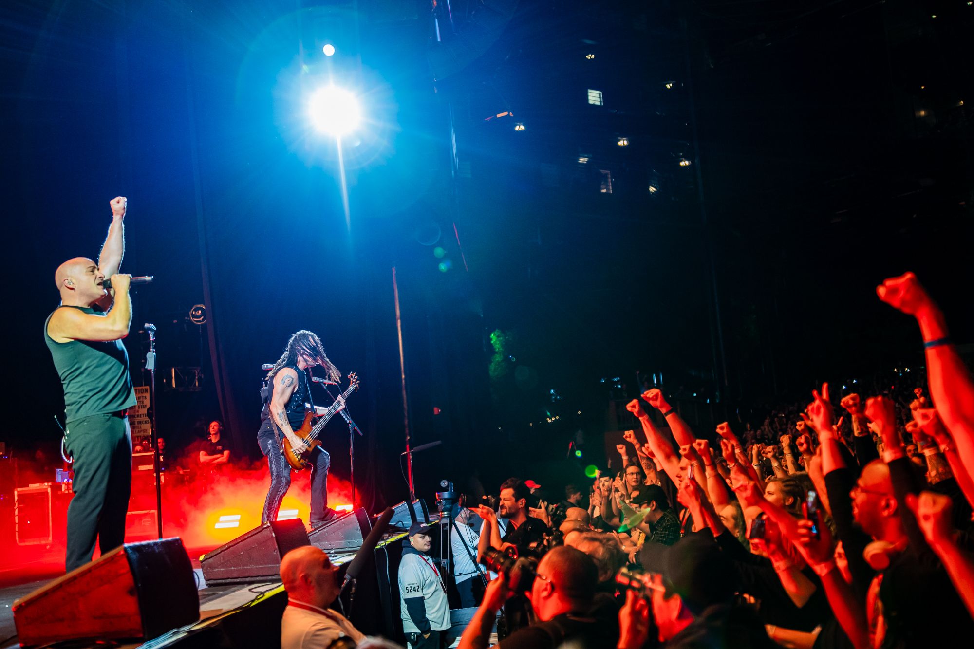 But that kind of earnestness isn't just an advantage when it comes to asking the crowd to shove more fists into the air than dollars I have in my bank account. Distrurbed have never been afraid to flip to the other side of the coin and show their vulnerability. On full display during stripped down acoustic songs like 'A Reason To Fight' (the band's ode to overcoming mental health struggles) and their smash hit cover of 'The Sound of Silence', the band's openness to expressing their feelings and spirituality is something I've always admired about them. In the late 90's and early 2000's, even a whiff of religion could get you slapped with the commercially dreaded 'CHRISTIAN ROCK' label, which dogged all kinds of bands from that era from Creed to Evanescence. It's also this kind of honesty and openness that have turned once chaotic mosh pits into family friendly affairs, as multiple kids 14 and under could be spotted throughout the general admission pit. A natural offshoot of a band having the kind of staying power Disturbed has had over the decades.