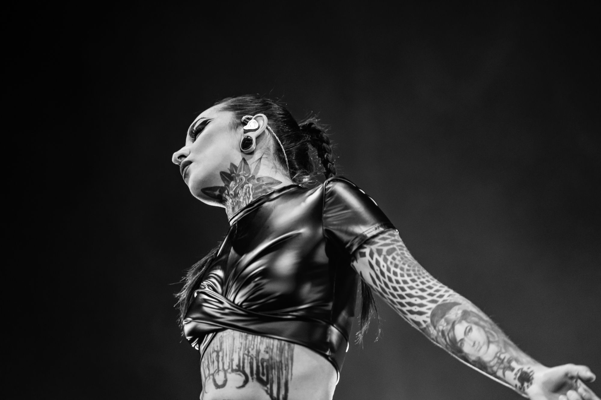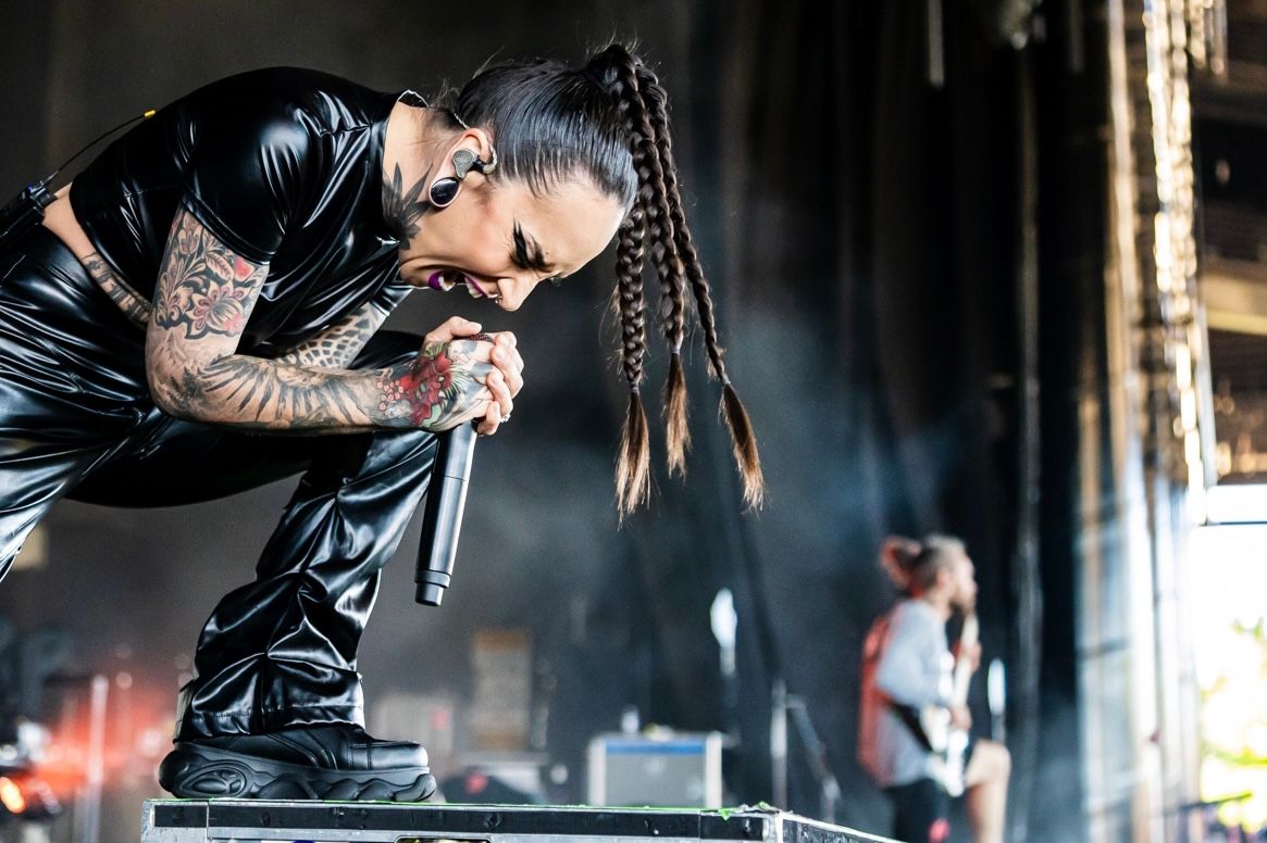 Hailing from Ukraine, metalcore outfit Jinjer kicked off the evening with an absolute punch to the face and kick in the stomach of metal sound. It's rare that a band makes you feel like you're being absolutely pummeled with their sound, but Jinjer absolutely fits the bill. Watching the band take the stage, those unfamiliar with their musical style might have been a little thrown off. Drummer Vladislav Ulasevich has the easygoing nature of the guy who lives down the street. Guitarist Roman Ibramkhalilov's bucket hat and bassist Eugene Abdukhanov's long hair and beard could have them mistaken for musicians in a jam band. Only when singer Tetiana Shmailyuk takes the stage with every inch below the neck covered in either leather or tattoo do you have a hint of what's about to come.