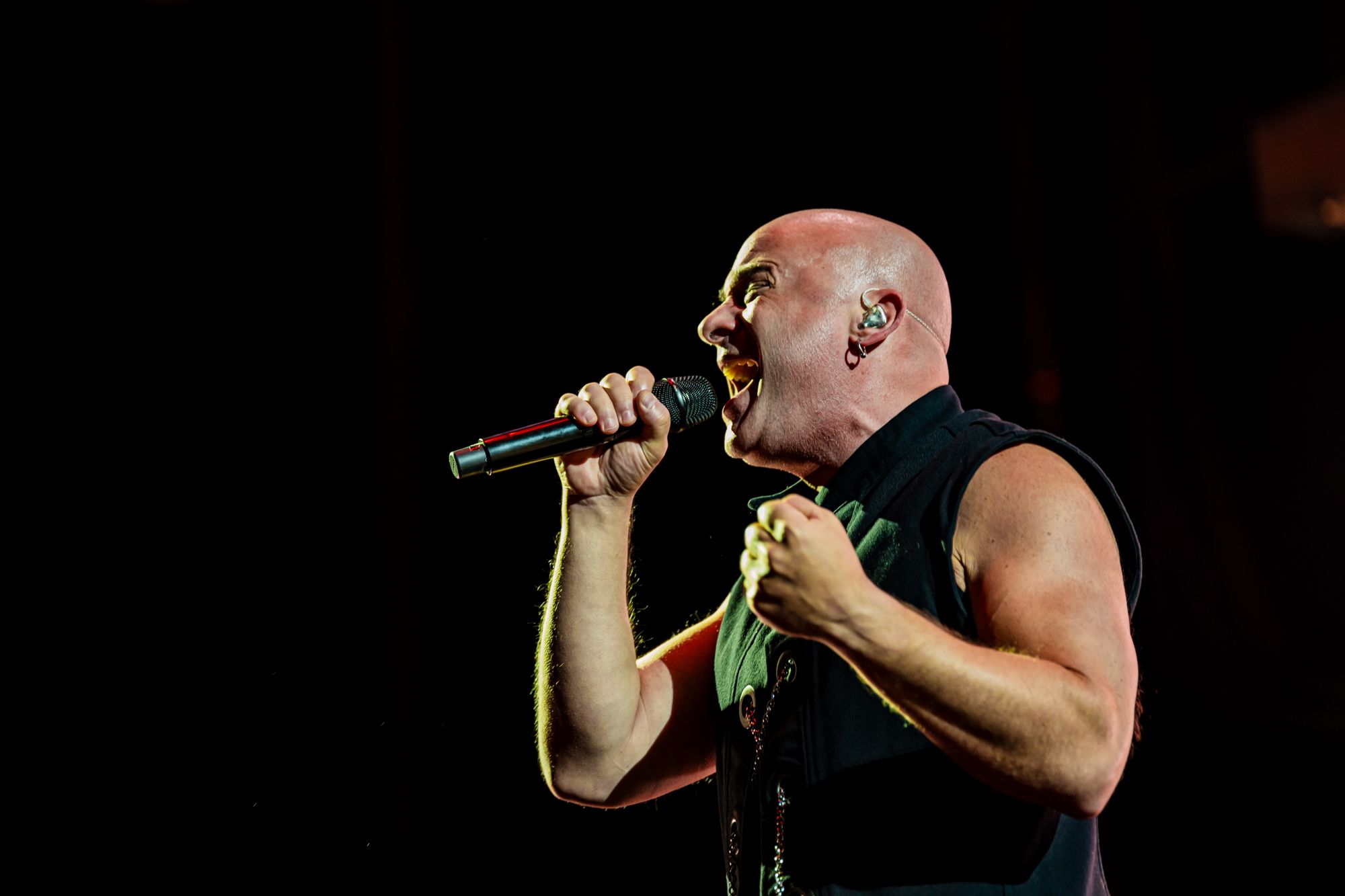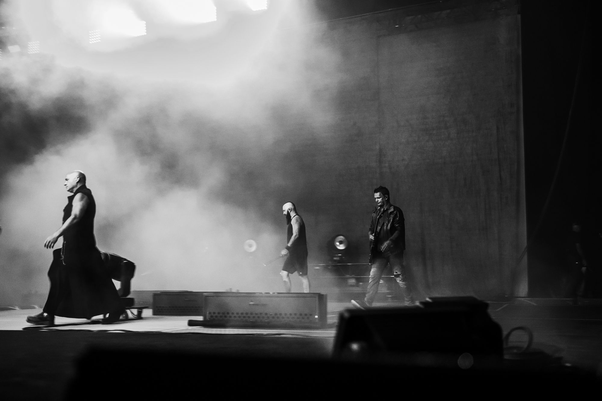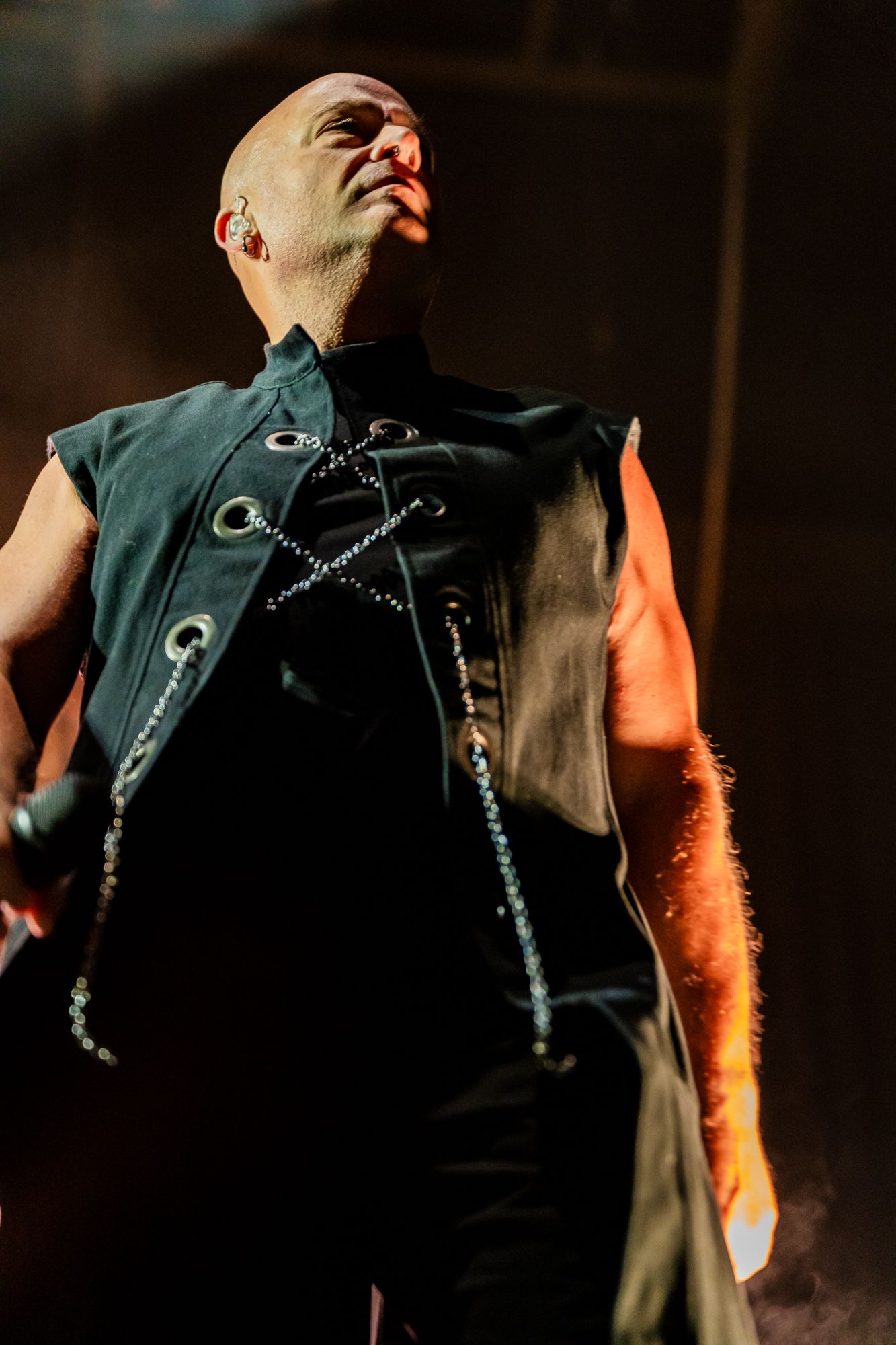 Regardless, it was great to see him and the rest of the band (guitarist Dan Donegan, drummer Mike Wengren, and bassist John Moyer) as they took the stage blaring 'Hey You', the lead song off last year's Divisive. Prowling a stage that was constantly in various states of 'on fire' ranging from 'wow, that's a lot of fire' to 'holy shit, the whole stage is on fire', Draiman looked and sounded just like he did on the night we became best friends, immediately tearing into back to back hits 'Stupify' and 'Ten Thousand Fists', both Donegan and Moyer jumping in the air during choruses, Father Time be damned.