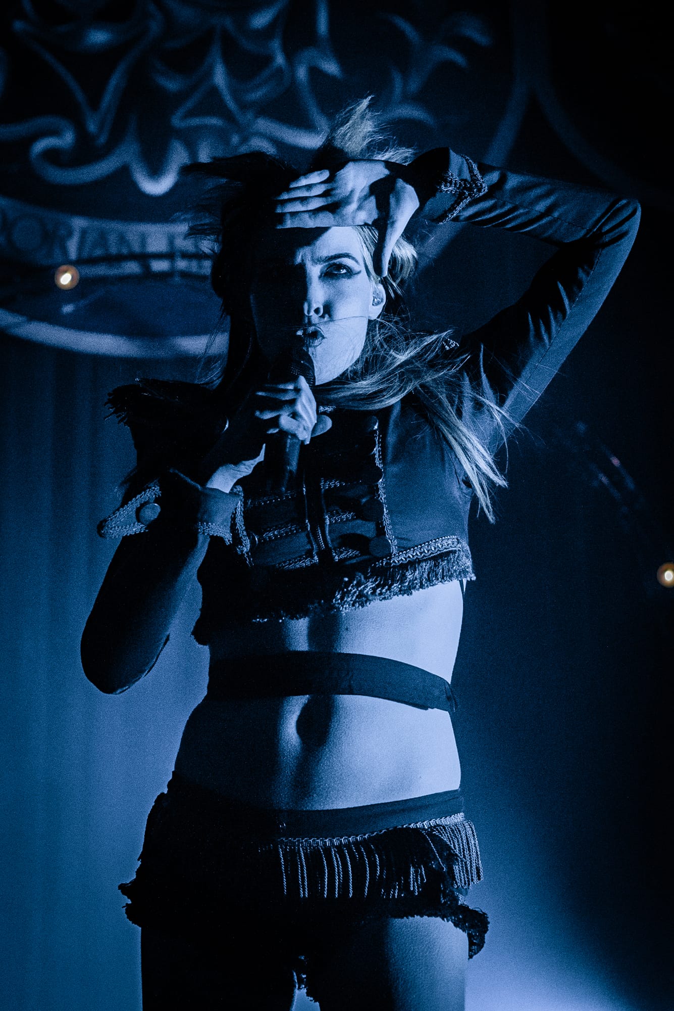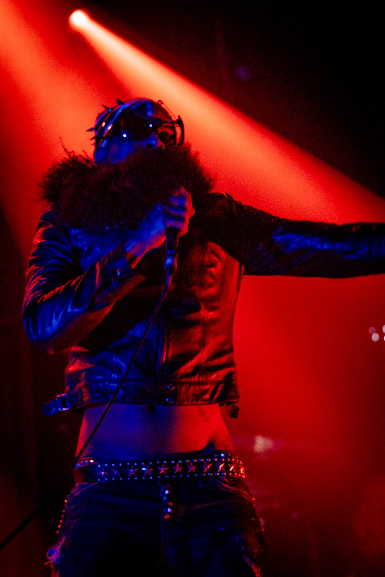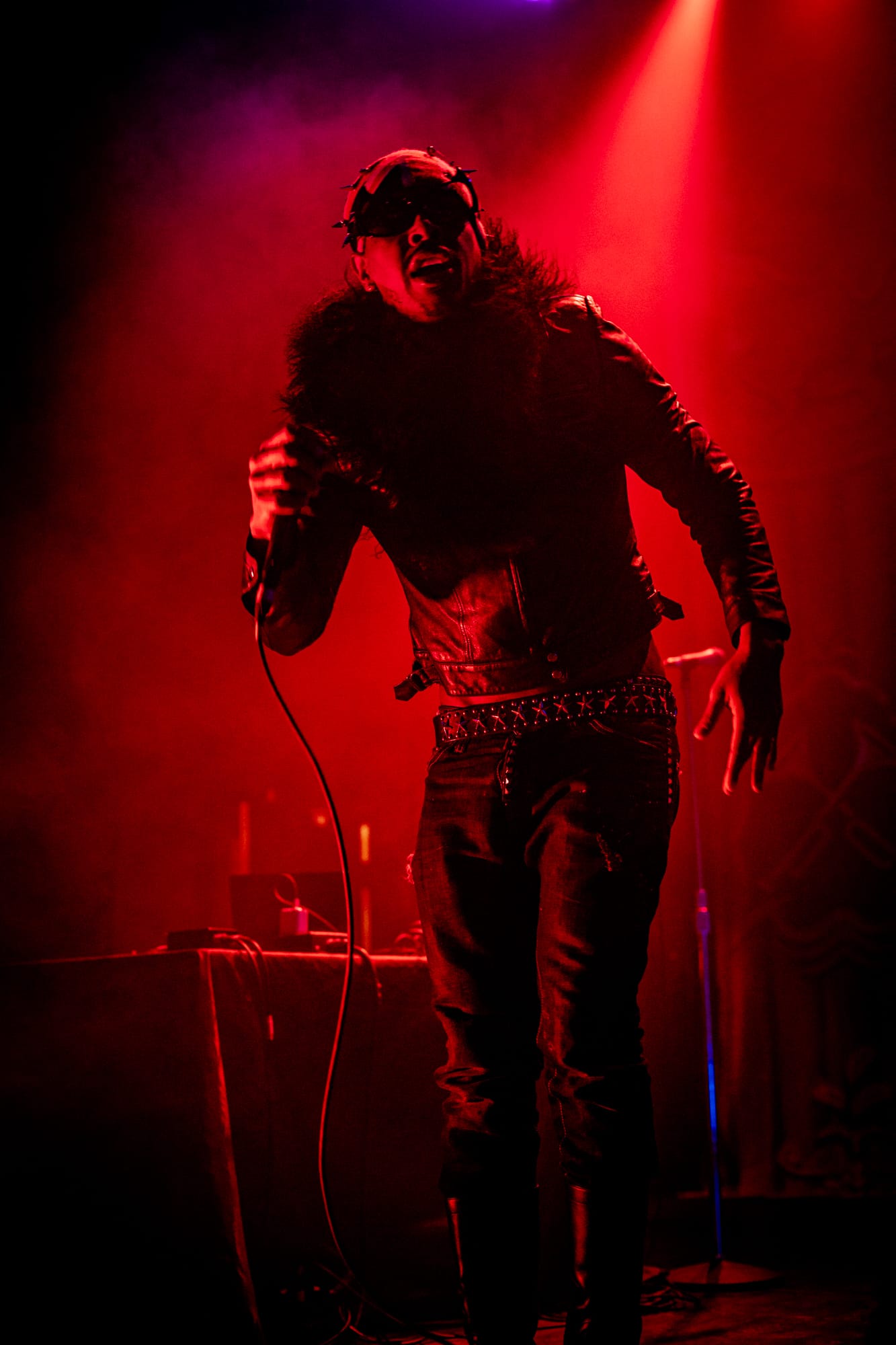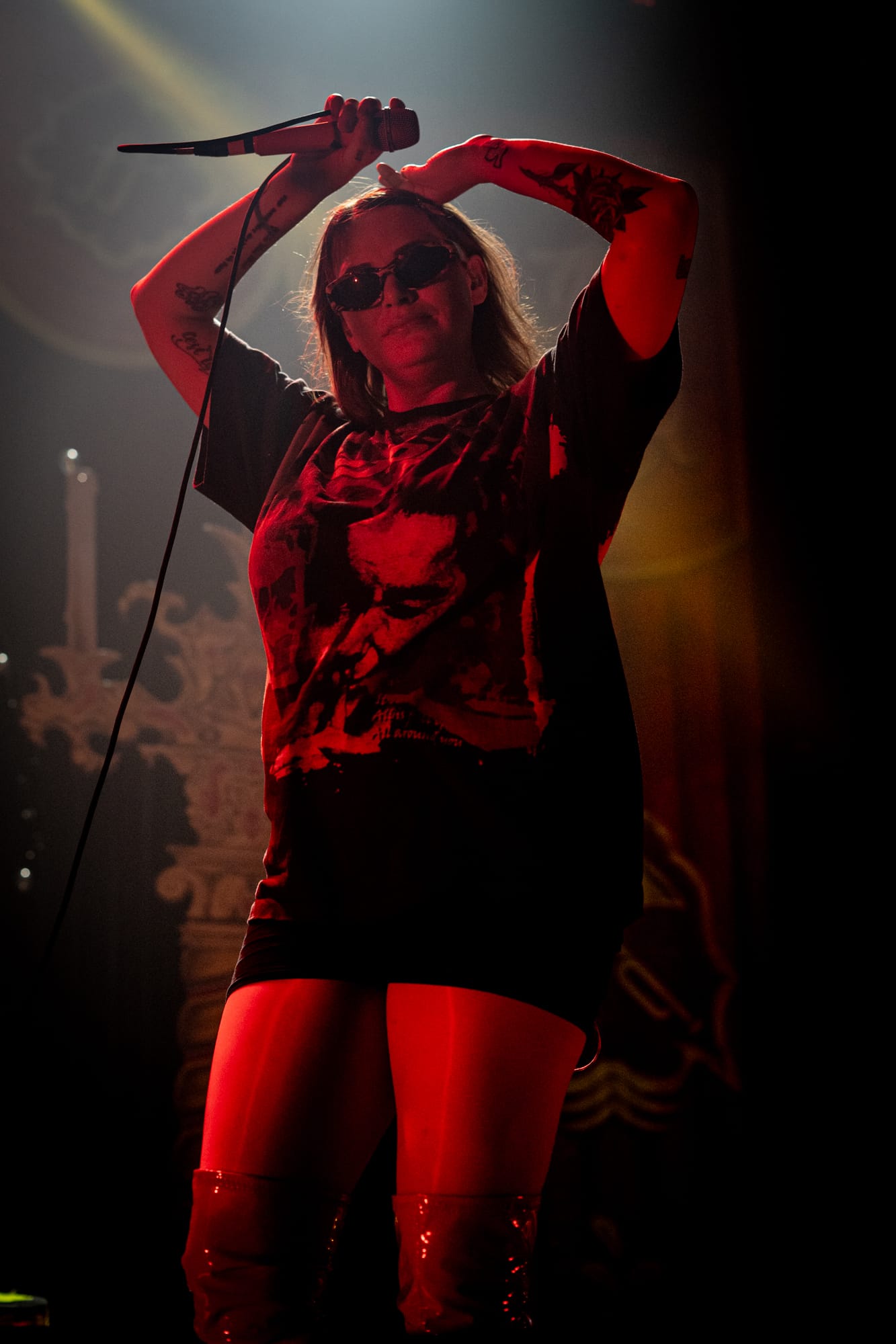 Taking to the stage first to start the evening is artist Izzy Spears. Izzy entered the stage with high energy, and a multitude of high contrast colored lighting. Their style of music seems to differ from what Dorian Electra offers, as Izzy’s has a very heavy bass, grungy feel to it. Izzy moved their way across the stage, being very involved and dedicated to their dance moves and performance. Izzy performed songs their latest album M*a*D, with tracks like “Shock Therapy”, “Serena”, and the title track, “M*a*D”. Izzy also performed other songs from their discography like “Hollywood Meltdown”, and “FREAKS”. To close out their set Izzy performed their track “Heaven”, getting the crowd warmed up by getting them to chant the lyrics “eight, nine, ten, eleven, let’s all go to heaven”, back to them.