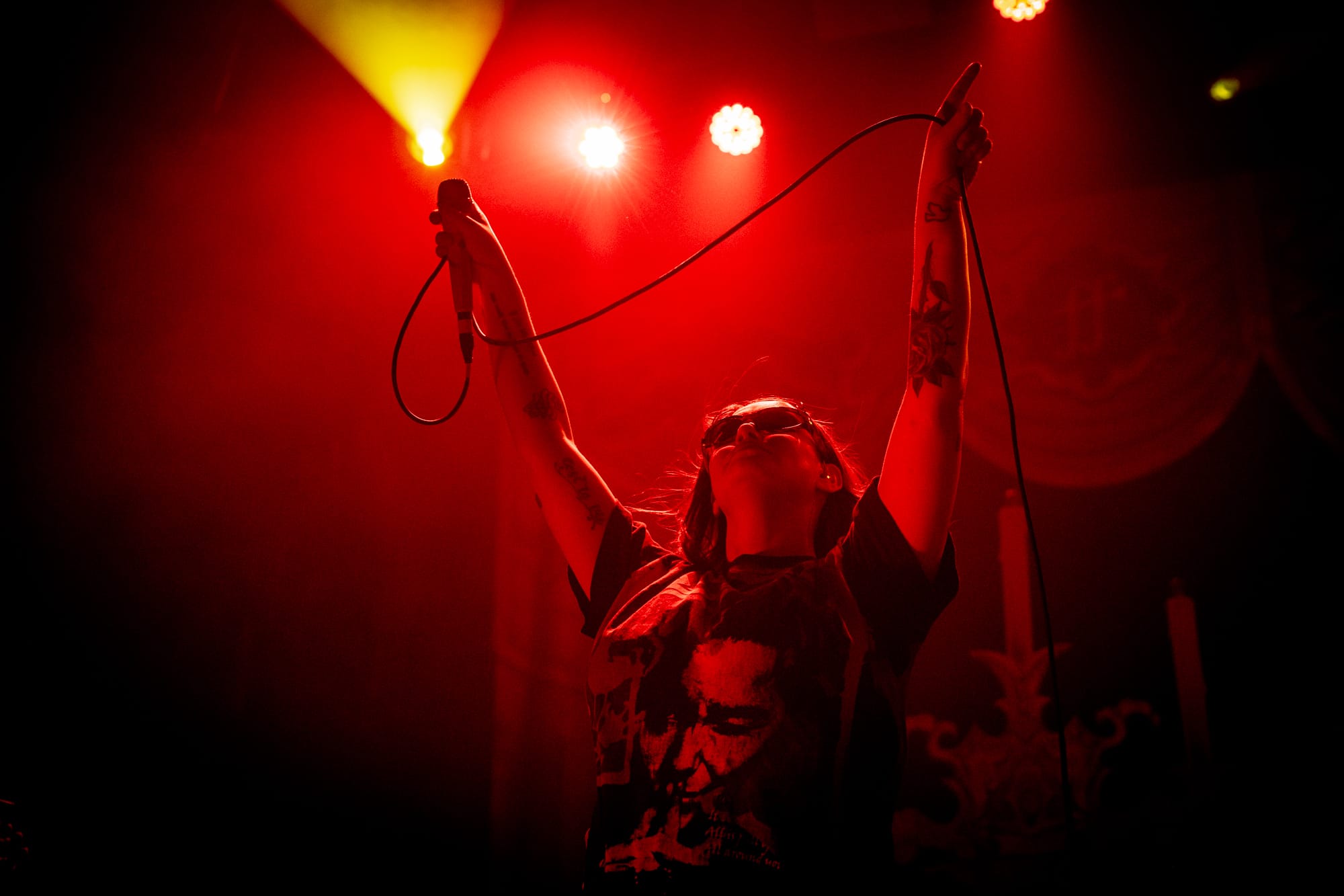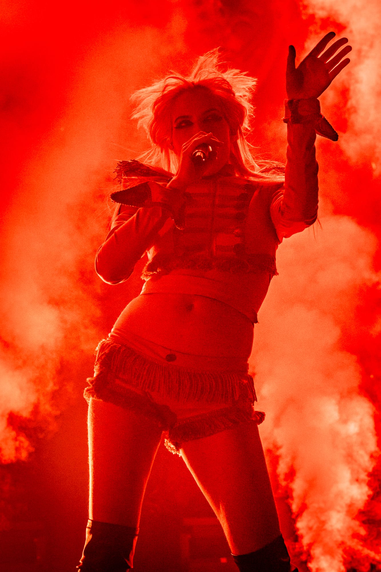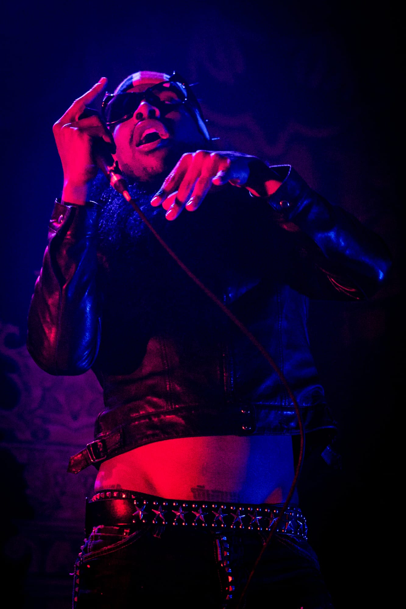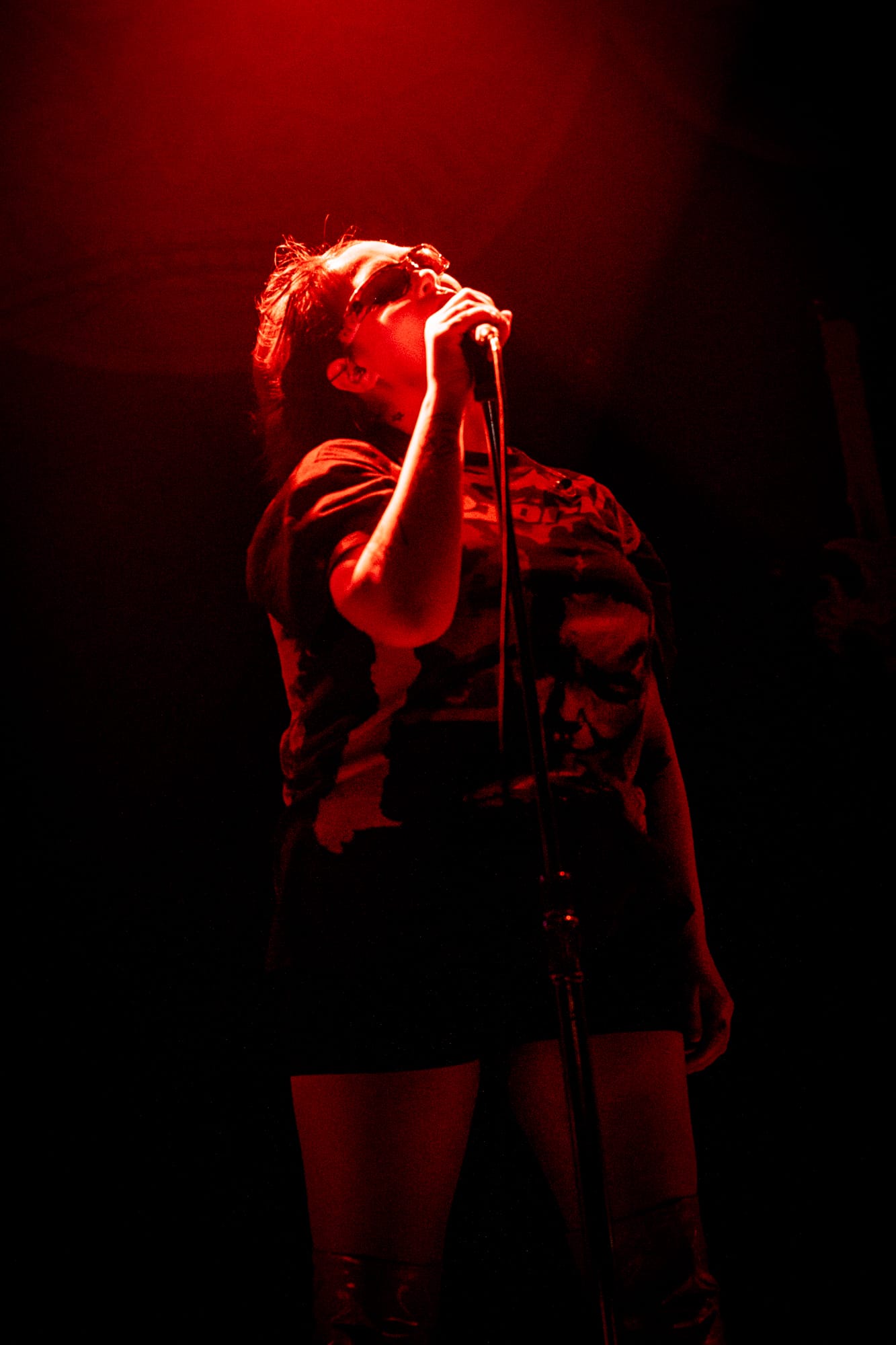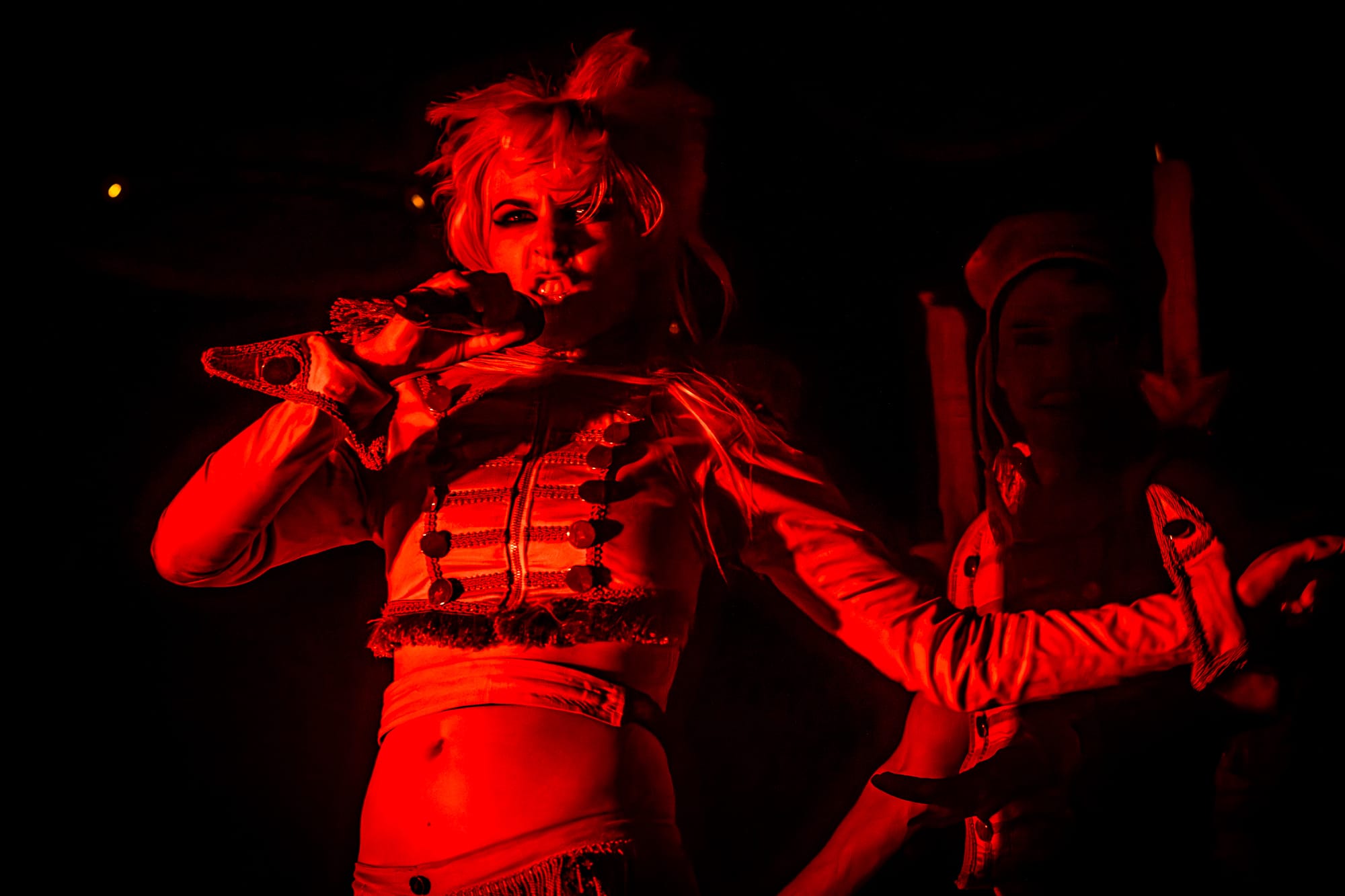 Taking to the stage first to start the evening is artist Izzy Spears. Izzy entered the stage with high energy, and a multitude of high contrast colored lighting. Their style of music seems to differ from what Dorian Electra offers, as Izzy’s has a very heavy bass, grungy feel to it. Izzy moved their way across the stage, being very involved and dedicated to their dance moves and performance. Izzy performed songs their latest album M*a*D, with tracks like “Shock Therapy”, “Serena”, and the title track, “M*a*D”. Izzy also performed other songs from their discography like “Hollywood Meltdown”, and “FREAKS”. To close out their set Izzy performed their track “Heaven”, getting the crowd warmed up by getting them to chant the lyrics “eight, nine, ten, eleven, let’s all go to heaven”, back to them.
