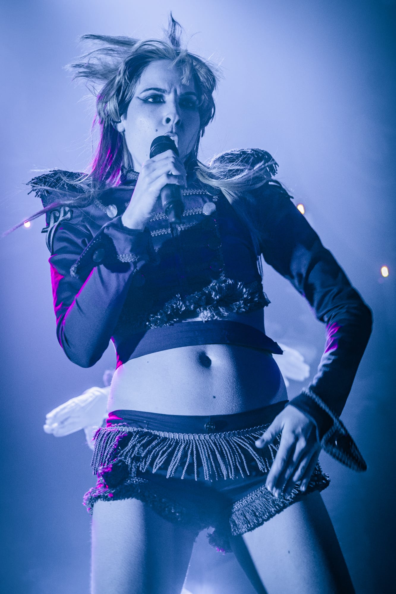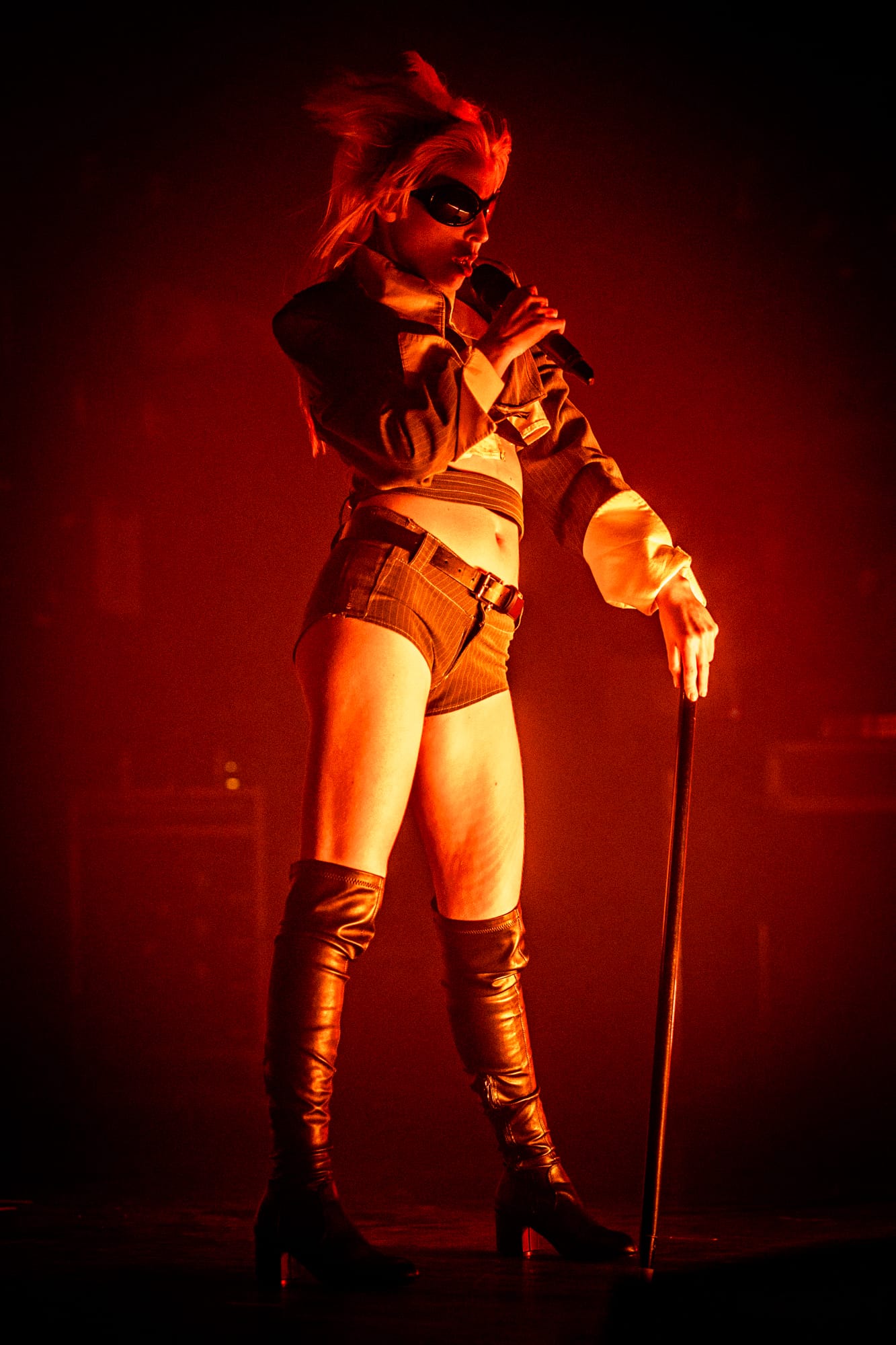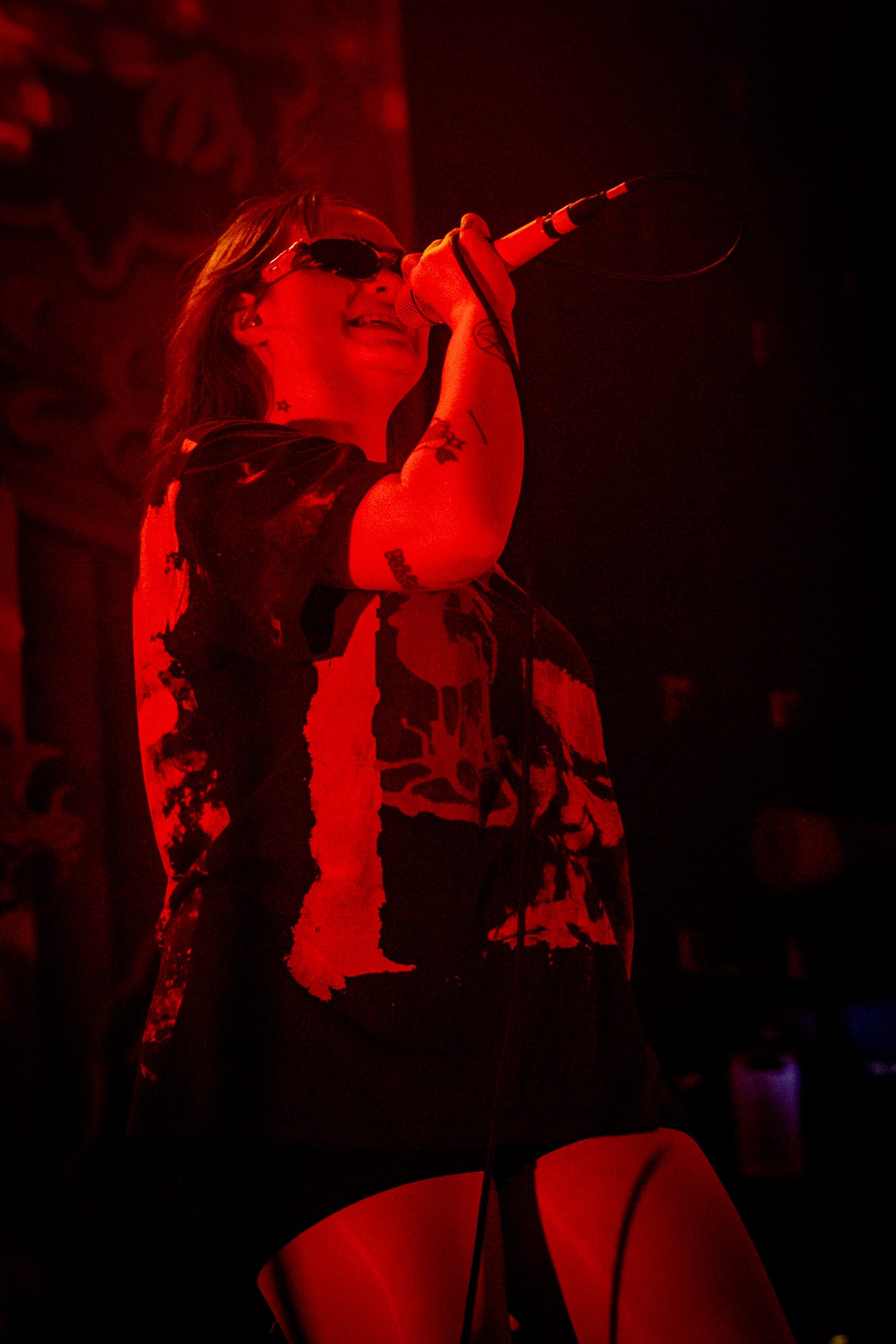 Up next on the bill for the evening is artist Uffie. Coming out on stage, Uffie wore an oversized band t-shirt with thigh-high bright red stilettos. Uffie has been in the music scene since 2006, creating tracks that are pop, hyper-pop, and rap mixed into one. Uffie is said to have been inspirations to artists like Kesha, Charli XCX, Sophie and Doja Cat, who expanded on her musical style. Uffie’s performance used a mixture of fast changing colorful lights, and rave style flashes. Songs Uffie performed were “Anna Jetson”, “No Take Me Backs”, and her 2006 hit, “Pop the Glock”.