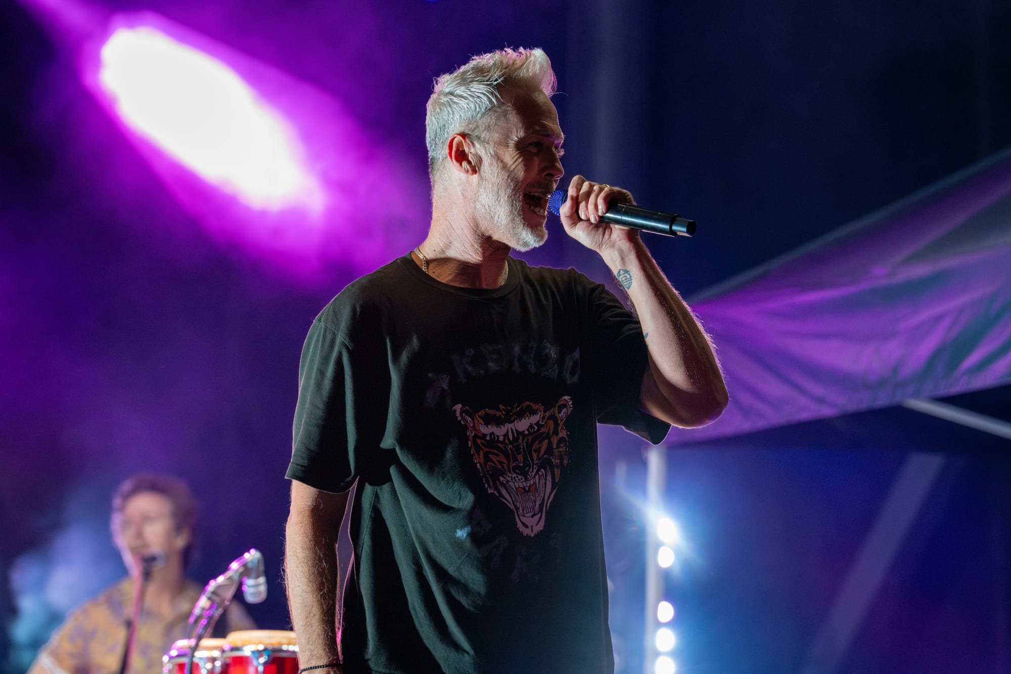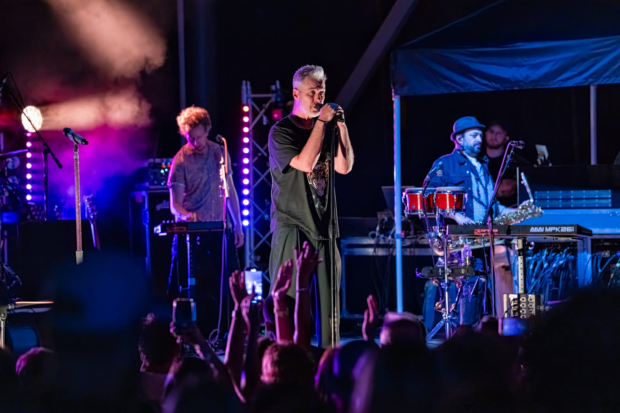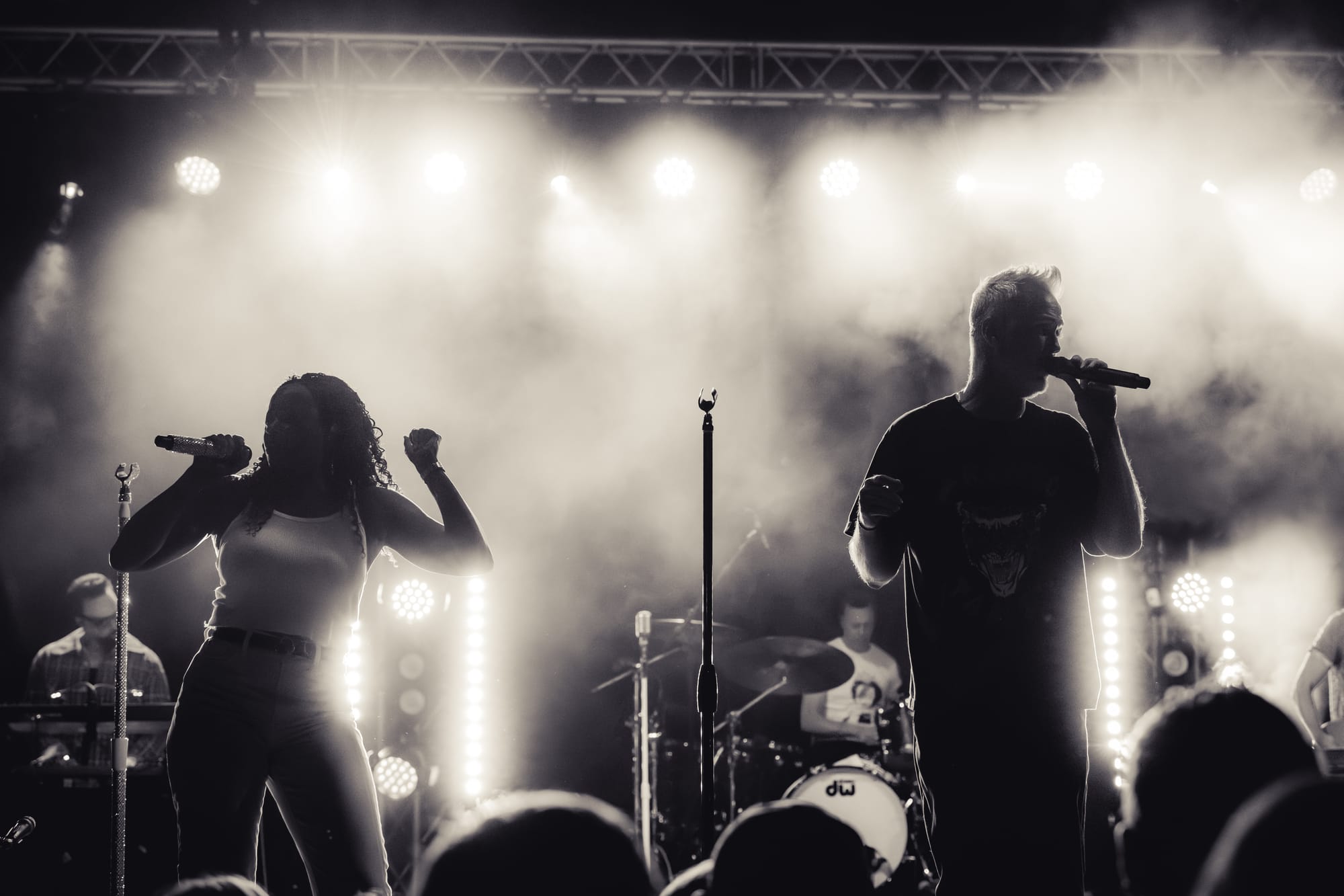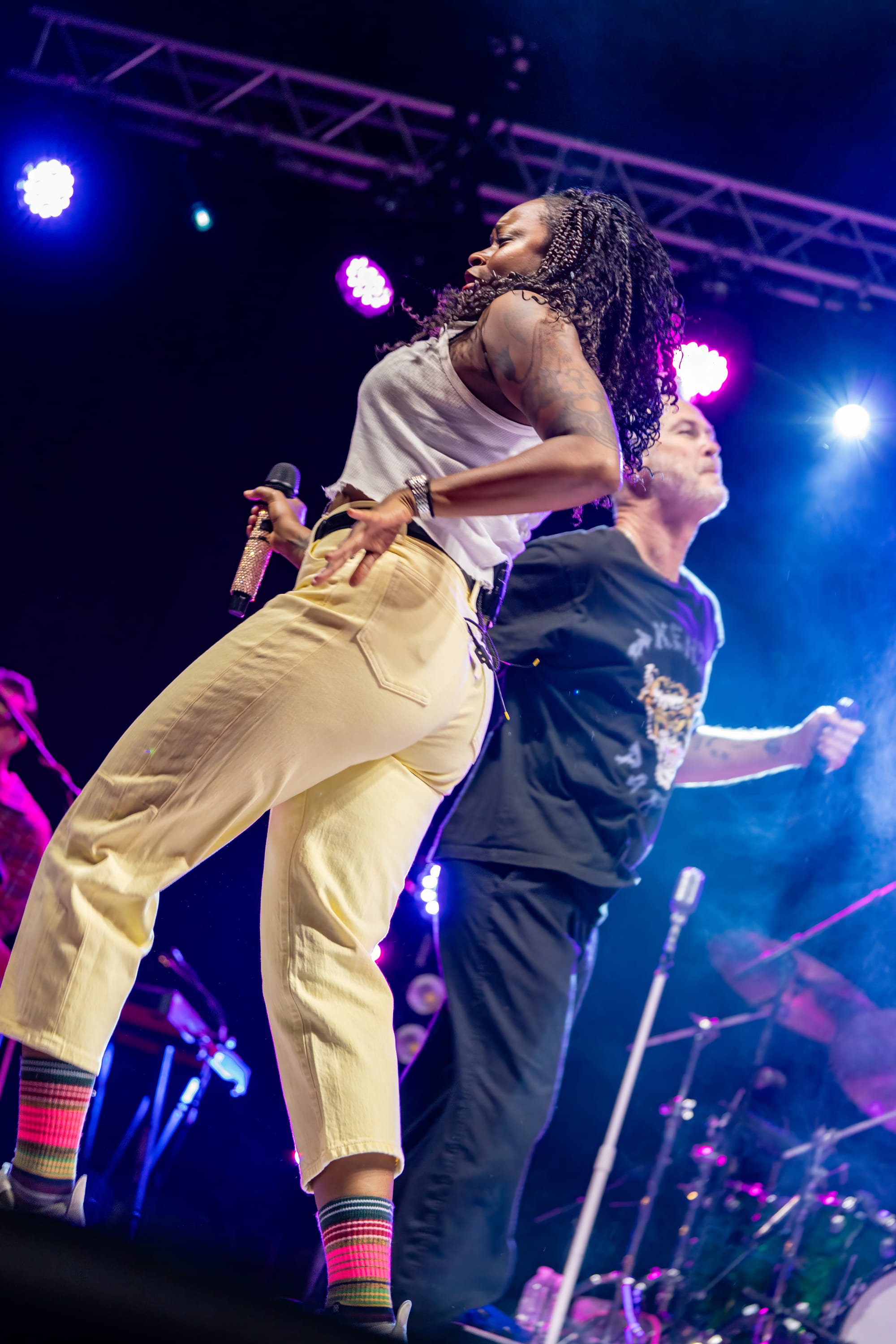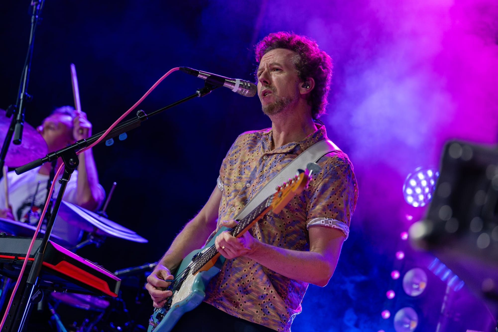 Fitz and the Tantrums took the stage, and the crowd went nuts. Co-lead vocalists Michael Fitzpatrick and Noelle Scaggs thanked the crowd for sticking it out and launched right into “Sway,” a feel-good pop bop from their 2022 album Let Yourself Free that immediately had the crowd dancing and singing. What's great about Fitz and the Tantrums is that their music is infectious but also incredibly adaptable. Versatile enough to be played to pump up crowds at sports stadiums, or to be played at kids' birthday parties to make kids dance off their sugar high. Their music is approachable and unoffensive, and that's great. There were plenty of families there to take in the tunes. It was fun for kids to dance along with their parents to songs like “123456” from All the Feels. Fitz and the Tantrums create an atmosphere where everyone can have fun. No time was this more apparent than when they began to play “Out of My League” from More Than Just a Dream. Hips were shaking, hair was swaying, and the lyrics were passionately belted out into the night sky. People had forgotten that there had even been rain at any point in the night, carelessly dancing in puddles and having a good time. I didn't think the positive vibe could grow any bigger, but I was proven wrong when Fitz began to play “Living for the Weekend.” It was like a full-blown hockey stadium level of excitement for that song! It being a Friday night only amplified the energy, and you could feel it as the crowd sang the choruses. Noelle asked the crowd if it would be ok for them to play a new song and introduced the crowd to the next track, “Man on the Moon”, their latest single. A vibrant, and of course, upbeat pop track that highlighted the group's signature blend of funk and disco. The lyrics, however, seemed a bit more melancholy than most Fitz tracks. It was different but in a great way. Fitz and the Tantrums continued through their setlist full of hits from “ Fool” off their hit Self-Titled album to “ The Walker” and deep cuts in between like “Moneygrabber” from their debut album Pickin’ Up the Pieces. If you closed your eyes long enough, their music almost transported you to a different time filled with dance TV shows like Soul Train or American Bandstand. Their sound is undeniably retro in the best way. James King’s saxophone melodies and John Wicks' big band style drum fills highlight the effect 10-fold. They get that massive big band sound of yesteryear. The crowd stood steadfast after the band had cleared the stage after the “The Walker”. Chanting encore, whistling, and clapping their hands raw. The stage remained dark. The band seemed to relish in that a bit as they took a few minutes to return, but when they did, it was an epic finale.