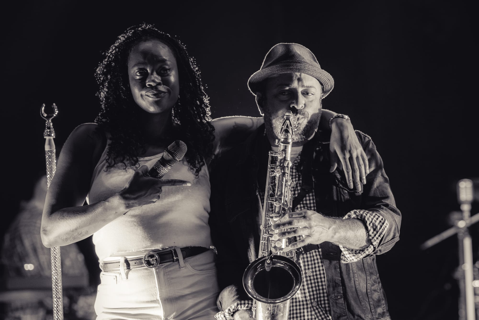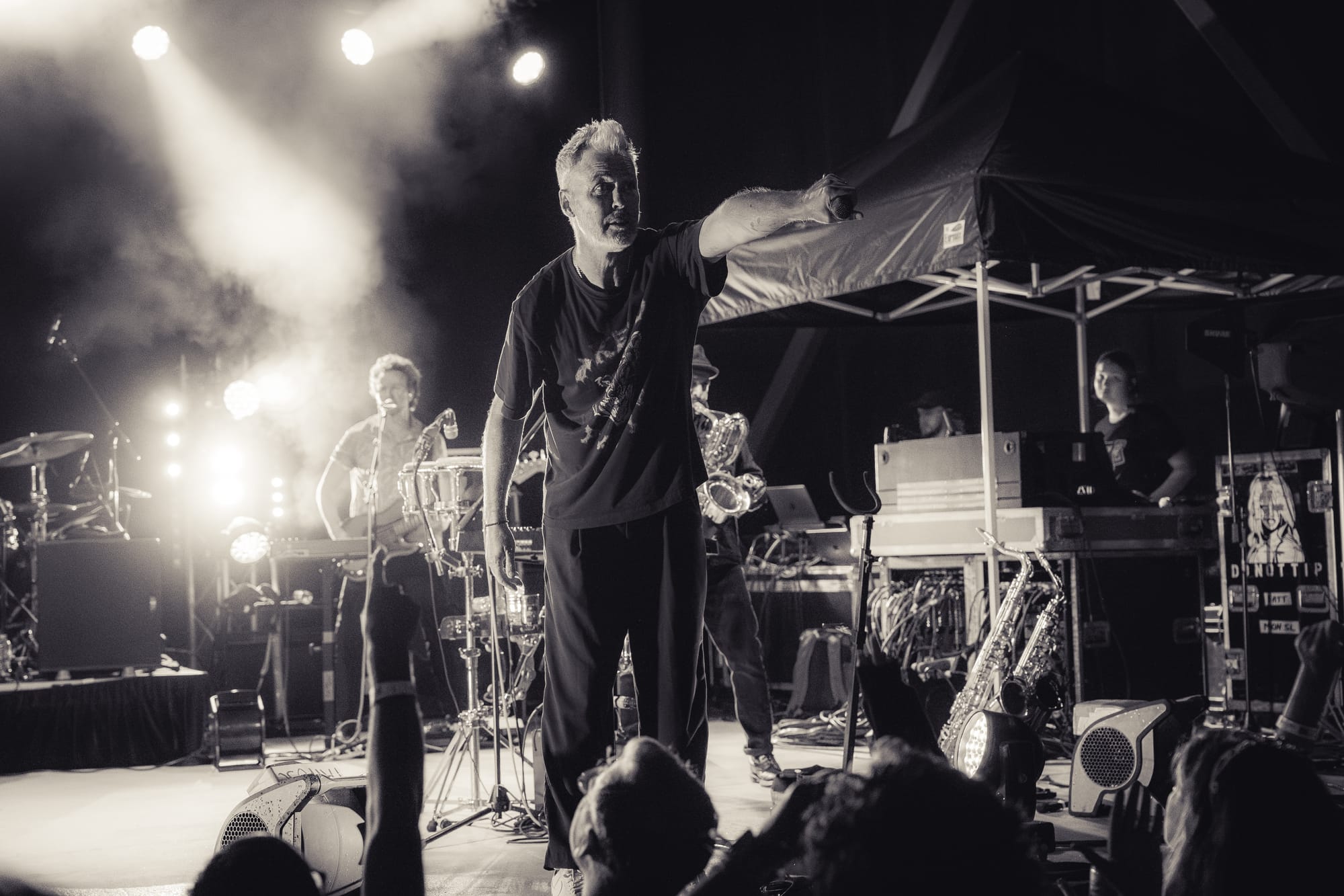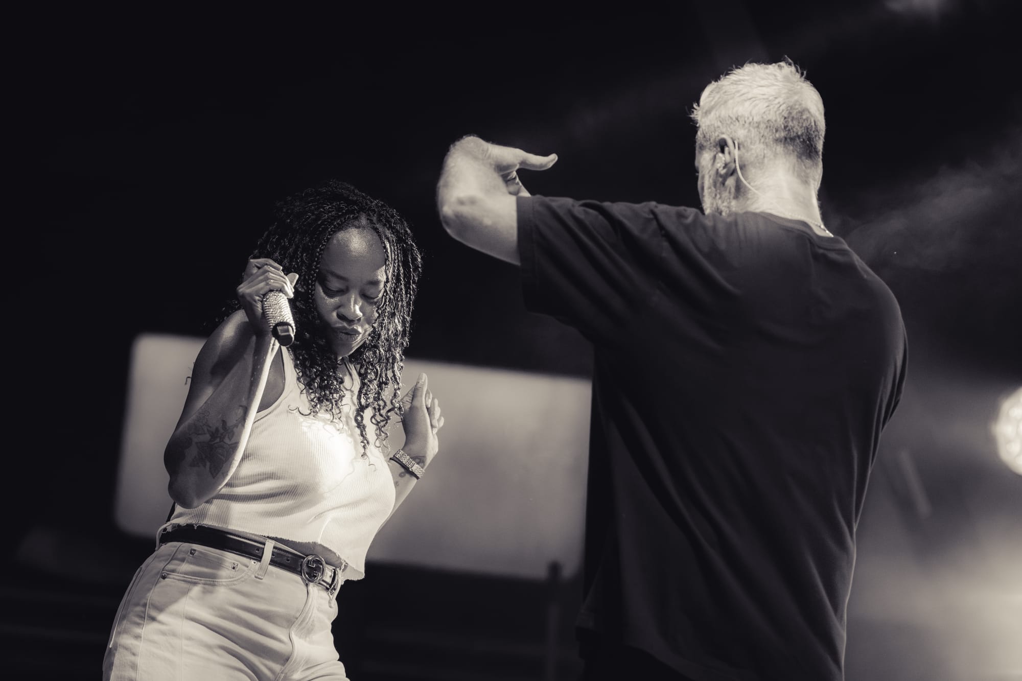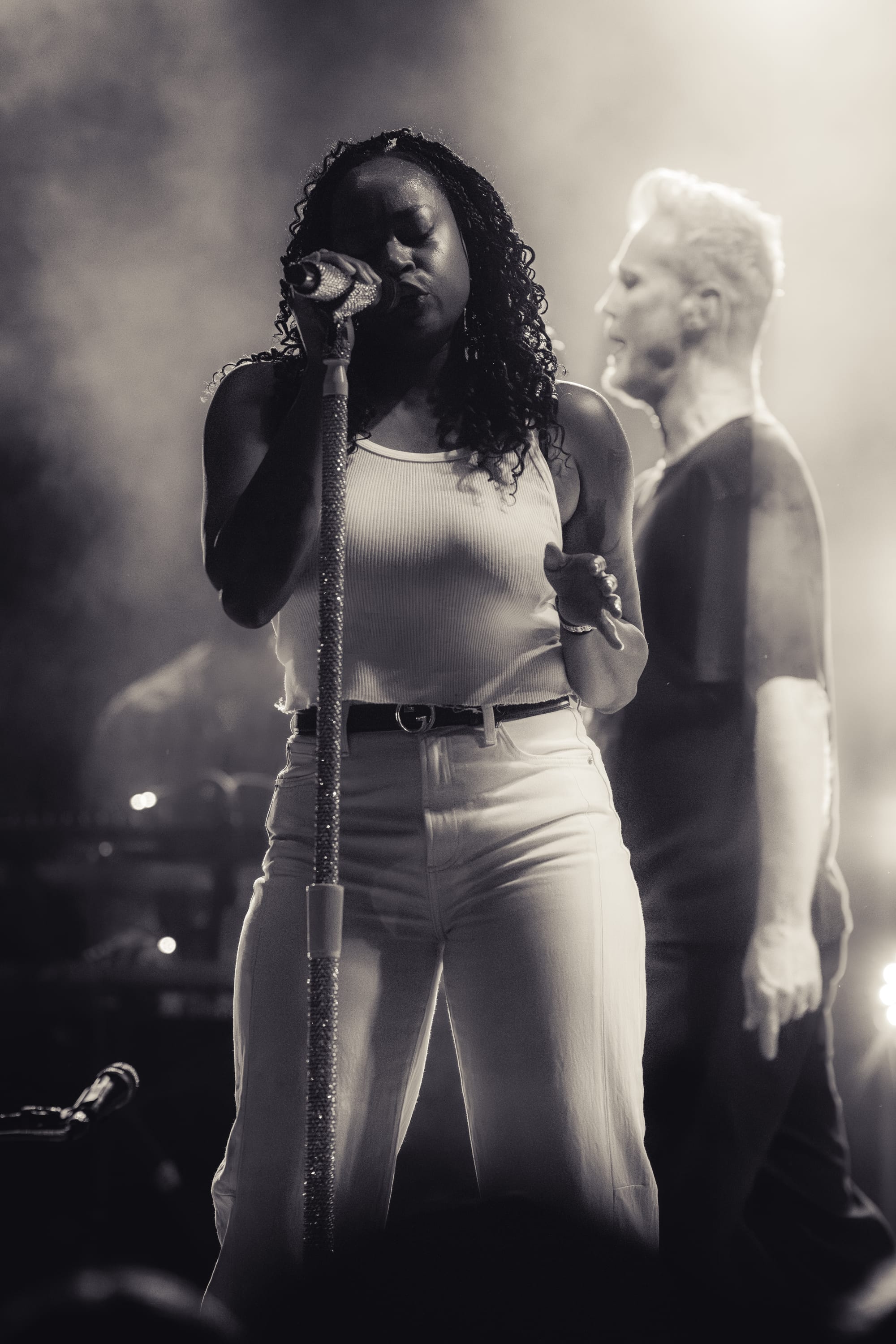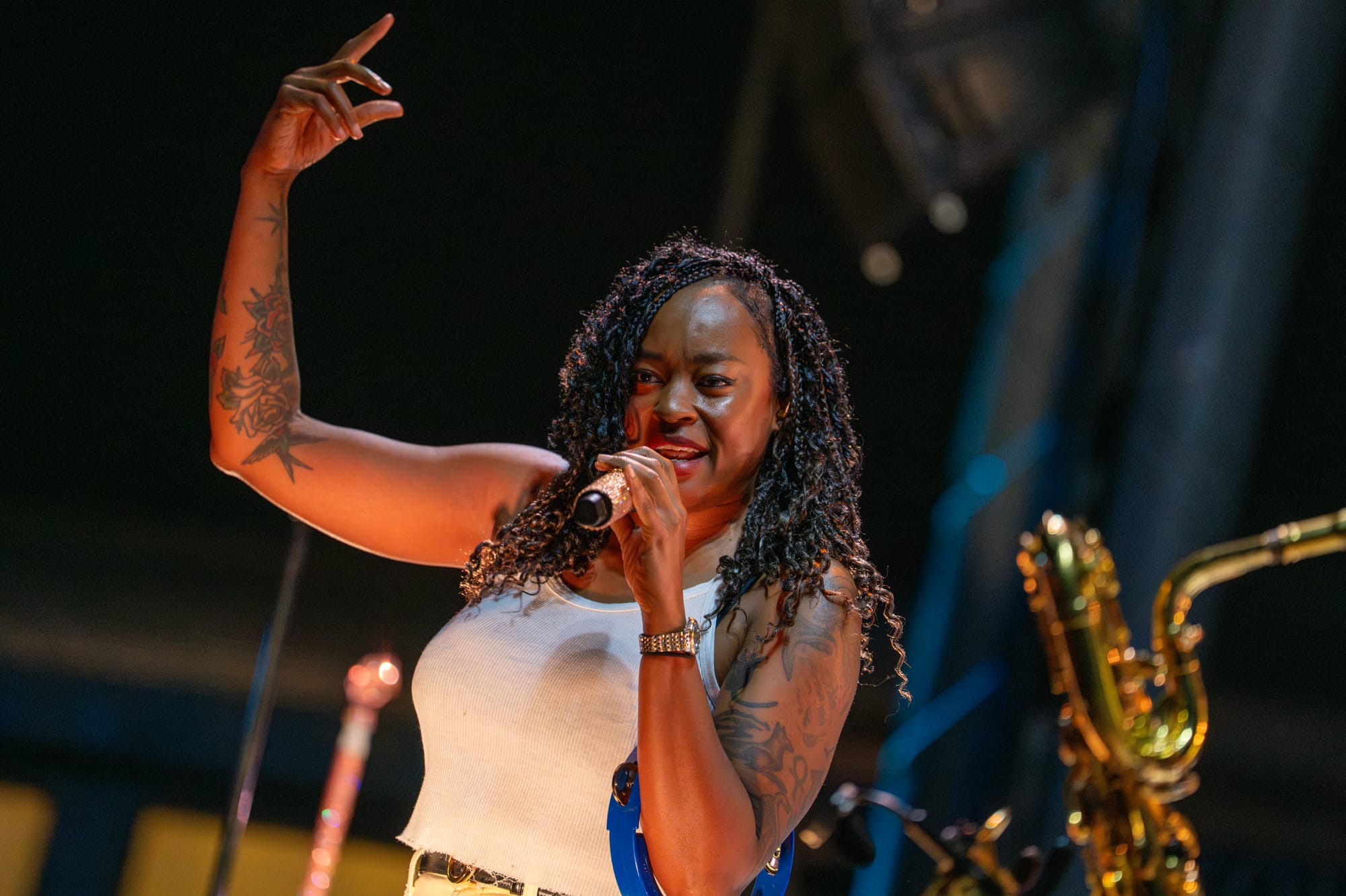 Fitz and the Tantrums took the stage, and the crowd went nuts. Co-lead vocalists Michael Fitzpatrick and Noelle Scaggs thanked the crowd for sticking it out and launched right into “Sway,” a feel-good pop bop from their 2022 album Let Yourself Free that immediately had the crowd dancing and singing. What's great about Fitz and the Tantrums is that their music is infectious but also incredibly adaptable. Versatile enough to be played to pump up crowds at sports stadiums, or to be played at kids' birthday parties to make kids dance off their sugar high. Their music is approachable and unoffensive, and that's great. There were plenty of families there to take in the tunes. It was fun for kids to dance along with their parents to songs like “123456” from All the Feels. Fitz and the Tantrums create an atmosphere where everyone can have fun. No time was this more apparent than when they began to play “Out of My League” from More Than Just a Dream. Hips were shaking, hair was swaying, and the lyrics were passionately belted out into the night sky. People had forgotten that there had even been rain at any point in the night, carelessly dancing in puddles and having a good time. I didn't think the positive vibe could grow any bigger, but I was proven wrong when Fitz began to play “Living for the Weekend.” It was like a full-blown hockey stadium level of excitement for that song! It being a Friday night only amplified the energy, and you could feel it as the crowd sang the choruses. Noelle asked the crowd if it would be ok for them to play a new song and introduced the crowd to the next track, “Man on the Moon”, their latest single. A vibrant, and of course, upbeat pop track that highlighted the group's signature blend of funk and disco. The lyrics, however, seemed a bit more melancholy than most Fitz tracks. It was different but in a great way. Fitz and the Tantrums continued through their setlist full of hits from “ Fool” off their hit Self-Titled album to “ The Walker” and deep cuts in between like “Moneygrabber” from their debut album Pickin’ Up the Pieces. If you closed your eyes long enough, their music almost transported you to a different time filled with dance TV shows like Soul Train or American Bandstand. Their sound is undeniably retro in the best way. James King’s saxophone melodies and John Wicks' big band style drum fills highlight the effect 10-fold. They get that massive big band sound of yesteryear. The crowd stood steadfast after the band had cleared the stage after the “The Walker”. Chanting encore, whistling, and clapping their hands raw. The stage remained dark. The band seemed to relish in that a bit as they took a few minutes to return, but when they did, it was an epic finale.