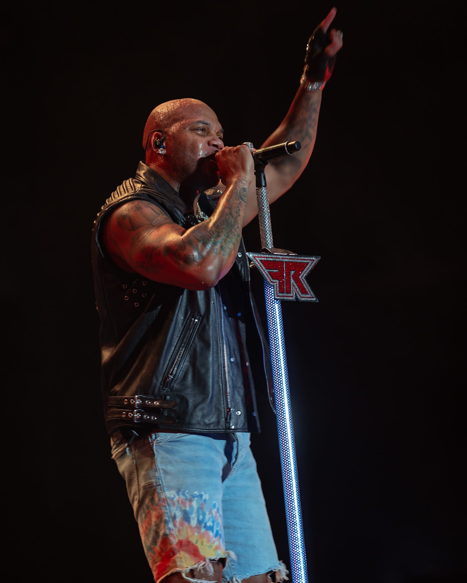 Soon after, Flo Rida and his crew burst onto the stage with a vitality that electrified the stadium. His set was an adrenaline-fueled party, each song a hit that had the crowd jumping and singing. From "Right Round" to "Low", his energy was infectious, the stadium pulsating with every beat. His interaction with the audience, from sharing drinks to inviting fans onstage, broke down the barriers between performer and audience, creating an atmosphere of exhilarating camaraderie.