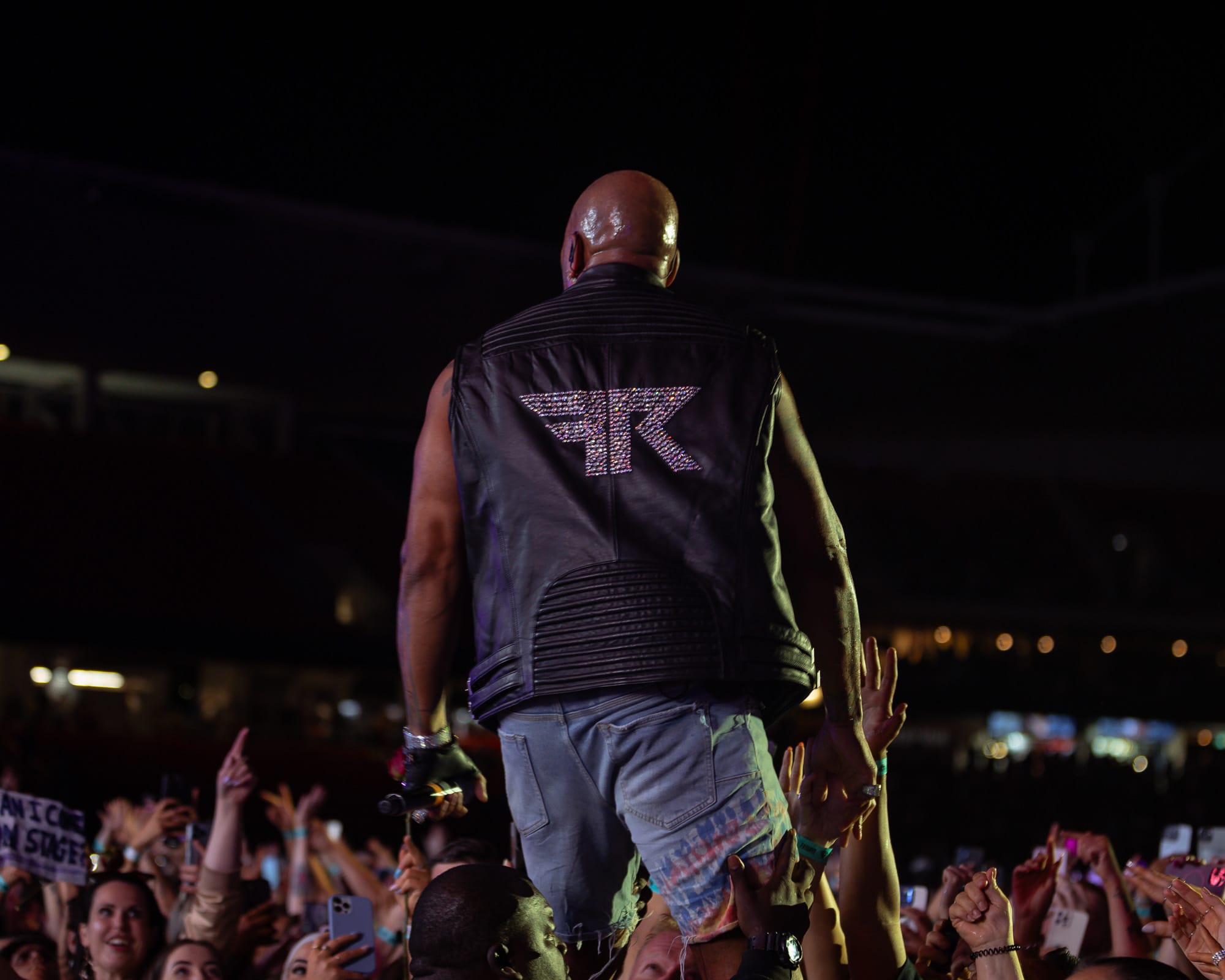 His set was a spectacle of engagement and entertainment, epitomized when he rode on his guard Big Zacc's shoulders into the crowd, a move that brought the performance to an exhilarating peak. His departure from the stage, disappearing into the audience, was a fitting end to a set that was as much a celebration as it was a concert, leaving the crowd buzzing with energy.