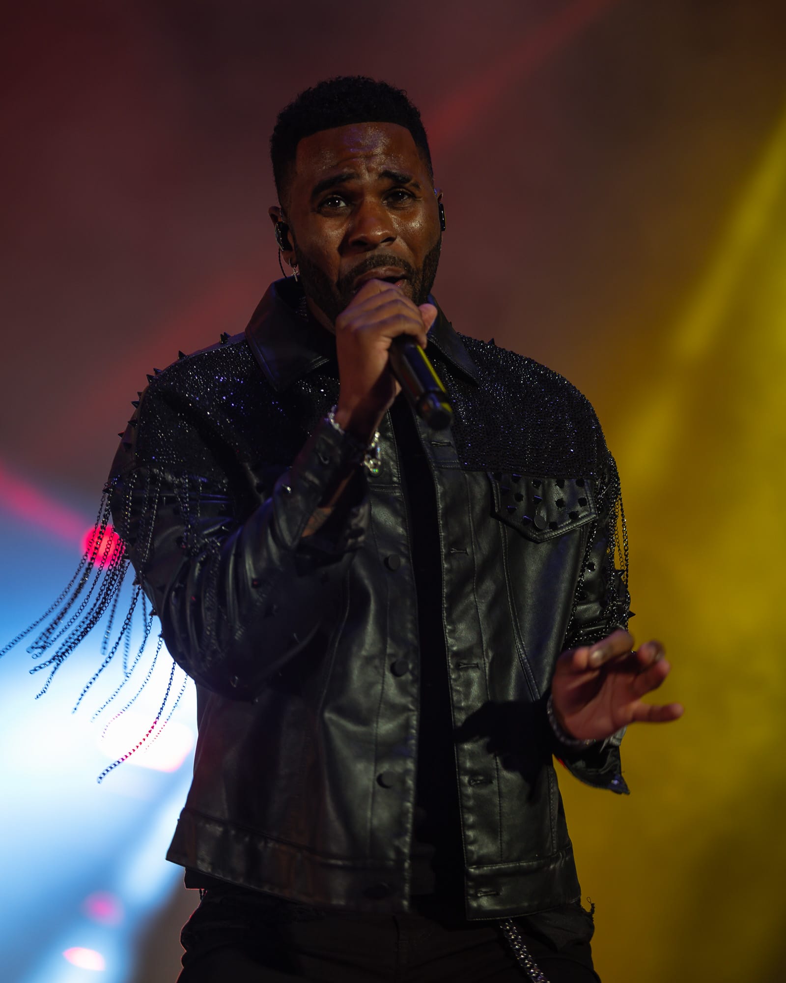 Jason Derulo’s finale was the crescendo of the night, a perfect blend of showmanship and raw talent. He emerged in a red robe like a boxer entering the ring, only his arena was the stage, and his fight was a dance battle against the mundane. Underneath, his black leather jacket and ripped jeans screamed pop icon with a flair for the dramatic. The crowd roared their approval, ready for the spectacle they knew was coming.