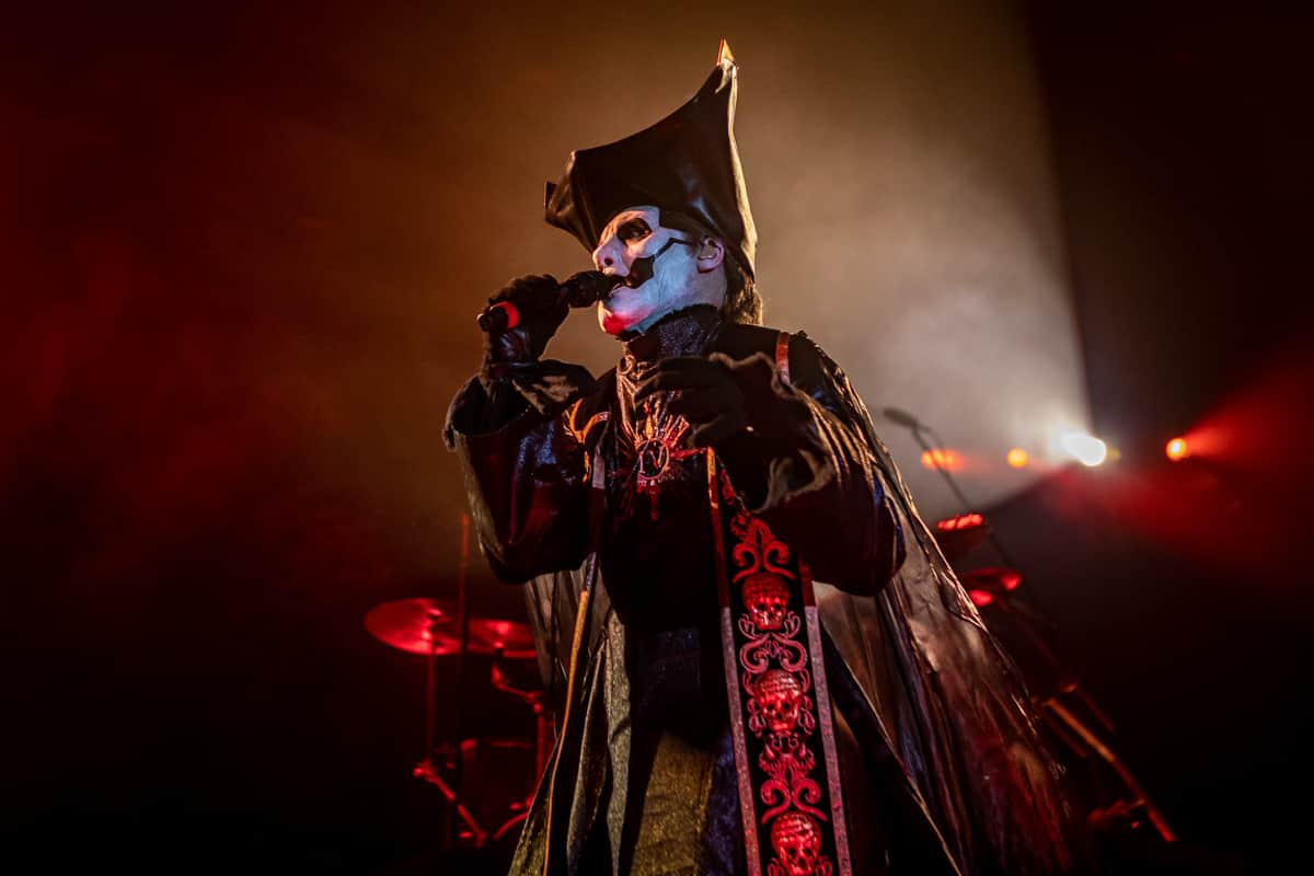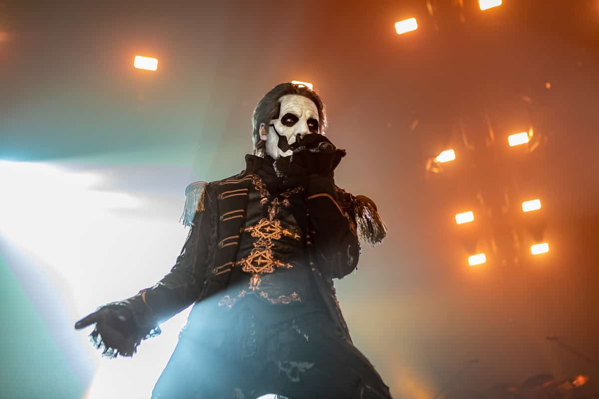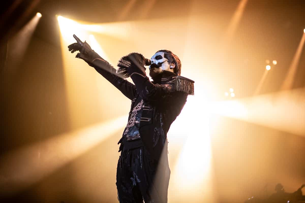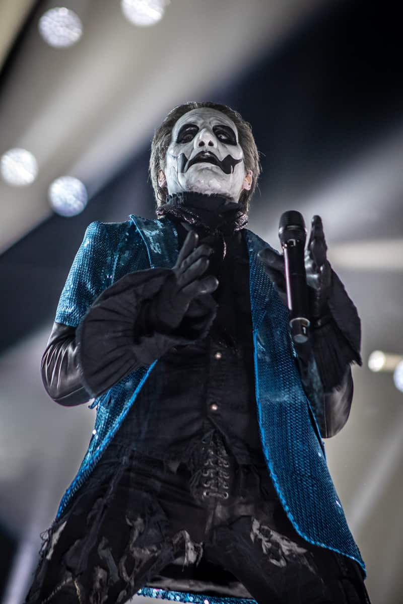 The Ghouls walked away as Papa Emeritus IV made his way down the steps in front of the drum kit. If there is one thing that I can say about singer Tobias Forge, it would be that this man is a born showman. This isn’t something that can be taught, this is something that someone is gifted with from birth. This man knows exactly how to pull you in and keep you enthralled for every second he is in your presence. He is responsible for the creation of the ghost universe. Each and every character, from Papa Nihil to Cardinal Copia, From the Nameless Ghouls to Papa Emeritus IV, a product of his imagination. Tobias Forge is a mastermind when it comes to the performance arts. His lyrics are not only devilishly seductive, but his vocals are flawless live. There were approximately five different costume changes and with each one, a different set of songs to fit that outfit.