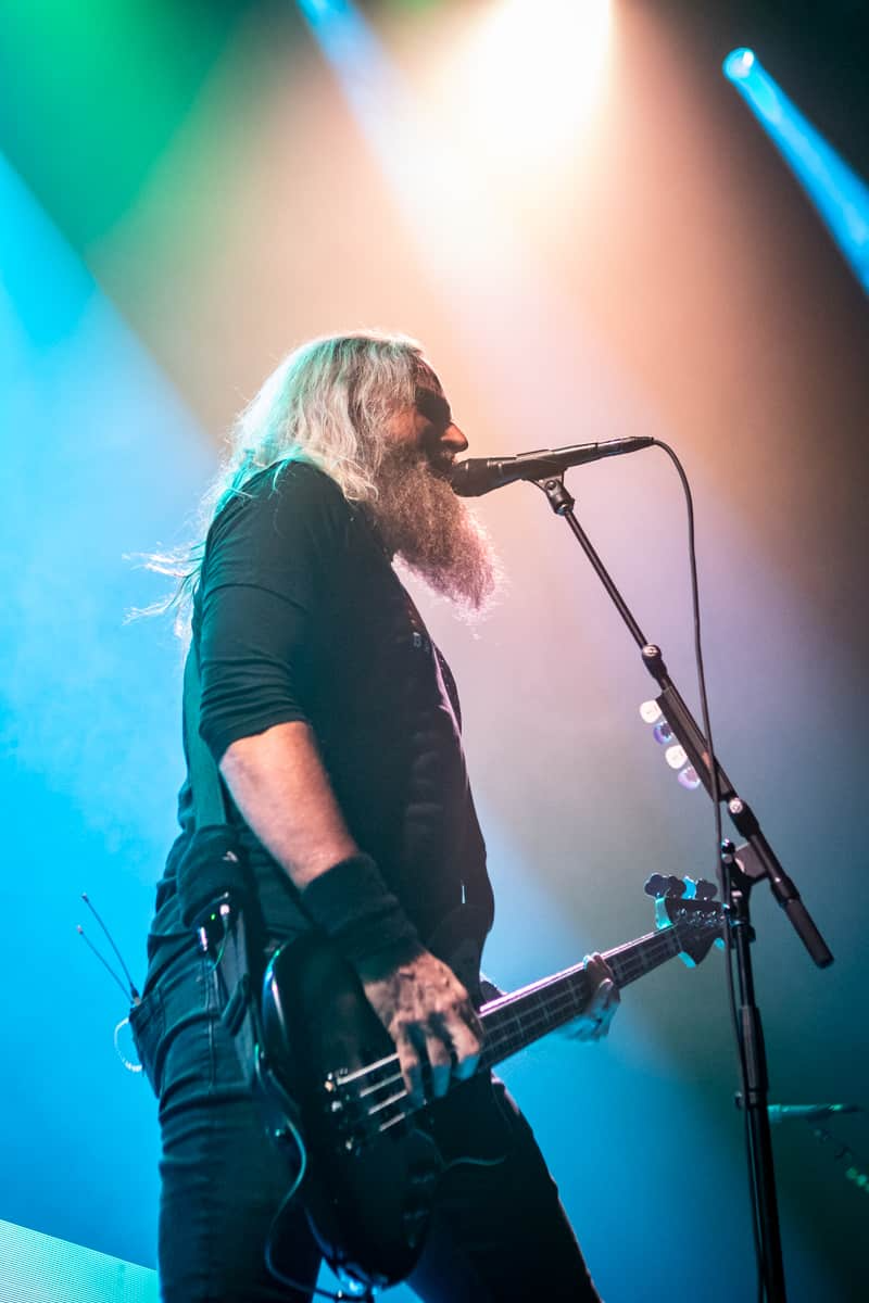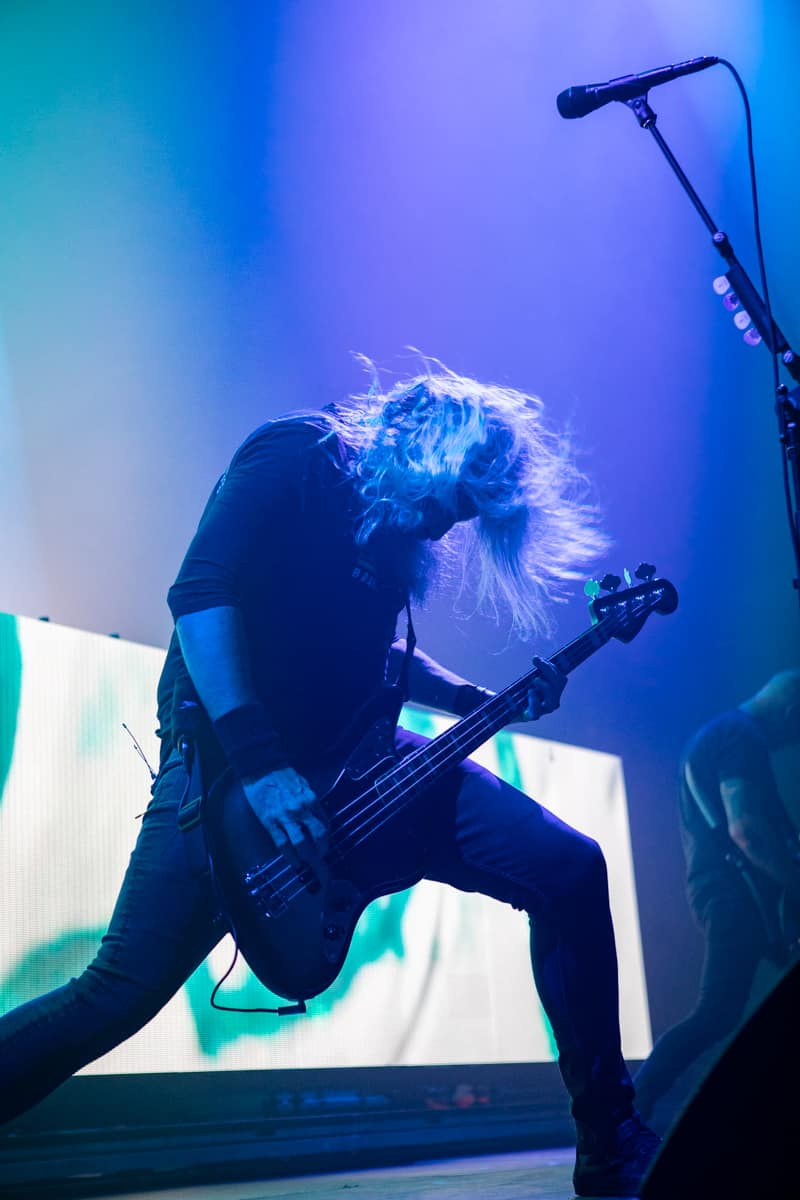 There was a very short intermission between bands, the efficacy of the stage crew was like watching a well-choreographed performance in and of itself. The next to take the stage were the prog metal legends Mastodon. This band has been cranking out their unique blend of odd time signatures, and complex Phrygian based guitar riffs, for the last 22 years. Mastodon has been known to mix elements from groove metal, alternative rock, sludge and stoner metal, and psychedelic rock. A lot of this comes from the brilliant mind of guitarist Bill Kelliher, who has spoken about his unique approach to guitar in the past saying: “Guitar is less intimidating when you can see patterns – that’s what scales are for.” Mastodon is also unique in the sense that one of their lead singers, Brann Dailor, is also the drummer. I can’t even begin to fathom the amount of coordination one must have to be able to play the drums for a prog-metal band, while simultaneously singing and carrying a tune. While the band played, a set of massive LED panels displaying psychedelic imagery that seemingly matched the songs being played. Seeing Mastodon live is what I would call more of an “experience” than a concert. This was an act that demanded your attention. Once that attention was properly directed, you were done for. There was no looking away! They played a set that consisted of some of their best songs, including “Megalodon”, “Teardrinker”, and “Mother Puncher”. This was one hell of a performance, but the one coming up next was one that really can’t be beat.