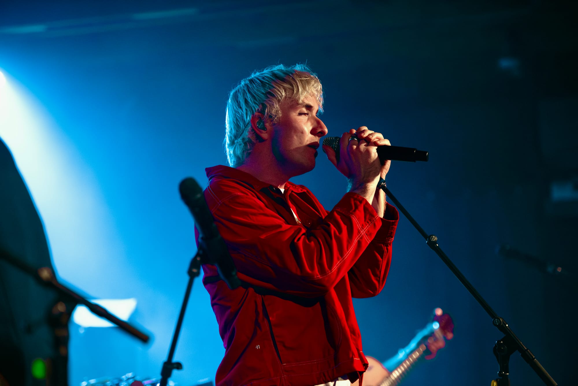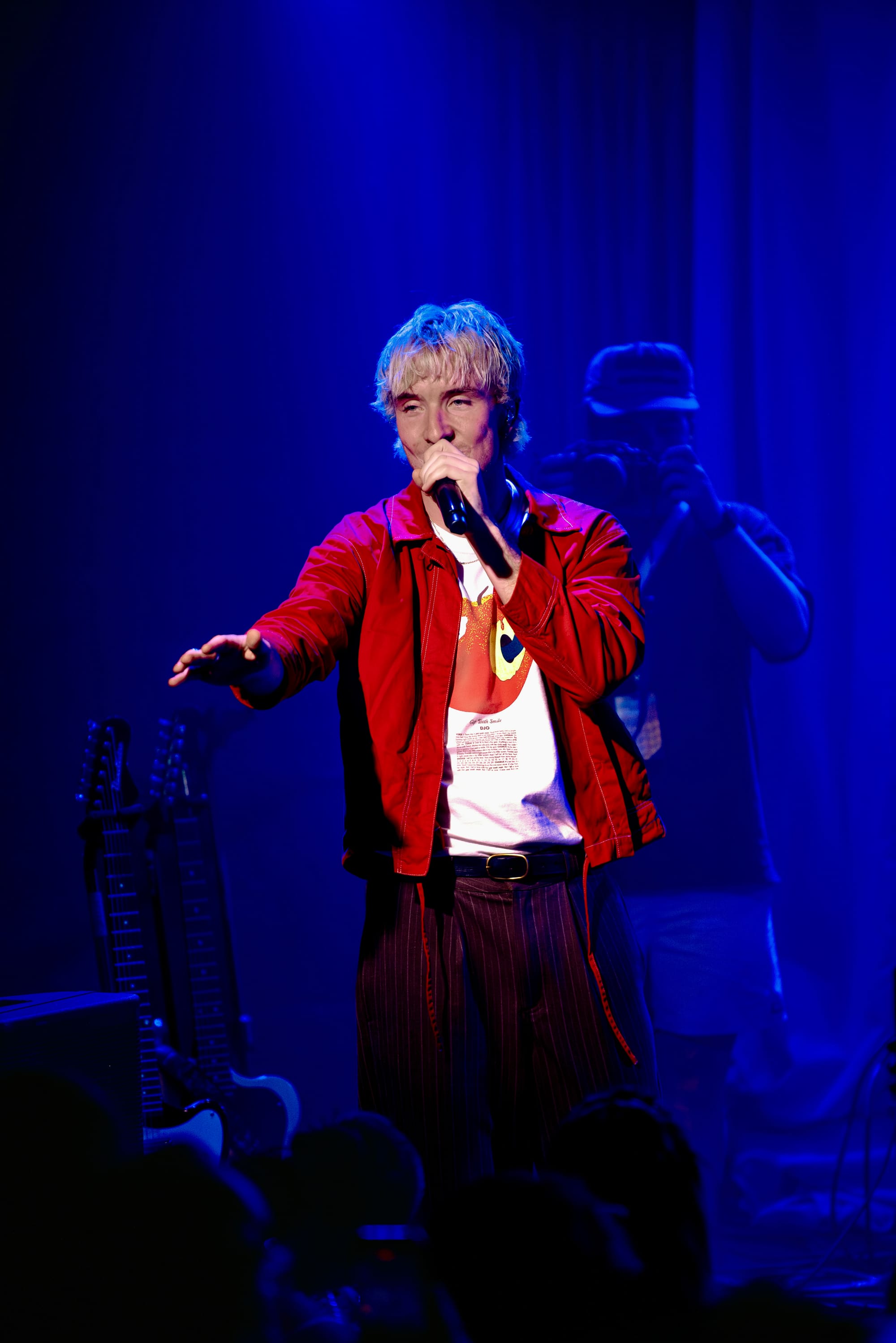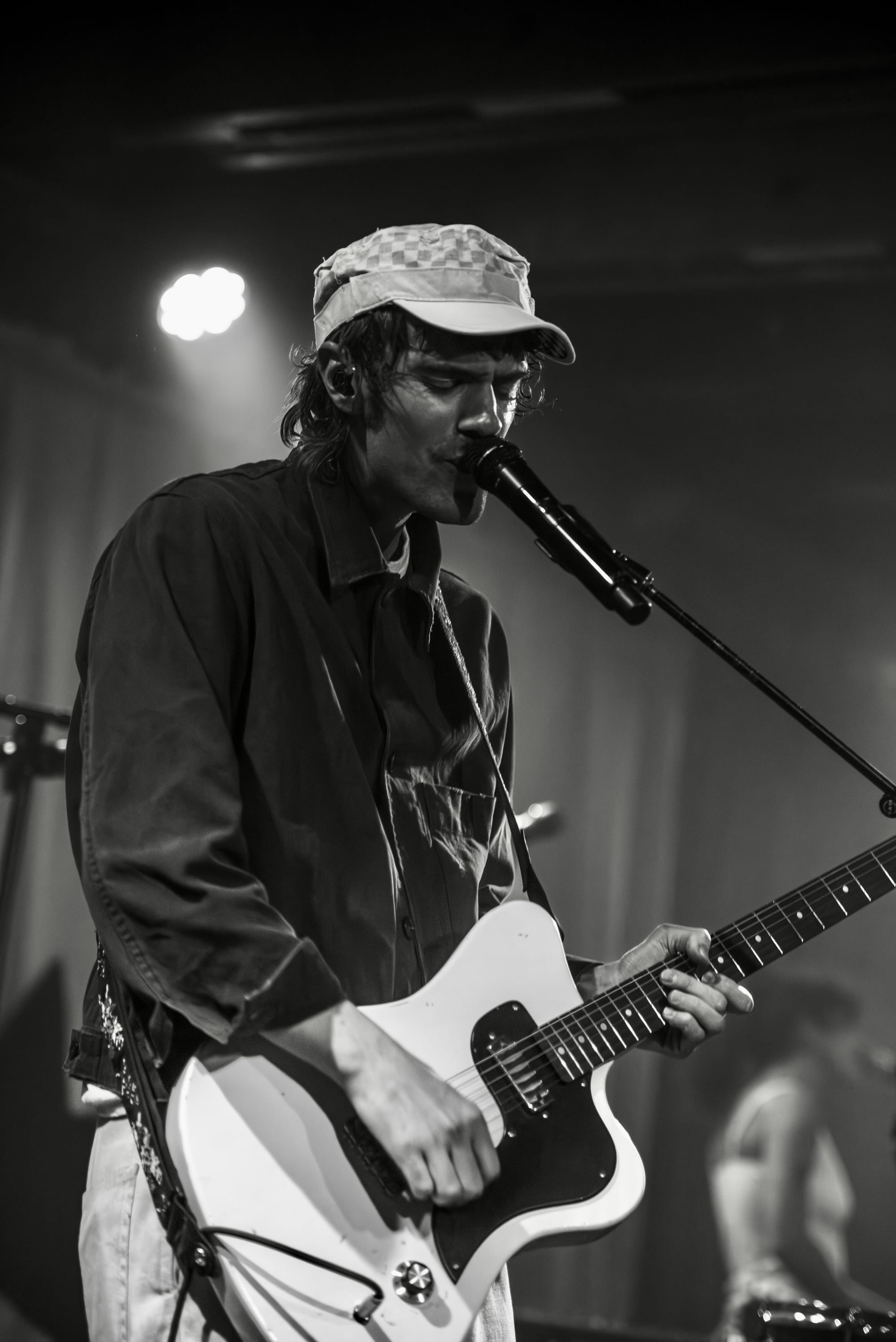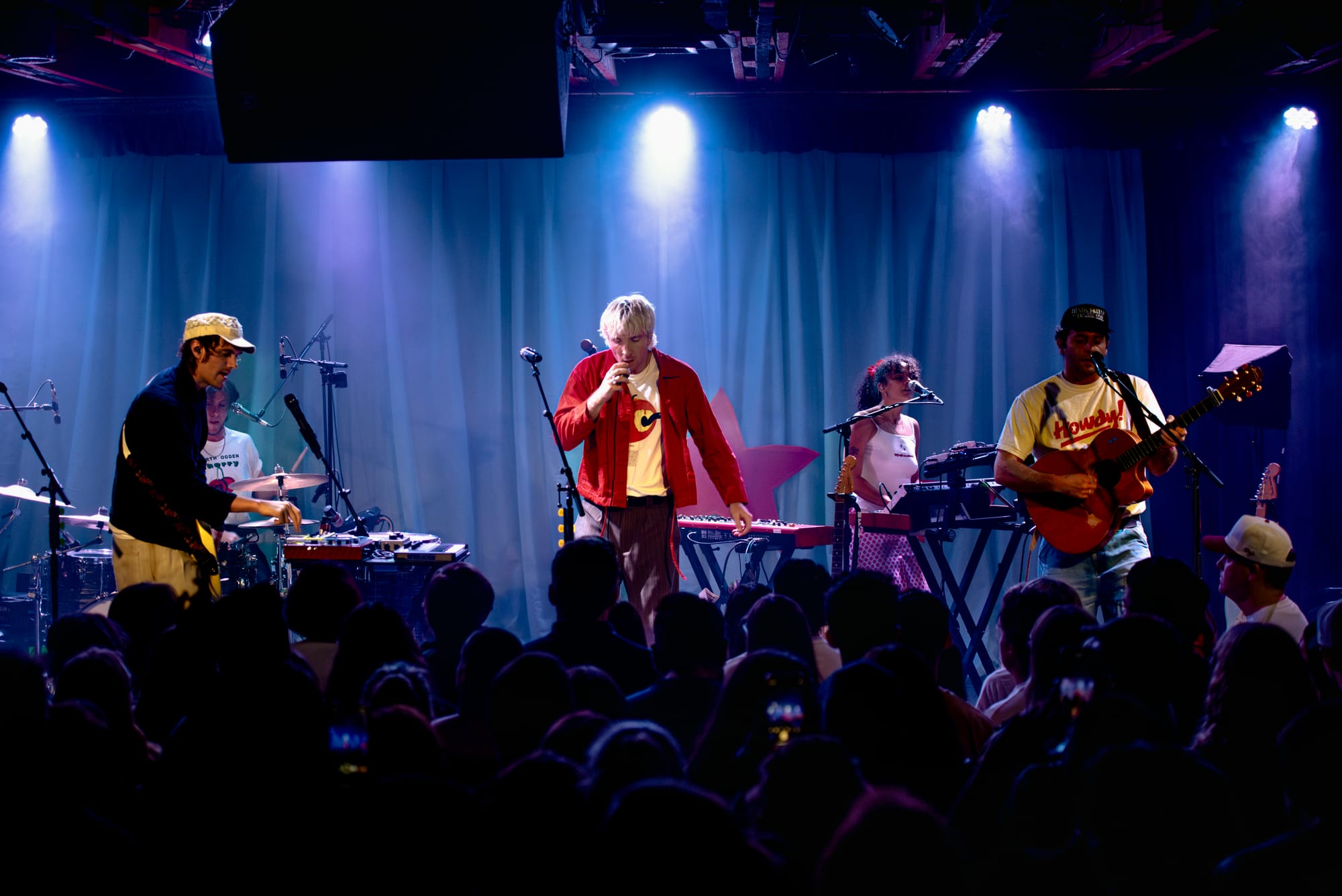 Nicky Youre kicked off the night, bringing his feel good indie pop tunes to an already packed room. The singer-songwriter from Southern California, known widely for the massively successful 2021 hit “Sunroof,” recently released his debut album, What’s The Big Deal?. Youre charmed the audience with his warm personality and storytelling between songs. He introduced “Alibi” as a love song written about a girl he met on Hinge, a story that grabbed the audience’s attention. When he moved into the next song, a track about the same girl, he elaborated on that story, sharing that his Hinge fling turned into a relationship, and that she was actually on the tour selling their merch, a story ending that had the audience cheering. Although the audience was largely unfamiliar with the music, they danced along, vibing with the tunes, appearing to really enjoy the music. When he brought out “Sunroof,” the entire audience sang along as they threw their hands up in the air and grooved. Youre, backed by 4 musicians, played a tight set, which included an impressive solo by his best friend on the keys to wrap things up.