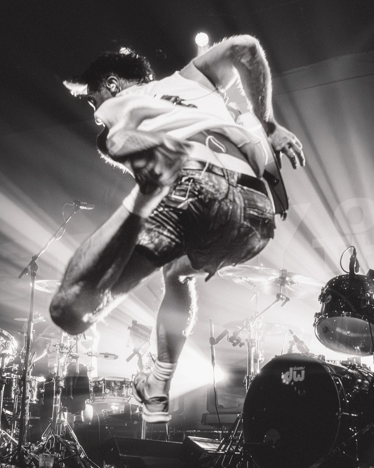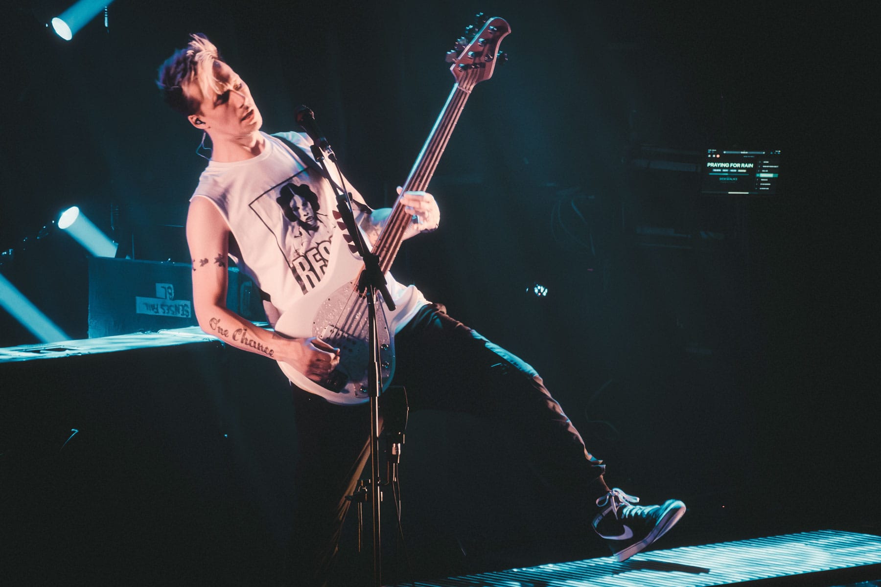 Marsala poked some fun at drummer Josh Wills during an interlude for somehow cutting his shoulder open a bit with a drum stick mid-song, causing both gasps of shock and laughter from the crowd, and fans screaming at Wills to get a bandage. SOTY’s set was full of on-stage shenanigans, from high fives and somersaults, to playful fistfights and games of leap-frog. Lead guitarist Ryan Phillips was hopping left and right across the stage for nearly every song, repeatedly flinging himself from the drum platform. As arguably the greatest feat of the show, bassist Adam Russell clambered on top of a speaker for “Our Time is Now,” and nearly fell off after losing a bit of his balance, but stayed true to the song’s message and never stepped down until the end.