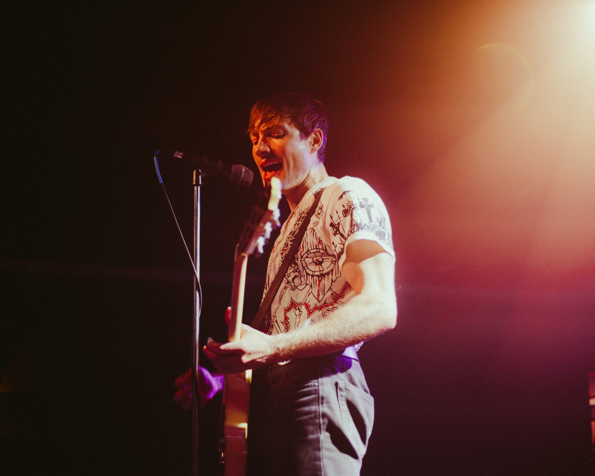 Direct support on this tour with Heart Attack Man was The Dirty Nil. I love to see how the headliner brings a variety of music on the road to support them, and each of the three support acts got a full 30-45 minute set on stage. The Dirty Nil’s newest release, Fail in Time, shows off their four newest songs. Many of which made their way into their opening setlist just before Heart Attack Man. Their most memorable moments were super interactive with the crowd. For an intimate show, lead singer Luke Bentham got up close and personal with my camera; he knows how to play to a crowd and the camera. Quite the talented three-piece group I watched perform a high-energy, alternative rock set.