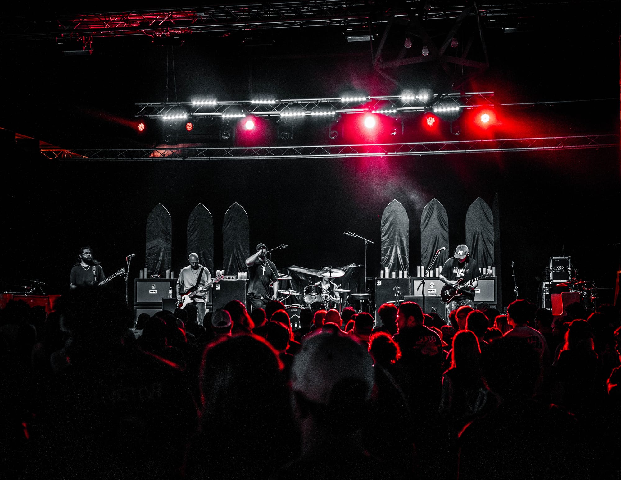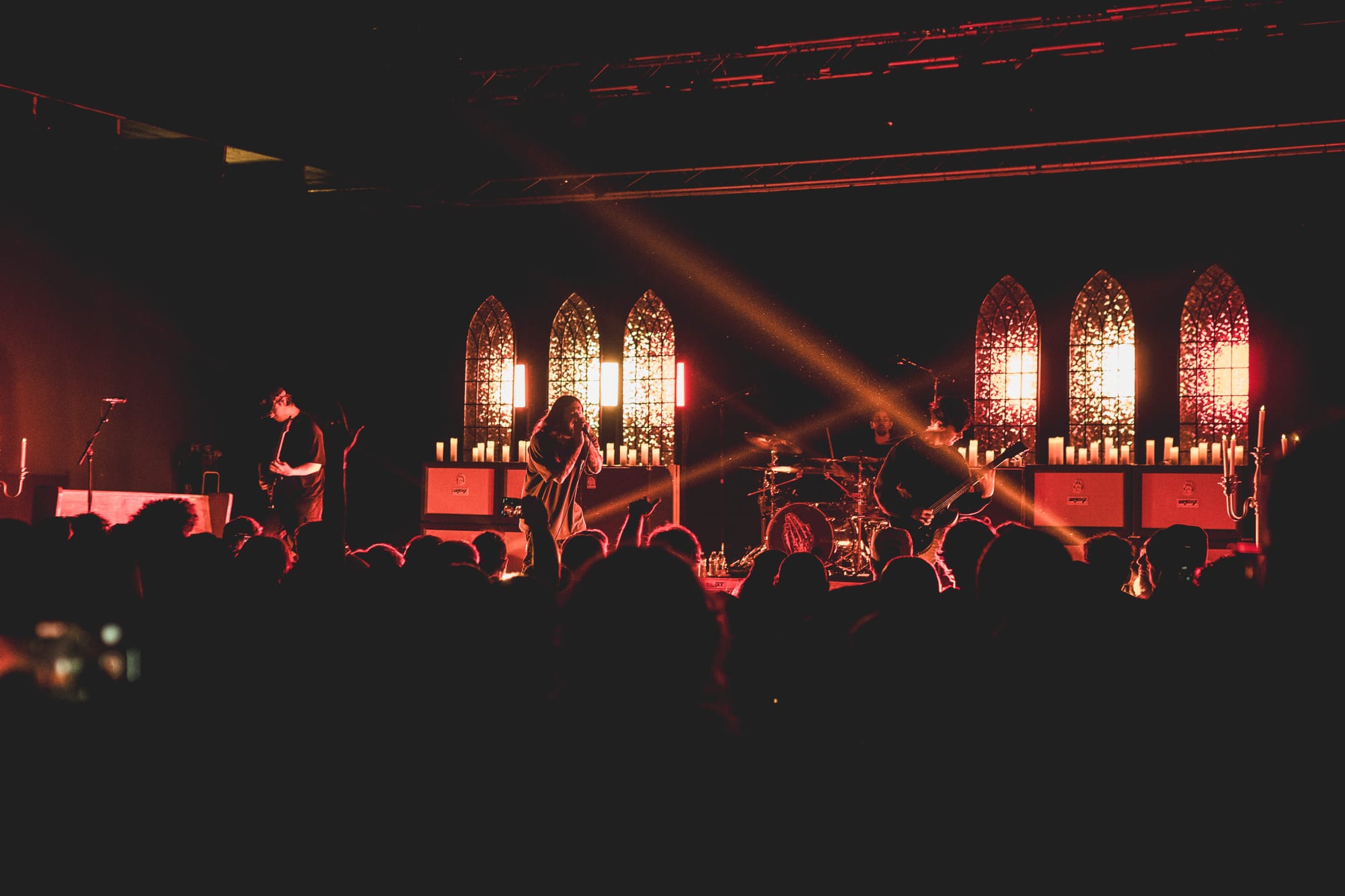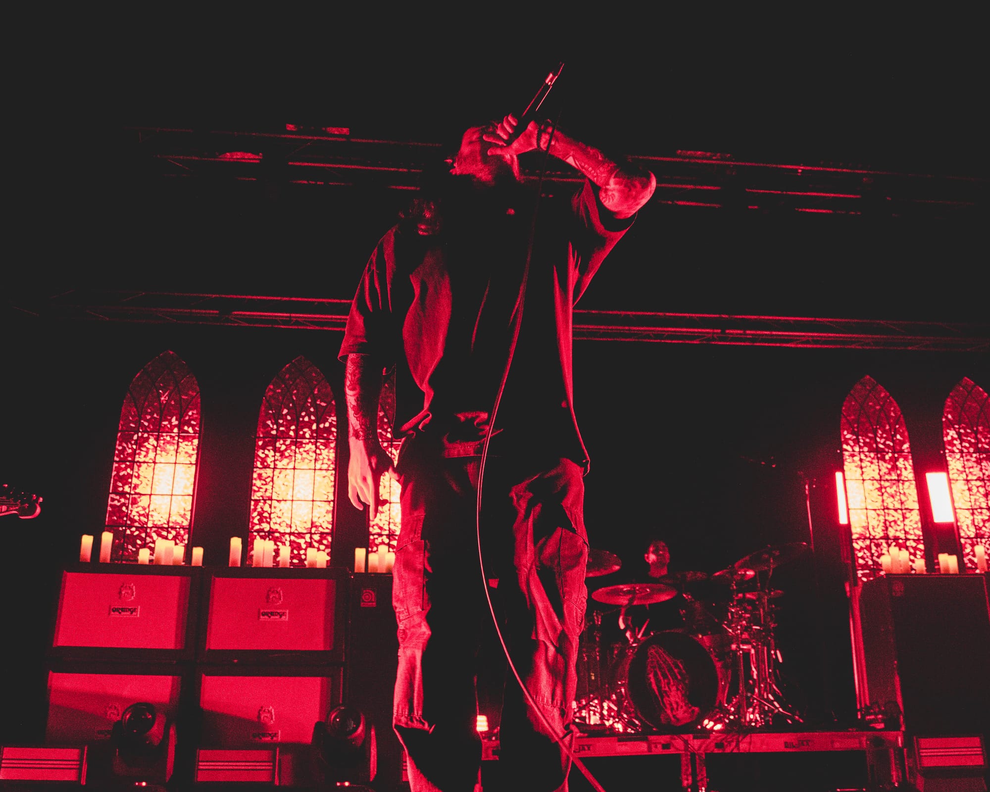 After much moshing, head-banging, and screaming to one’s heart’s content, it was finally time for Counterparts to take the stage. I won’t sit here and lie and say I’ve been a day-one fan, but ever since I heard 2019’s Nothing Left to Love, I’ve been hooked. The band is heavy in every sense of the word, from their deafening riffs to their body-shaking blast beats to their lyrics that make you want to cry until you’ve run out of tears. Following that release was 2022’s A Eulogy for Those Still Here and, most recently, 2024’s Heaven Let Them Die. This most recent release is sure to continue to skyrocket Counterparts into mainstream success. Their stage set-up alone should be an easy indication of that! Utilizing gorgeous cathedral concepts with stained glass windows, pews, and candelabras, seeing the band take the stage was nothing short of breathtaking. Obviously, the other fans in the crowd felt the same way because, as the band continued to play, all you could see was a sea of fans screaming the lyrics back at the tops of their lungs. The worst part of the night had to have been when Counterparts left the stage, the venue lights turned back on, and it was time to go home.