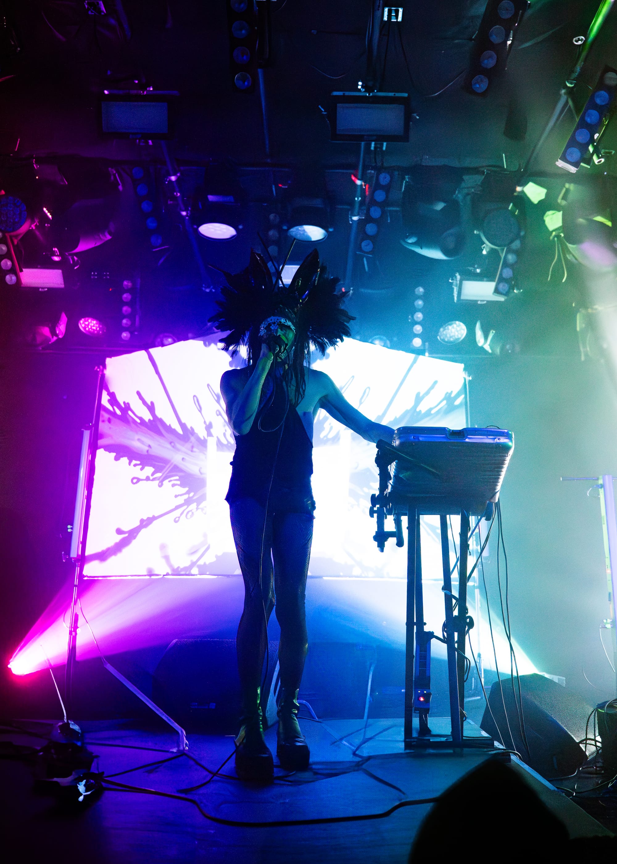 The striking visuals and flickering colorful lights mixed with the beautifully haunting vocals and hypnotizing electronic rhythms have created a door to a different dimension, making you forget about the world outside of this moment.