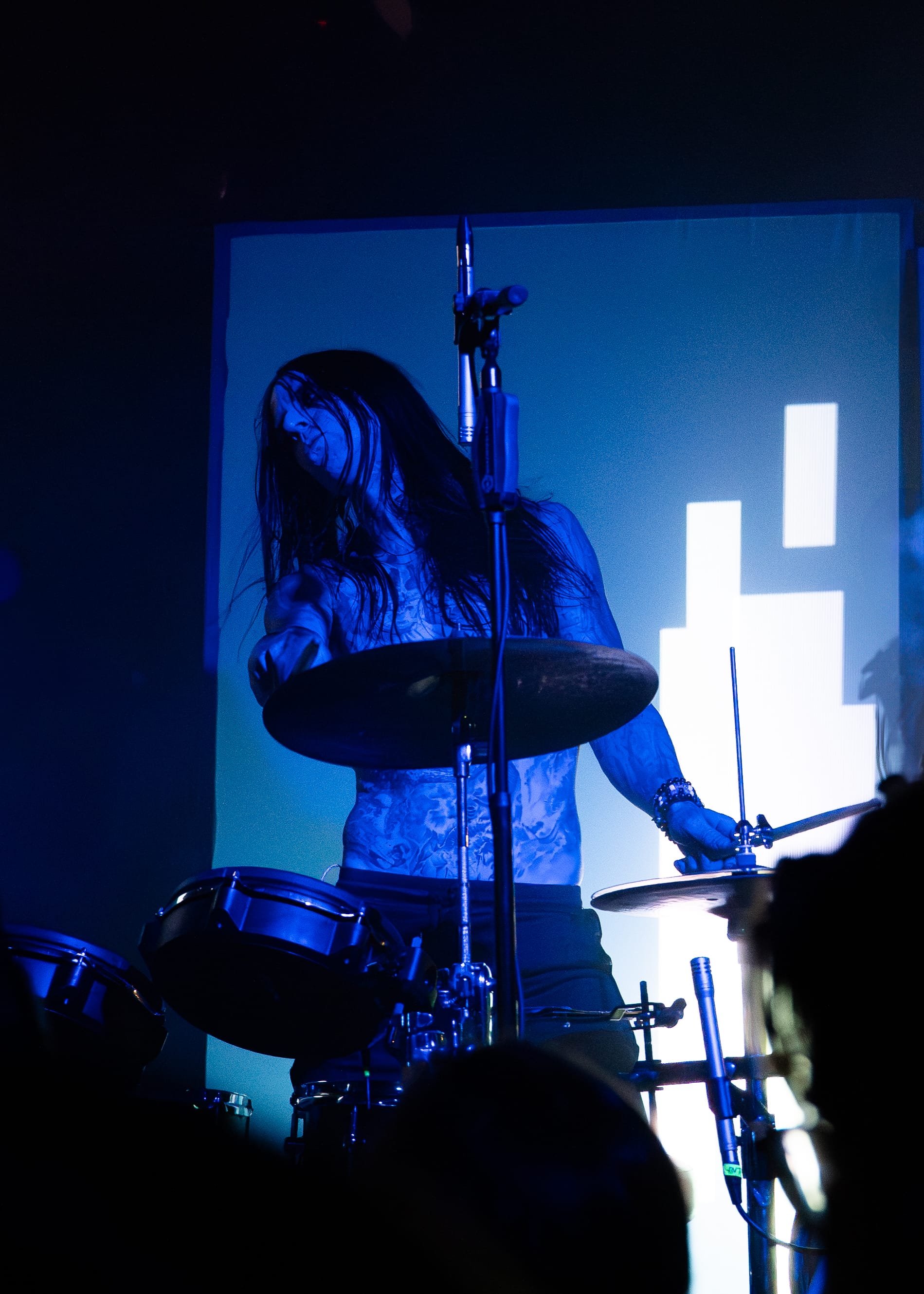 Chris possesses an incredible magnetism that controls your attention and pulls you into his world. Dressed in just a tank top and fishnet tights, he was baring his body, but through his haunting vocals, he was truly baring his soul. Hidden behind a feathery mask, he danced in sharp, ritualistic bursts, and the fans happily surrendered to the ceremony.