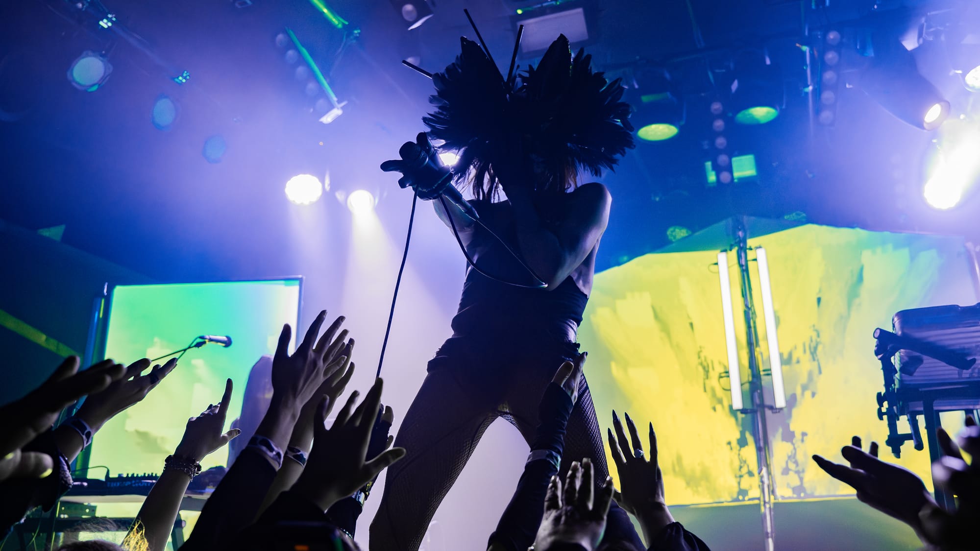 The striking visuals and flickering colorful lights mixed with the beautifully haunting vocals and hypnotizing electronic rhythms have created a door to a different dimension, making you forget about the world outside of this moment.