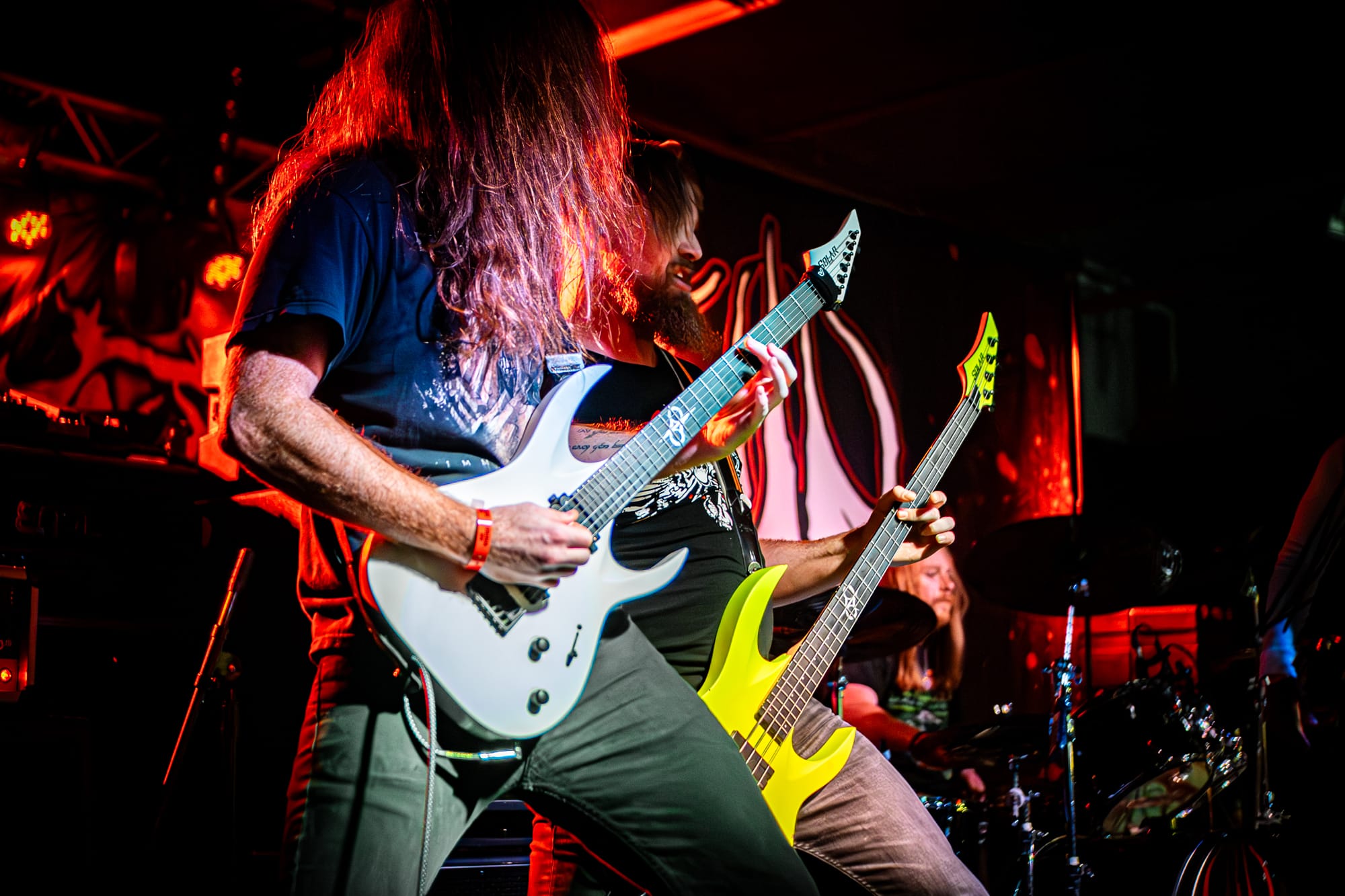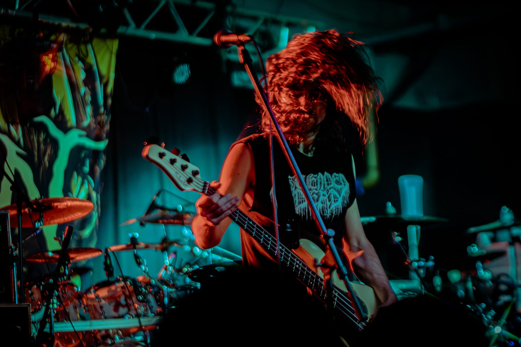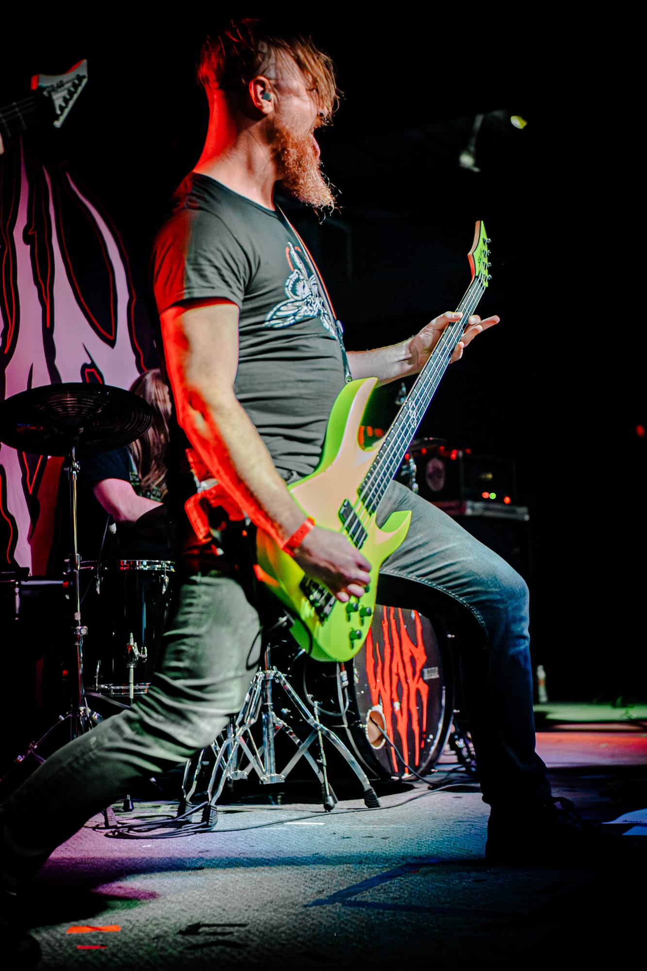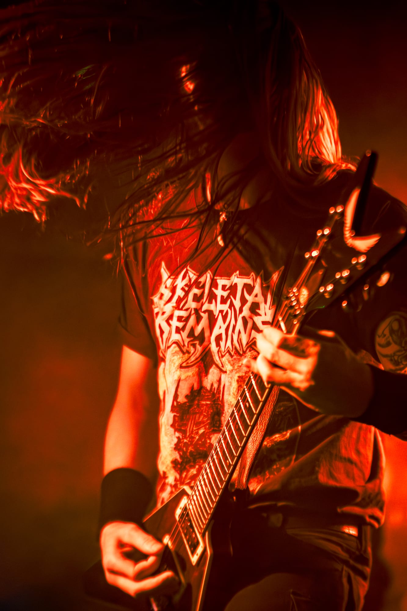 Skeletal Remains took the stage next. While they had a darker vibe to them, they still packed a punch of energy! The crowd at this point had been going crazy consistently for three bands, showing no sign of stopping. Skeletal Remains really set the mood with ominous backtracks that loomed in between songs. During their sound check I was really nervous about how clicky the triggers on the drum kit sounded, but they actually ended up sounding really good when paired with the low end this band has. Overall, I thought they sounded really good! I have been wanting to see them perform for a while, so I am glad I had the opportunity to.